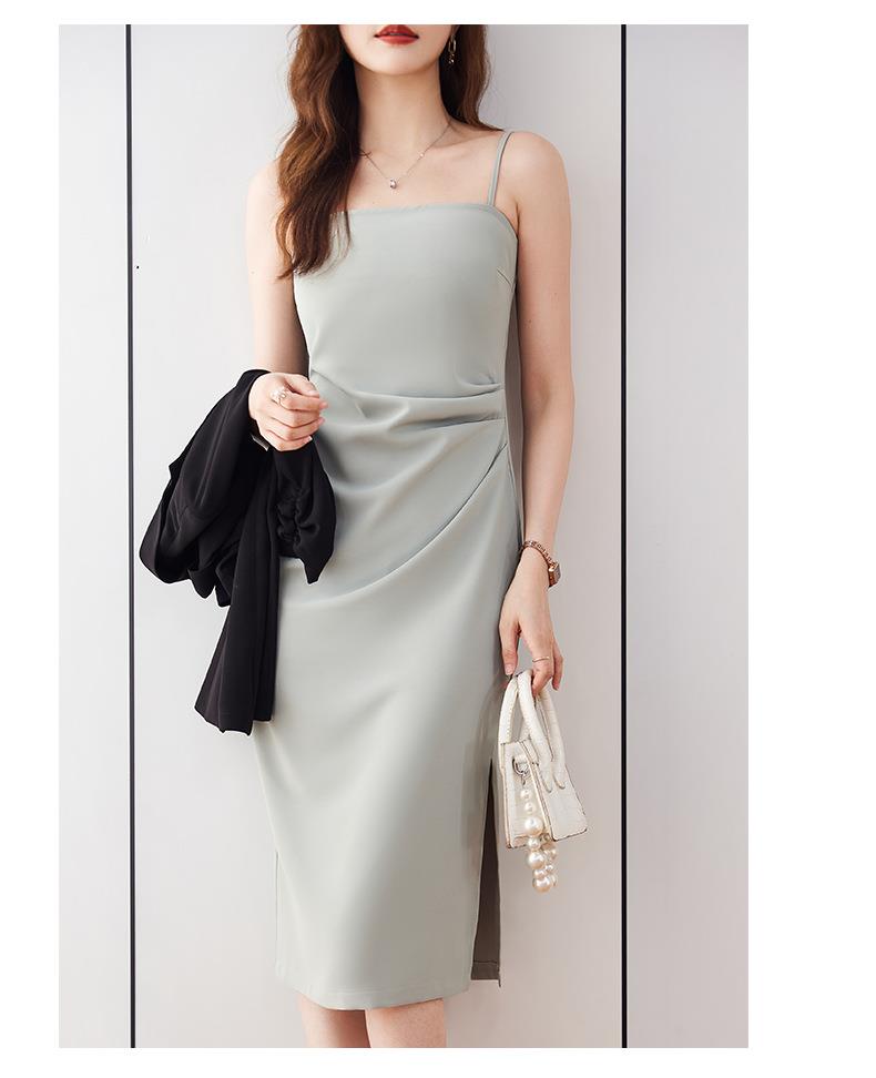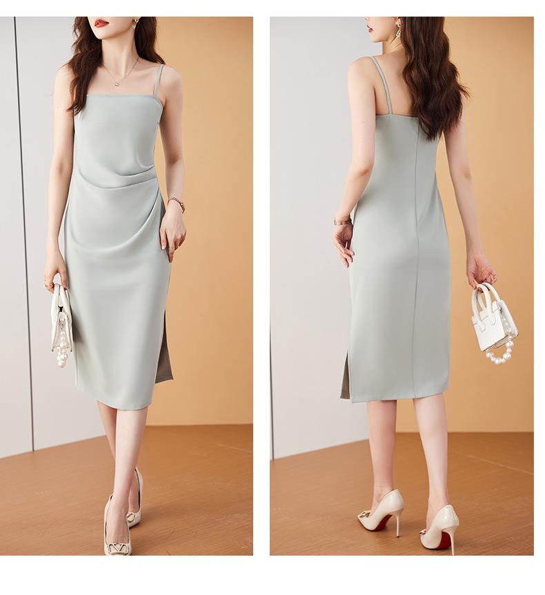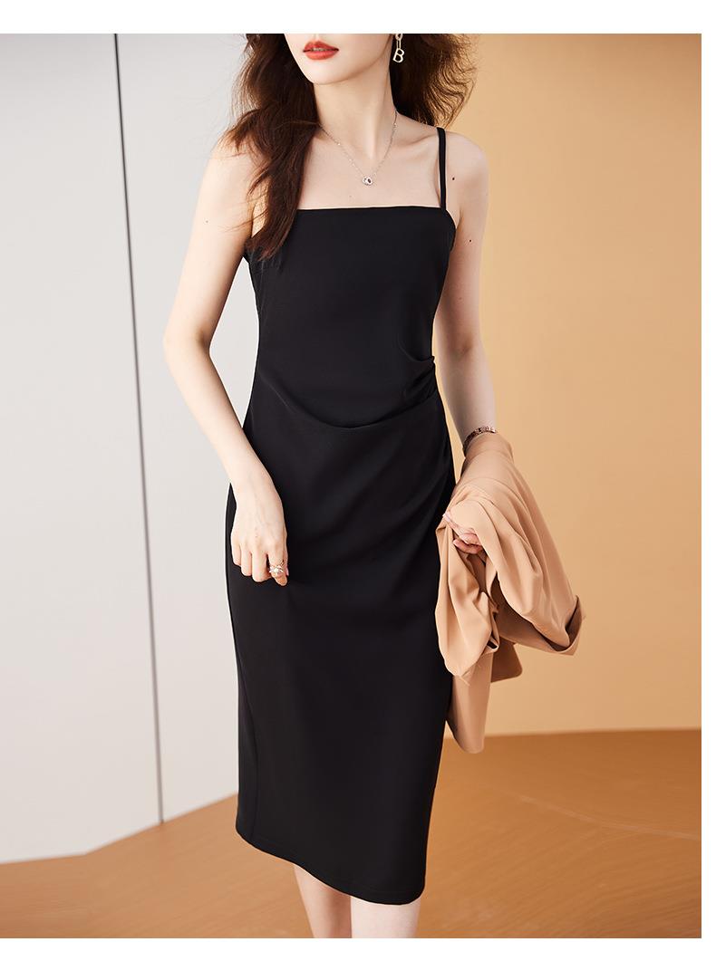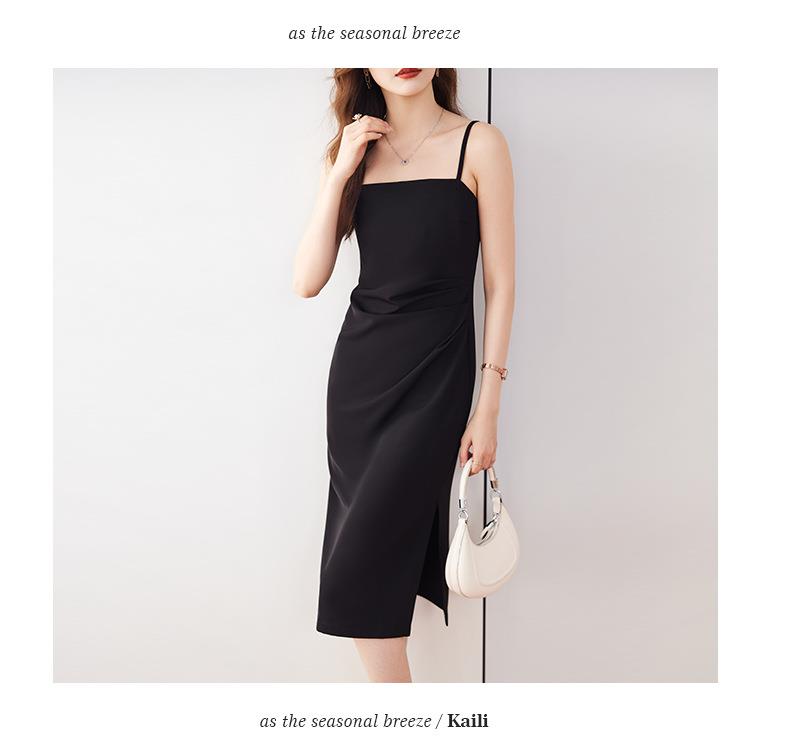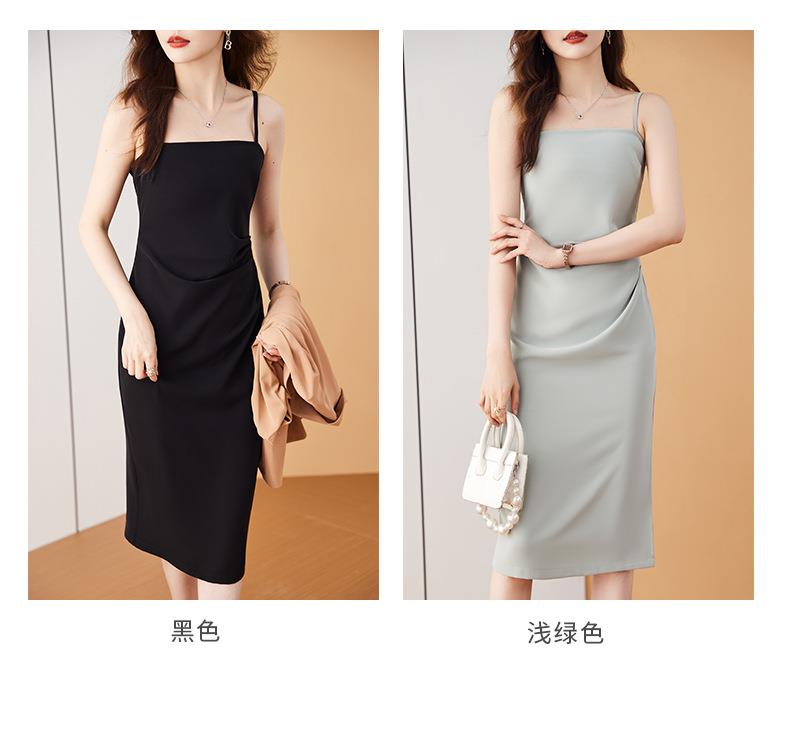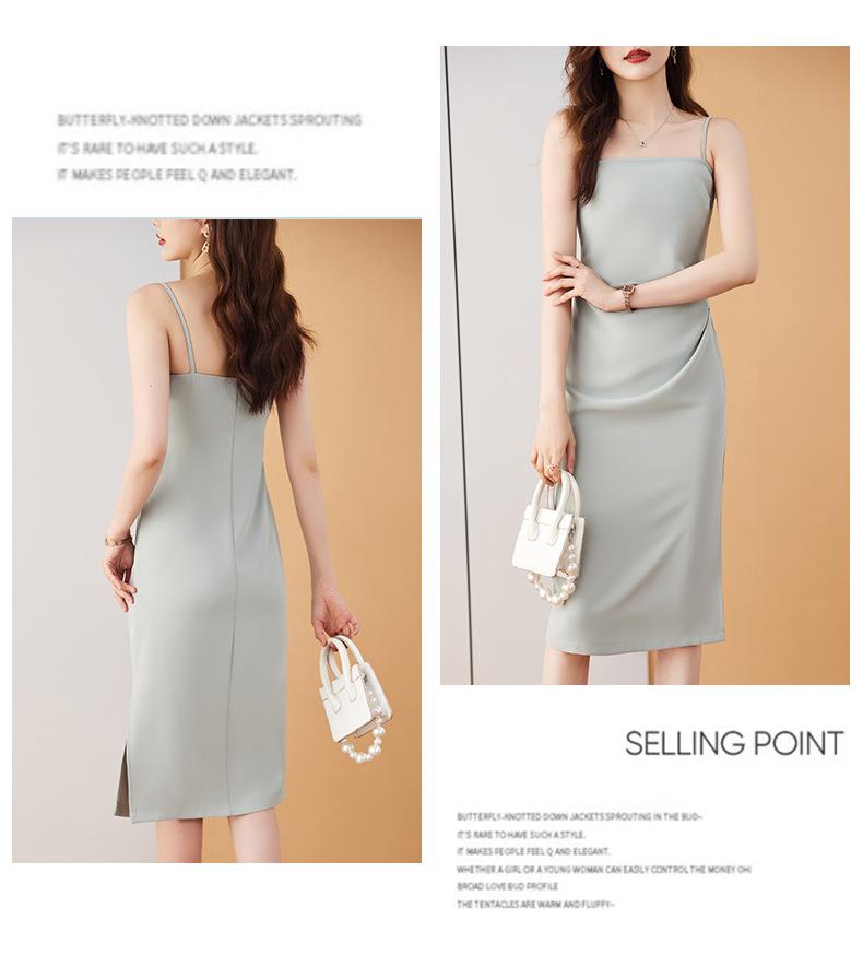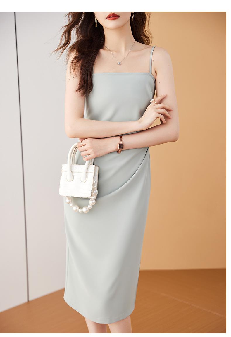 娜璐多 法式吊带连衣裙女夏季质感高级设计感小众裙子修身显瘦仿缎面雪纺