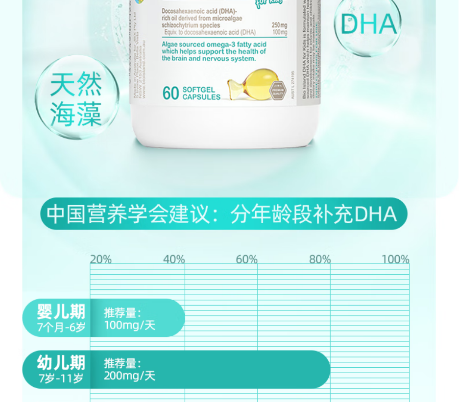 Bio Island婴幼儿海藻油胶囊 60粒/瓶