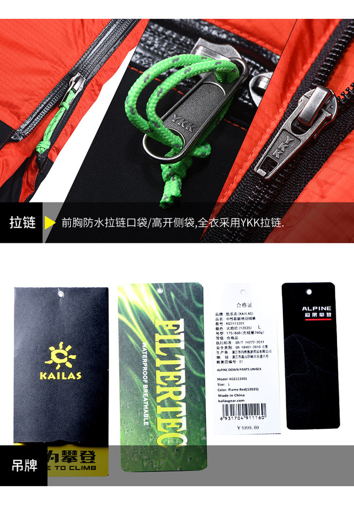 KAILAS凯乐石 户外运动中性款极地羽绒裤KG2113301