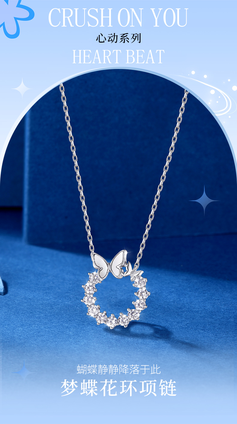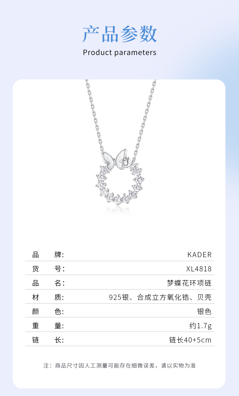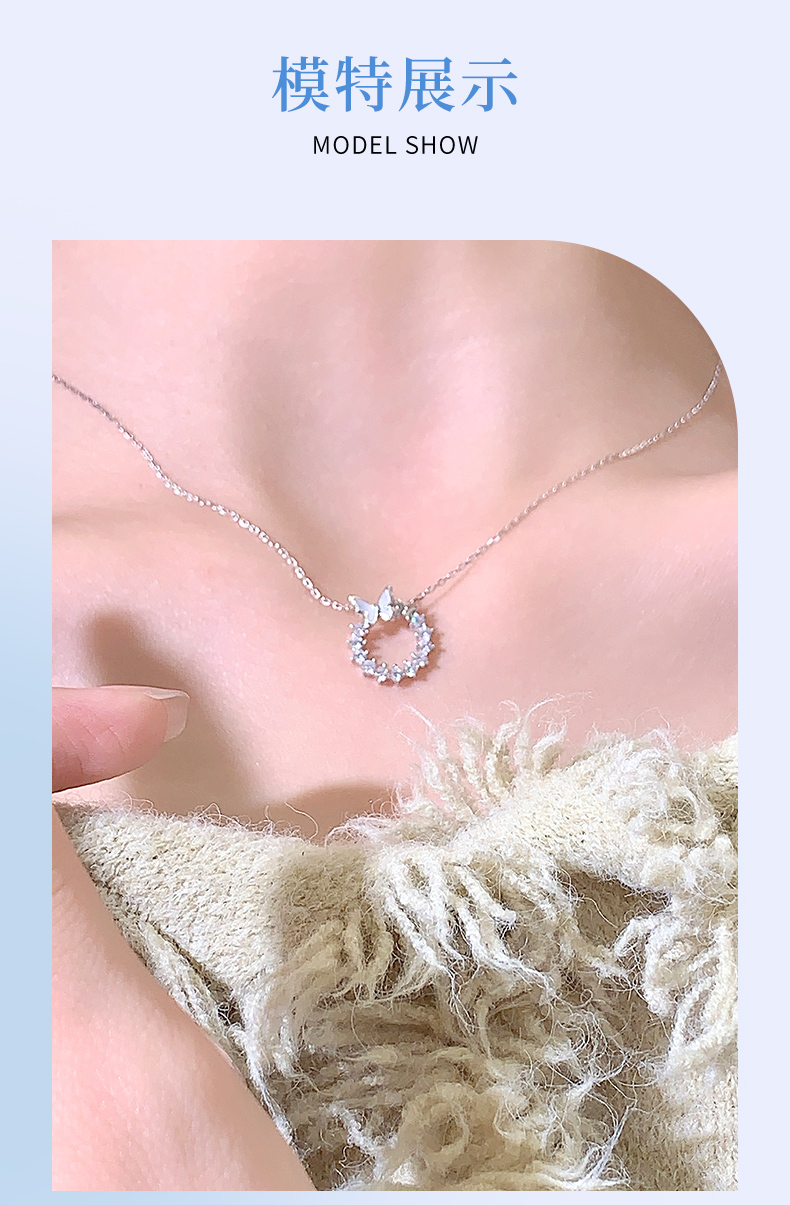 卡蒂罗/KADER 梦蝶花环项链 满镶宝石圣诞花环设计轻奢小众可调节锁骨链 优雅蝴蝶时尚浪漫吊坠 925银