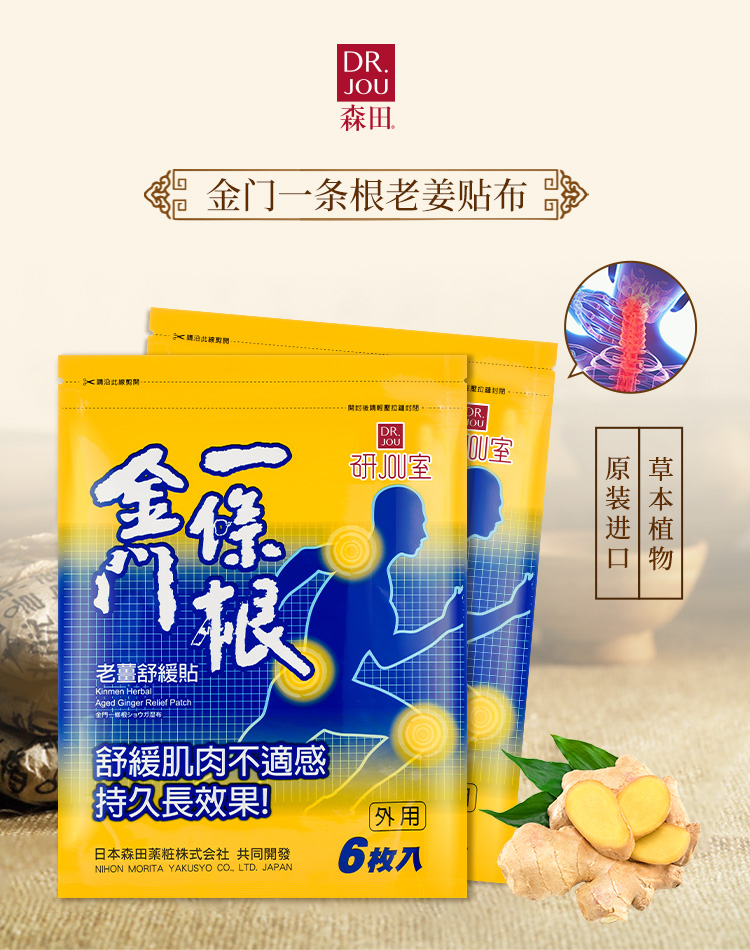 【金门一条根】原装天然精油贴布老姜舒缓酸痛颈椎