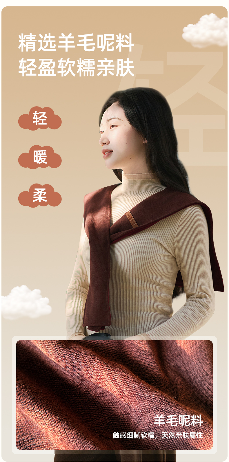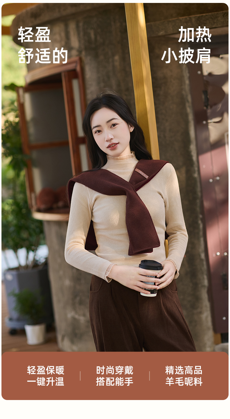 【加热小披肩】MERF小裳披肩MF-2504 轻盈舒适保暖 一键升温 时常穿戴 百搭小能手 精选羊毛呢料 前后共四区位发热 三档调温 可折叠