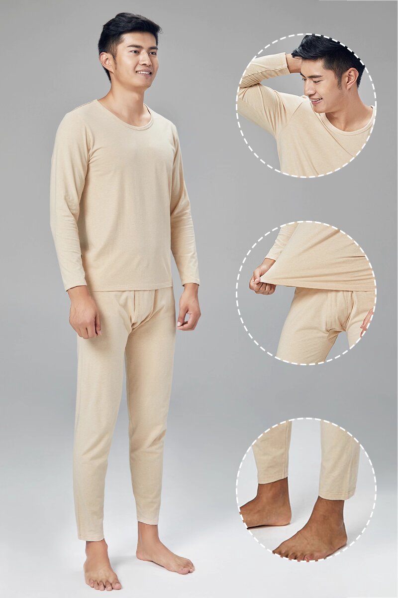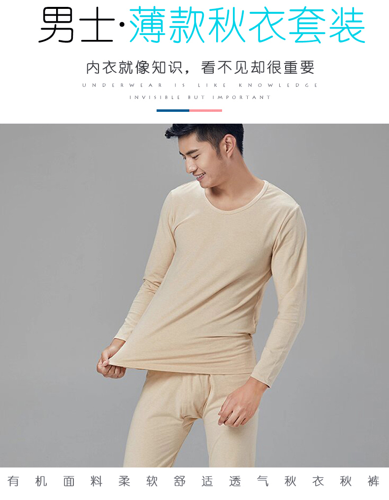 【男士薄款秋衣/秋裤】95%棉 5%氨纶,素道有机彩棉-男士秋冬保暖套装(基地直发-申通包邮),来自敦煌,品牌:素道【合作生产,公平贸易】