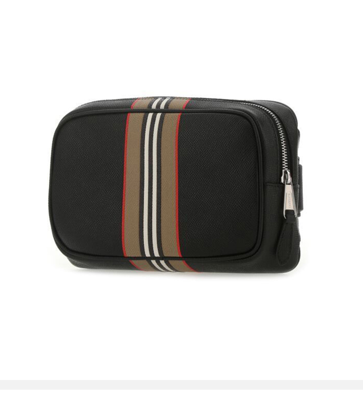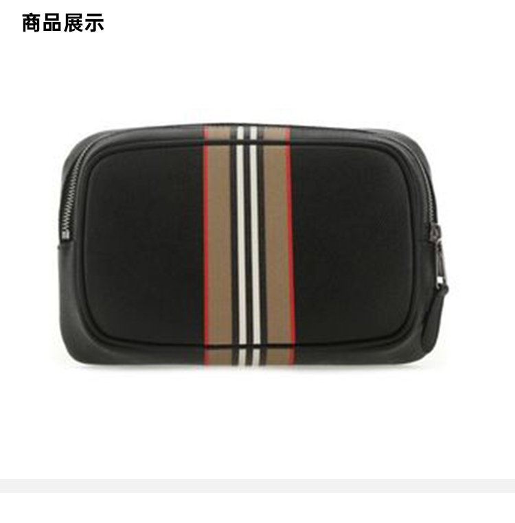 BURBERRY 巴宝莉 男士标志性条纹印花粒纹皮革腰包 黑色 8036543 A1189
