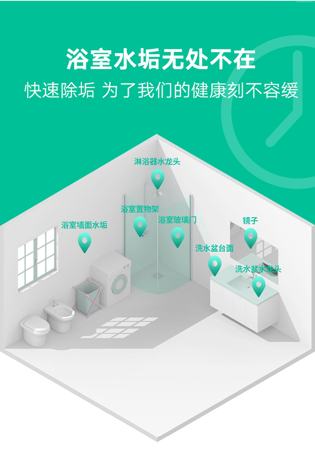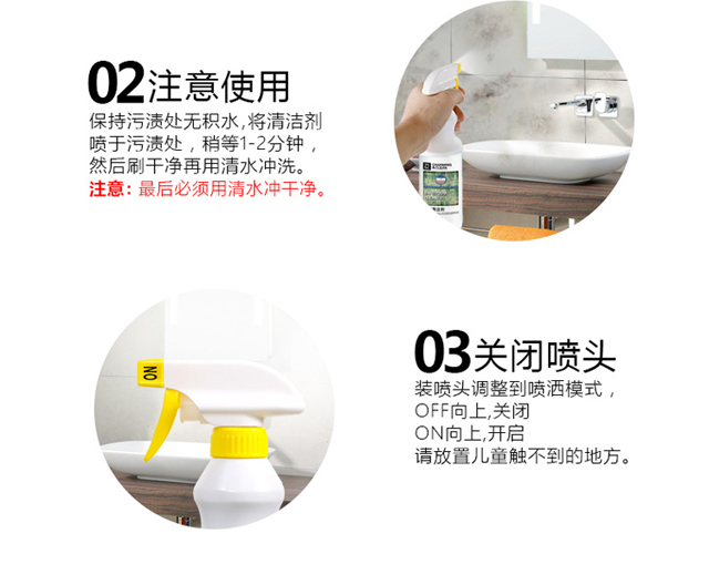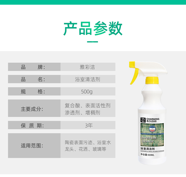 雅彩洁(YACAIJIE )浴室清洁剂2瓶装500gx2 玻璃清洁剂去除水垢皂垢 除霉剂 不锈钢强力去污多效瓷砖清洁剂