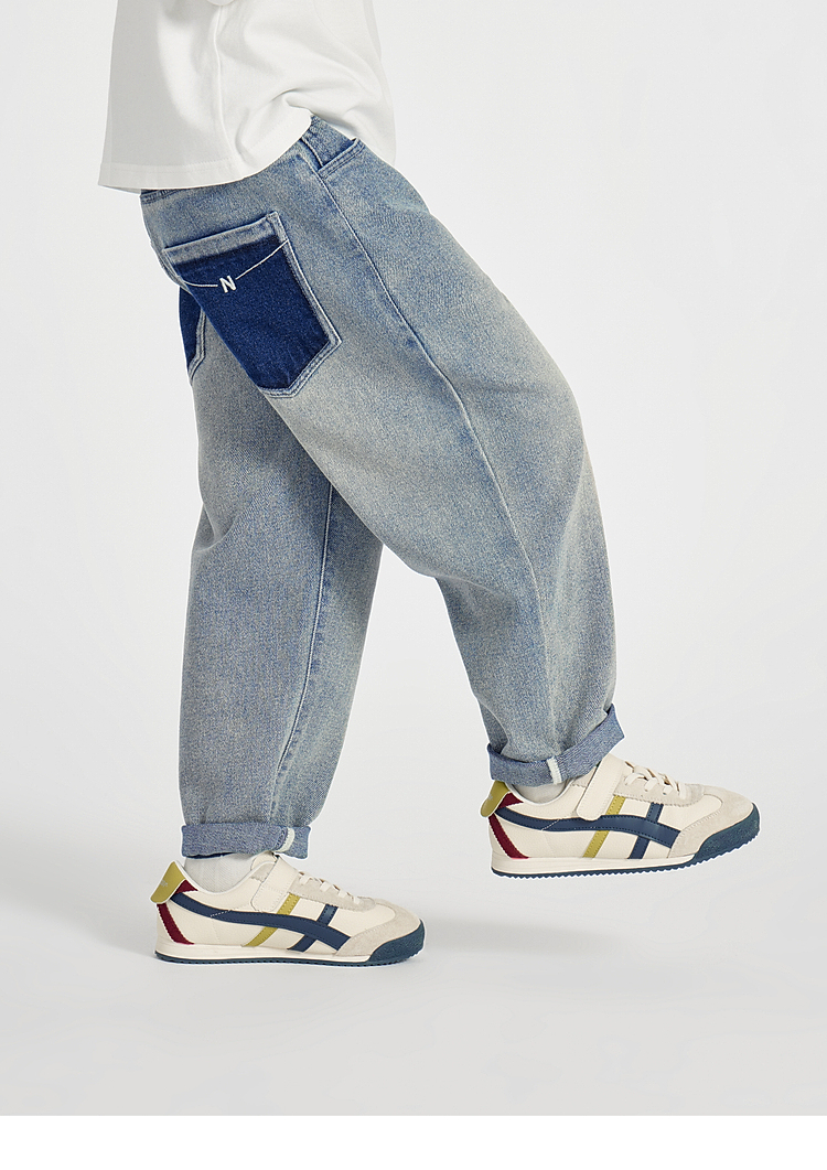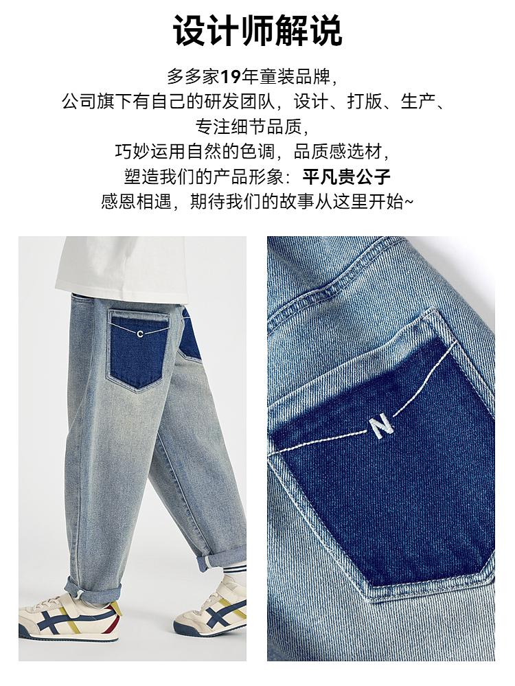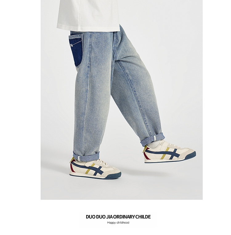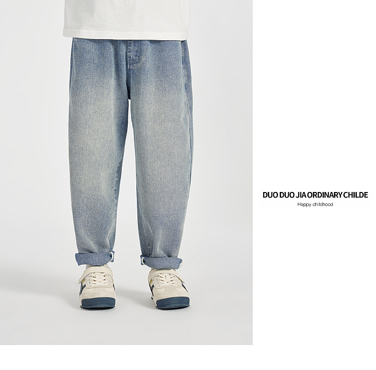 【团购价69.9】多多家男童牛仔裤春秋季2025新款儿童中大童宽松洋气直筒刺绣裤子10385