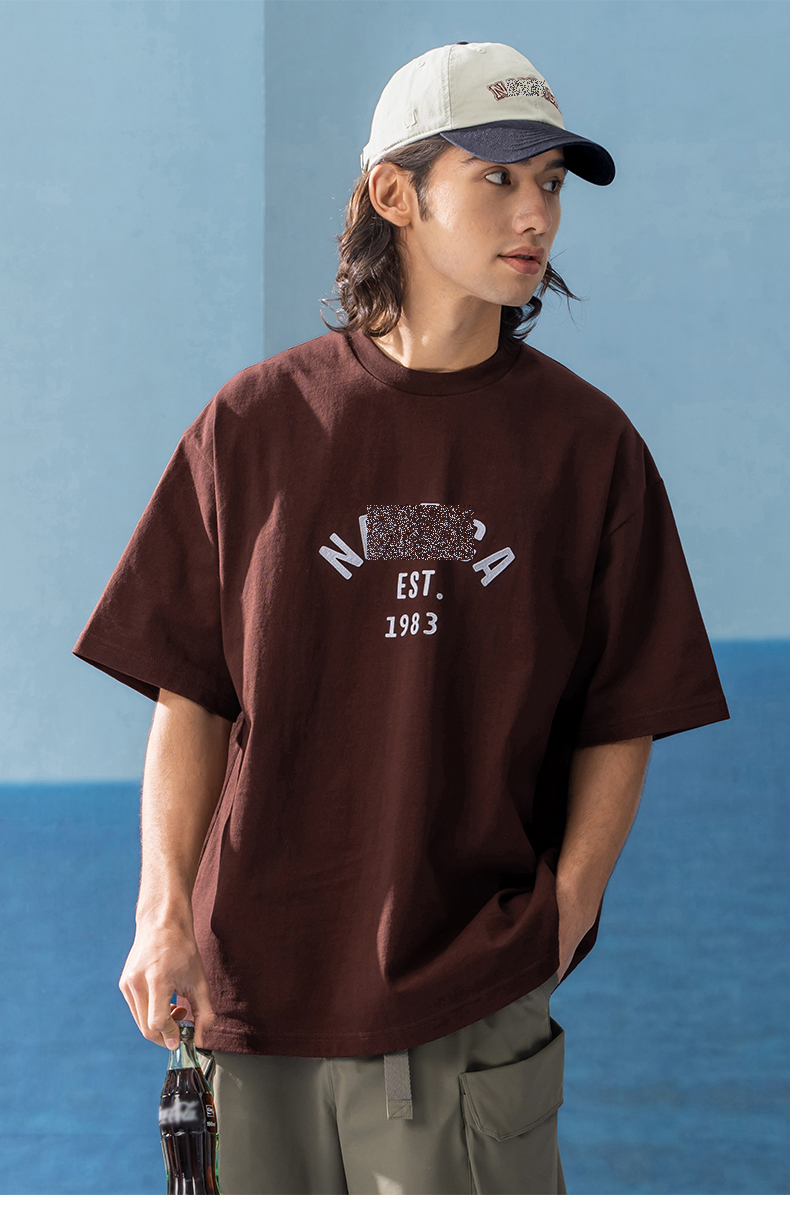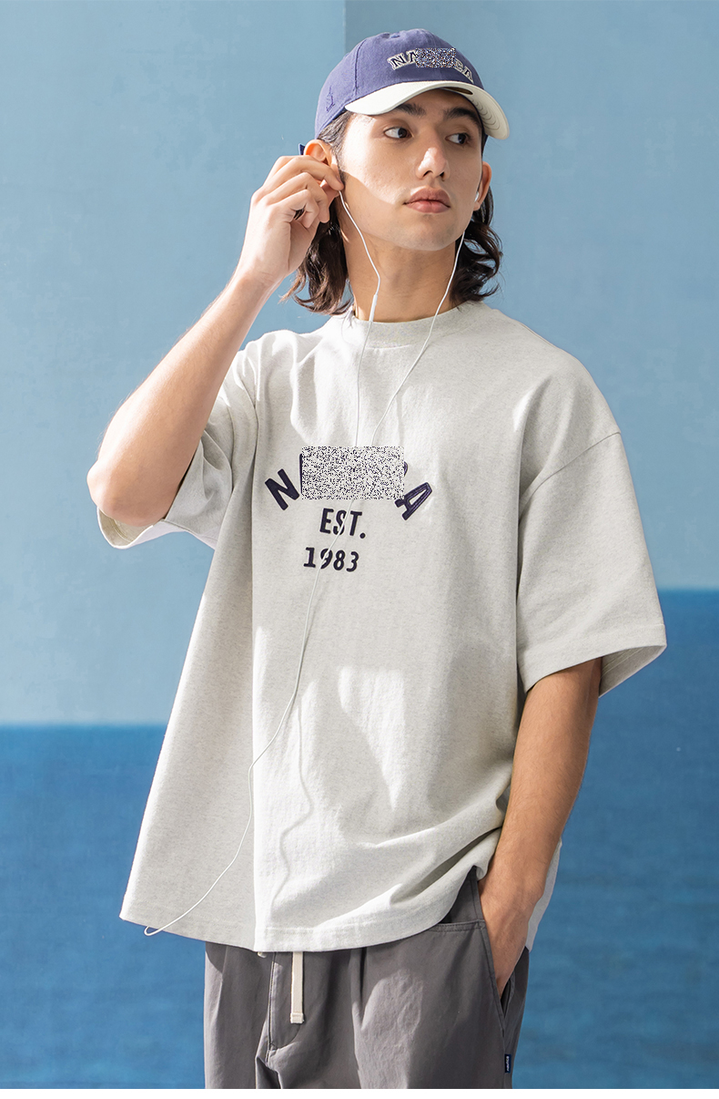 帆船 夏季新款 日系潮流贴布刺绣LOGO字母 纯棉宽松圆领短袖T恤