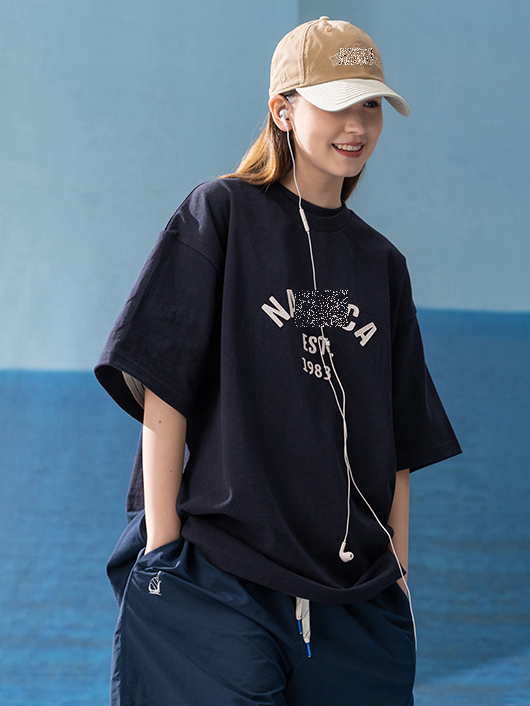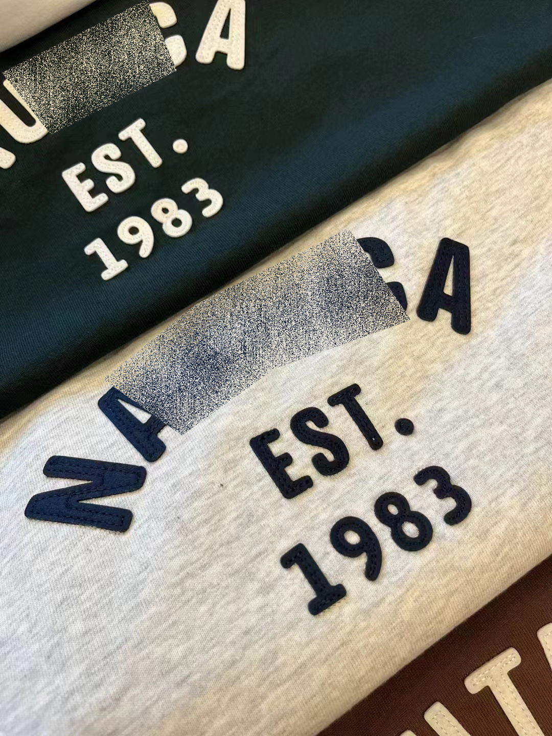 帆船 夏季新款 日系潮流贴布刺绣LOGO字母 纯棉宽松圆领短袖T恤 男女休闲 5色 NT-2692