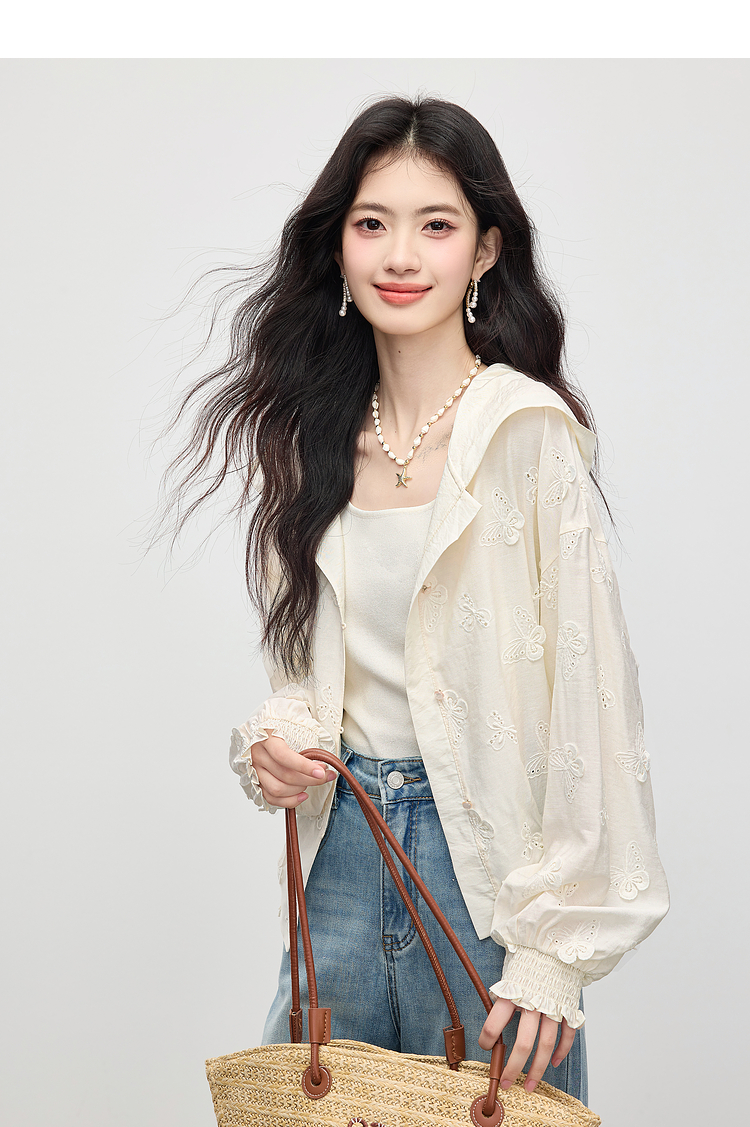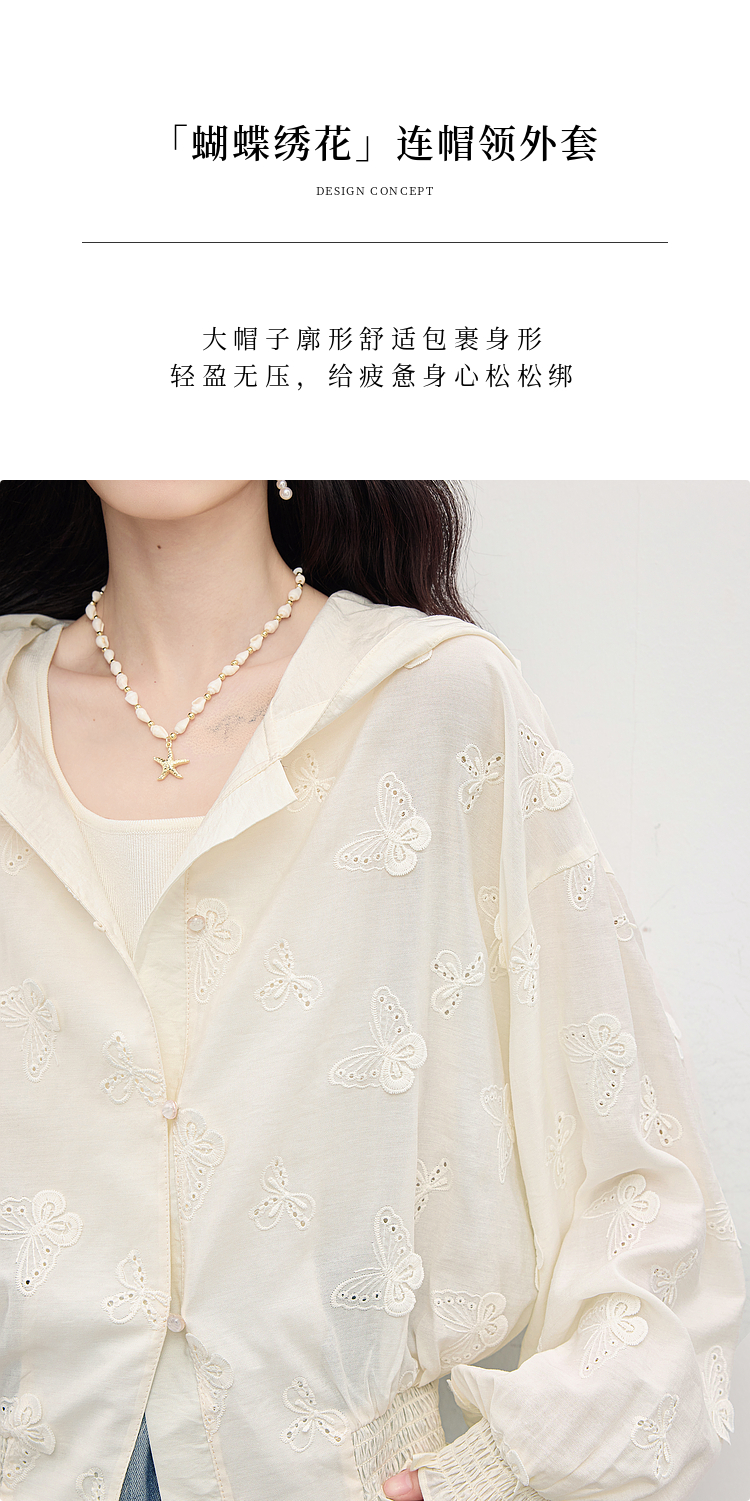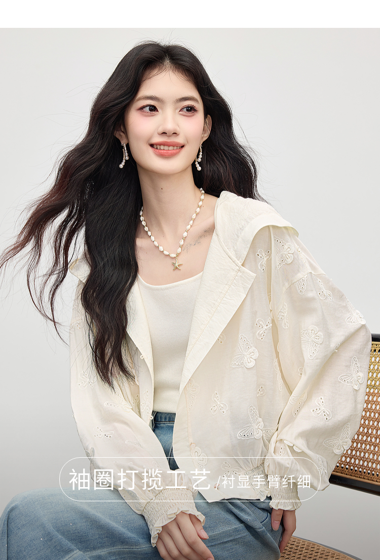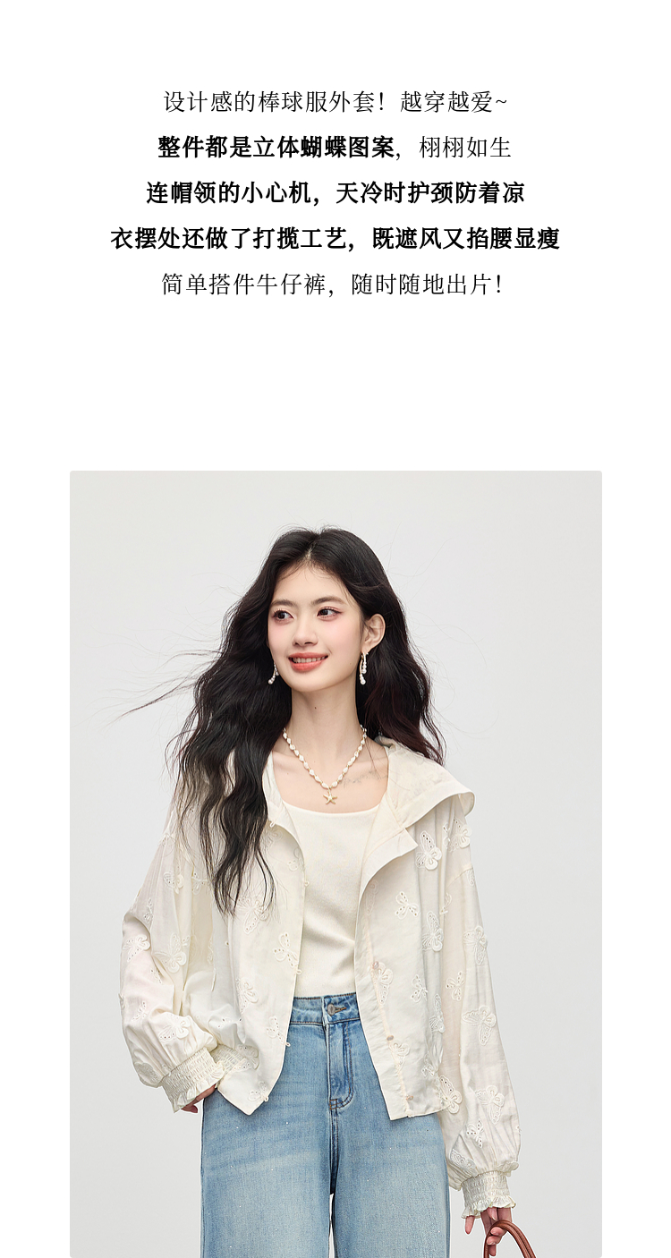 【08/12新品】熙世界立体蝴蝶绣花连帽短外套女轻薄时尚棒球服上衣2025早秋新款