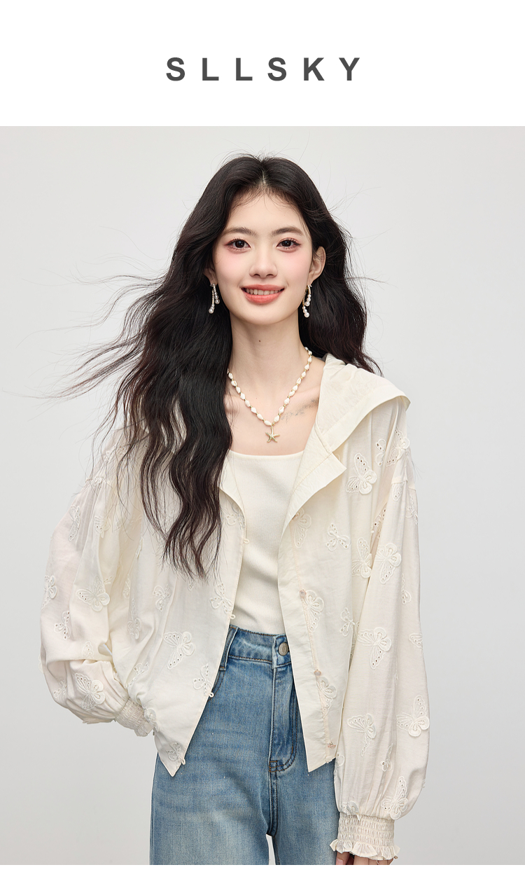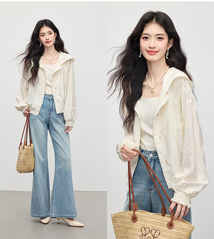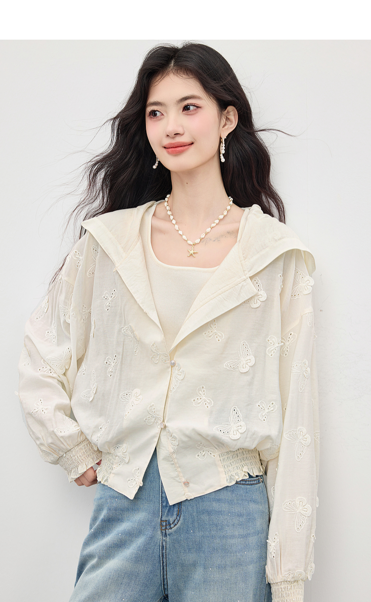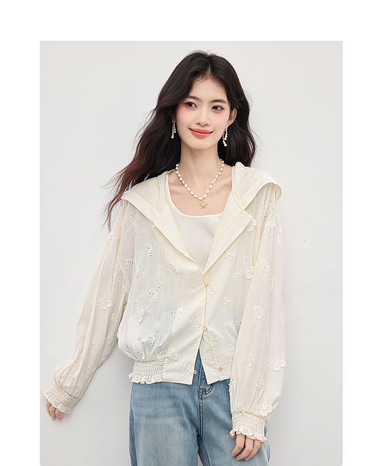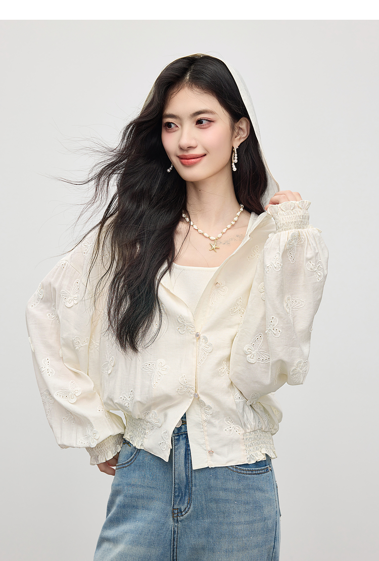 【08/12新品】熙世界立体蝴蝶绣花连帽短外套女轻薄时尚棒球服上衣2025早秋新款