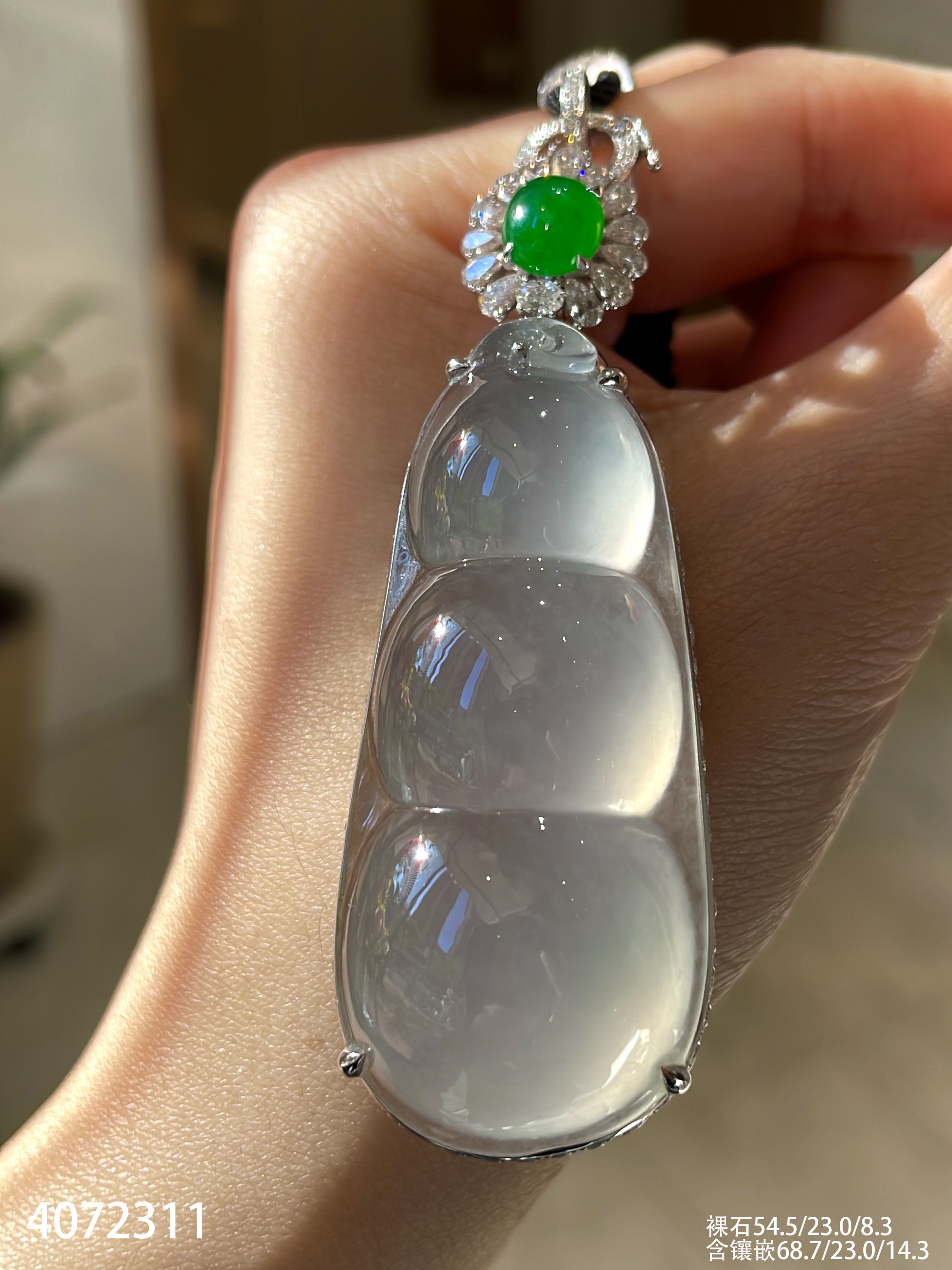 玻璃种福豆吊坠【4072311】具体价格微信咨询