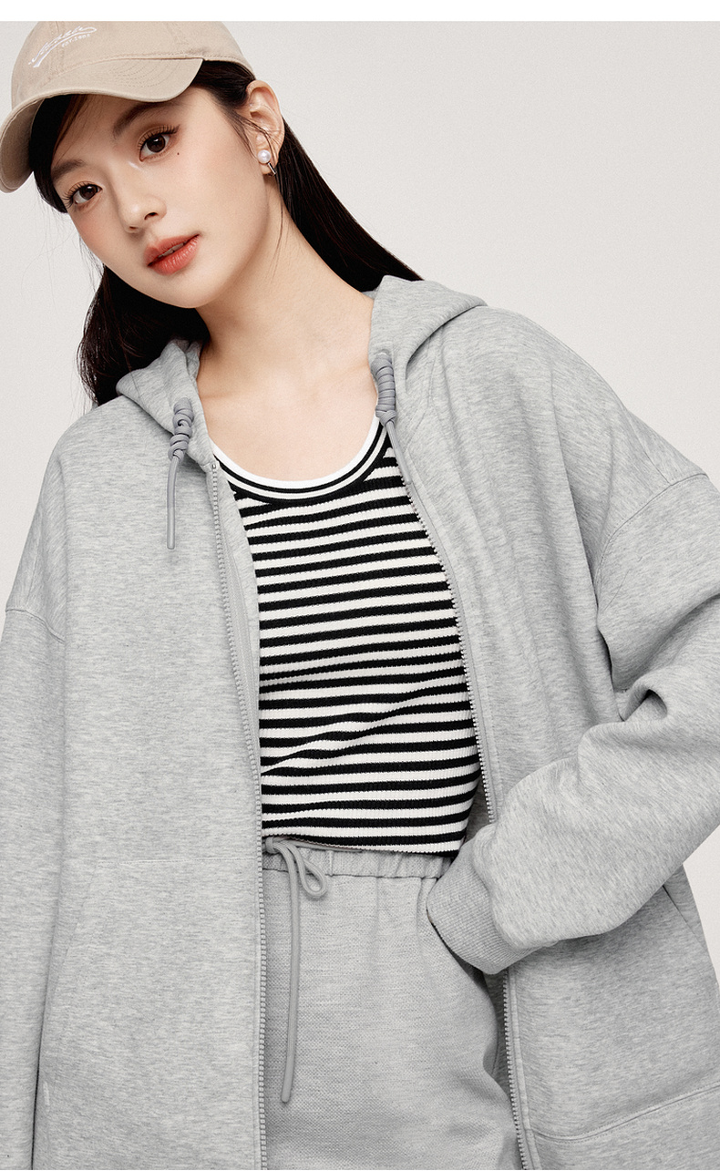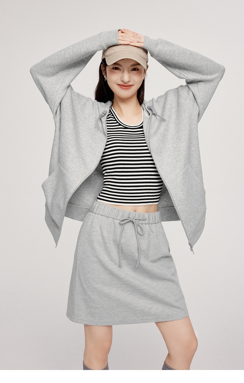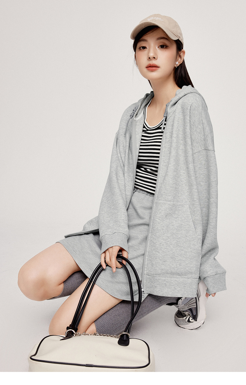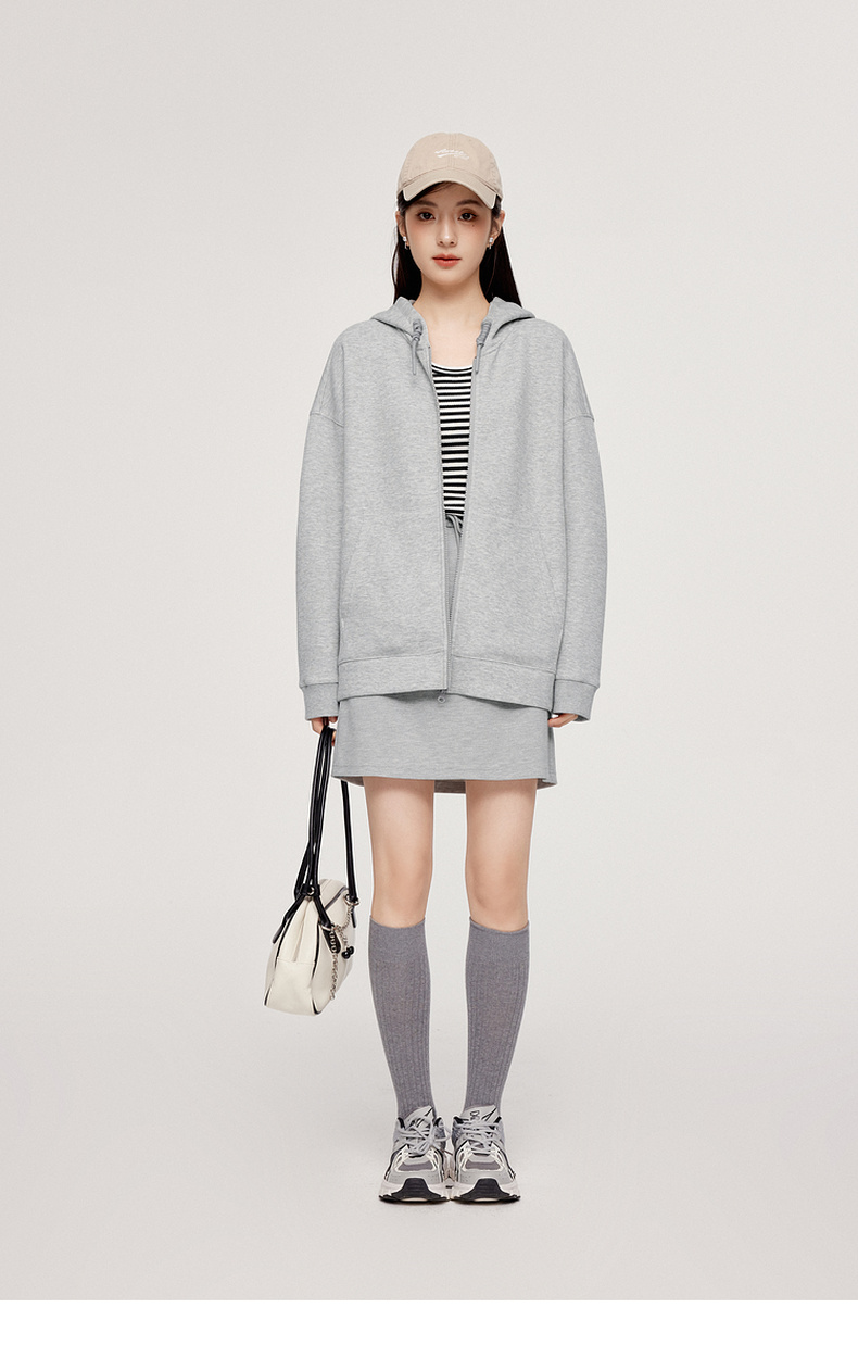 【严选】诗凡黎连帽拉链宽松休闲卫衣外套女2024秋新款miu风套装显瘦半裙SF8410551