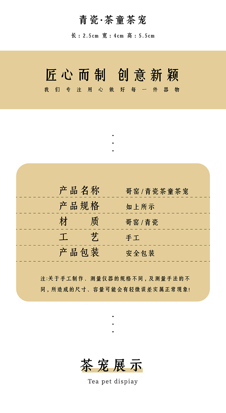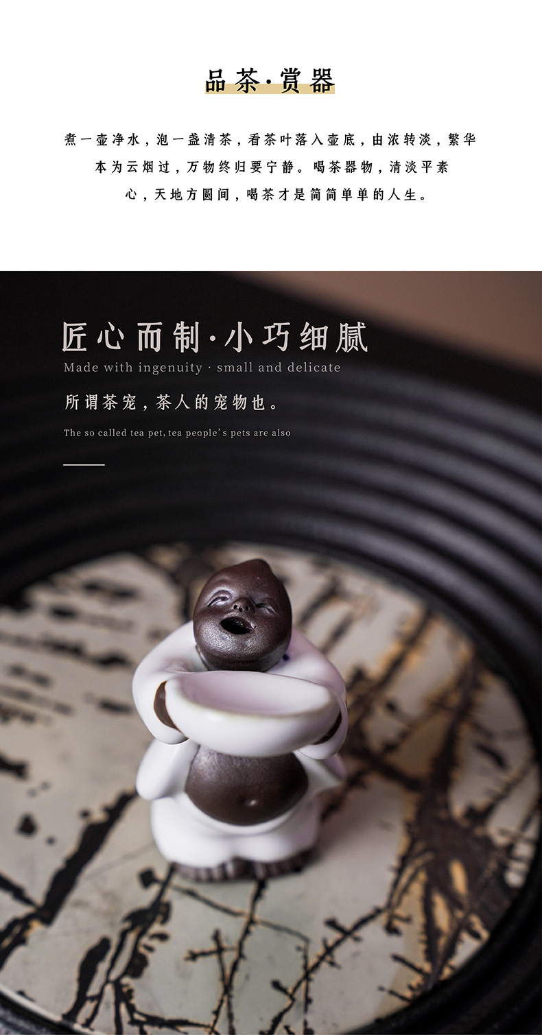 成艺 茶童茶宠 哥窑汝窑可养小茶宠茶台桌摆件 个性创意茶玩 茶馆软装小饰品