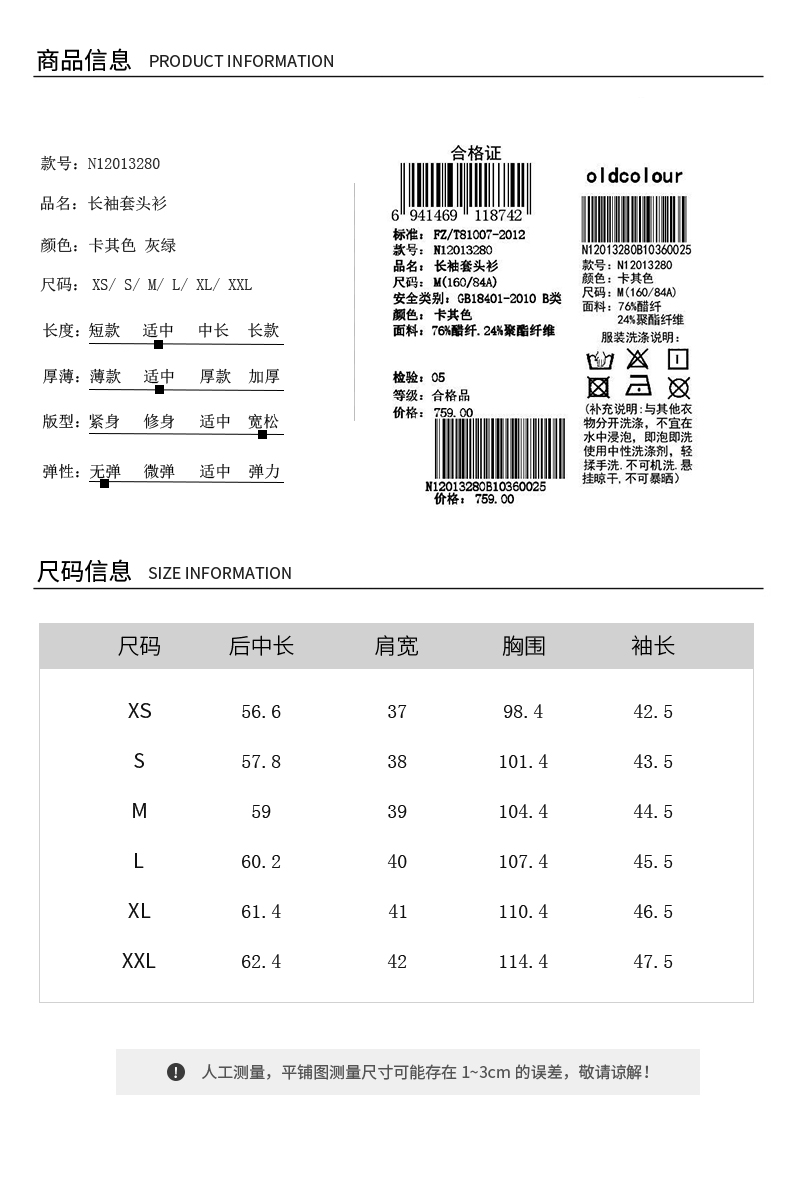 oldcolour2021春季长袖套头衫女N12013280