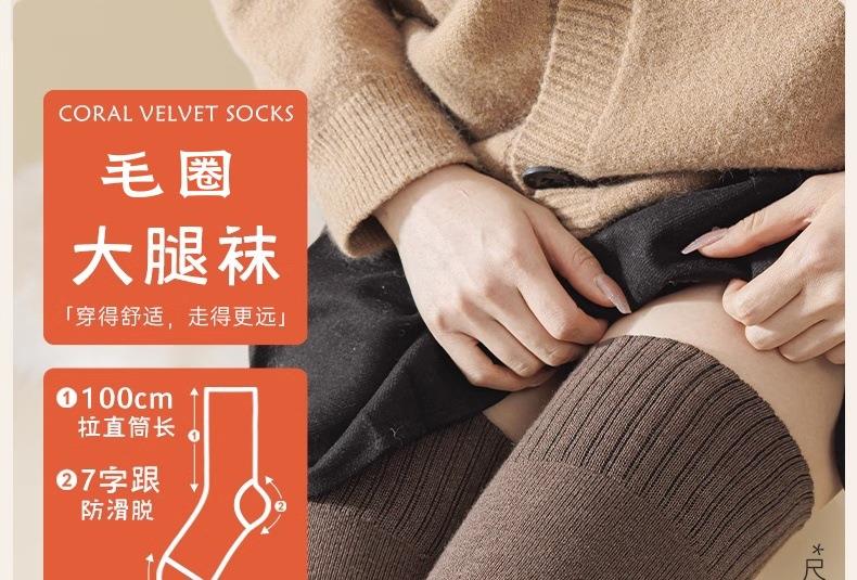 【到手3双任选 39.9元】秋冬长筒大腿袜加长过膝袜高筒加绒加厚毛圈袜女士微压显瘦JK袜子