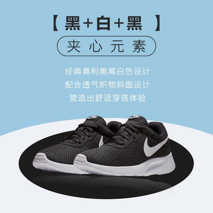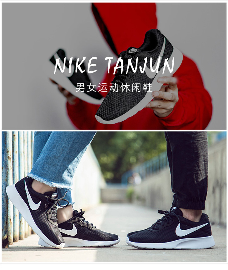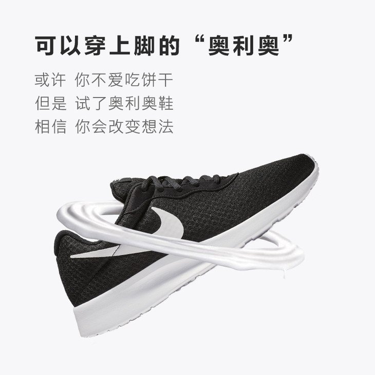 NIKE TANJUN 男女黑白奥利奥网面运动休闲跑步鞋 812655-812654