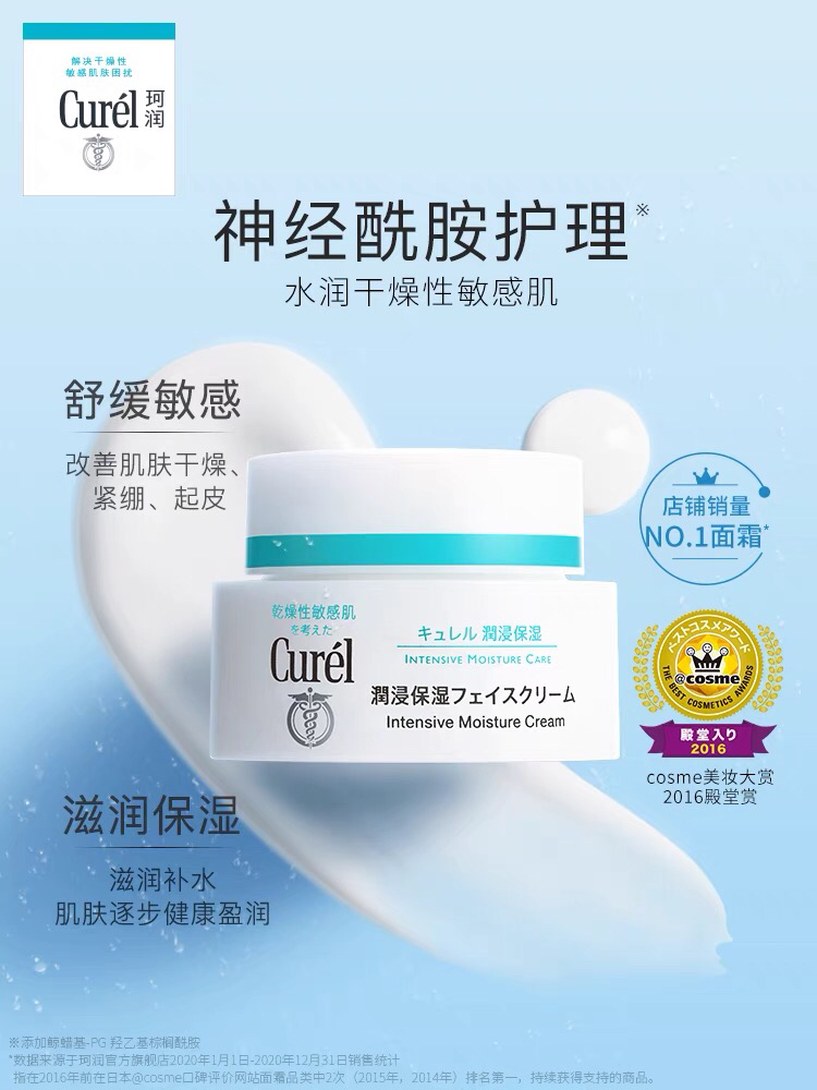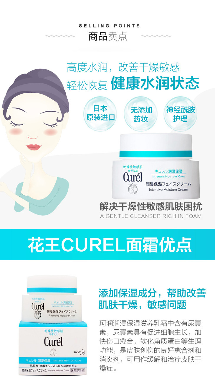 【海关保税直发】Curel珂润面霜-干燥敏感肌-补水滋润不油腻40g-会员5折