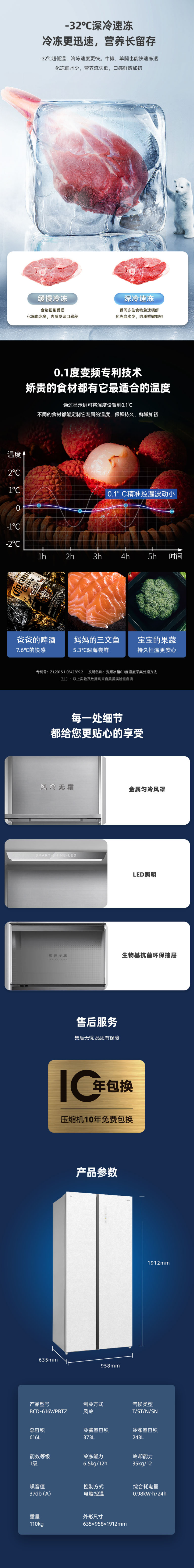 美菱 冰箱 BCD-616WPBTZ 616升对开门冰箱盐湖白