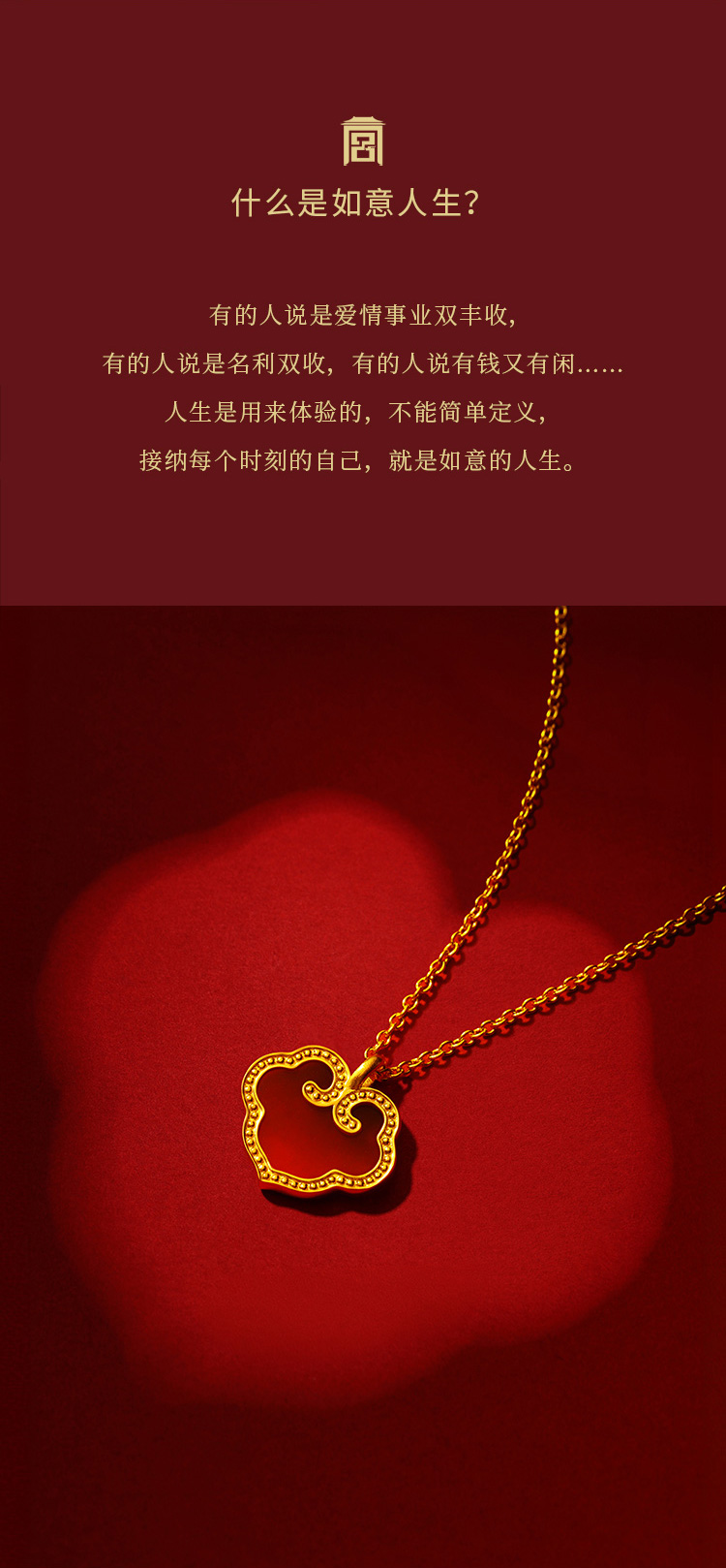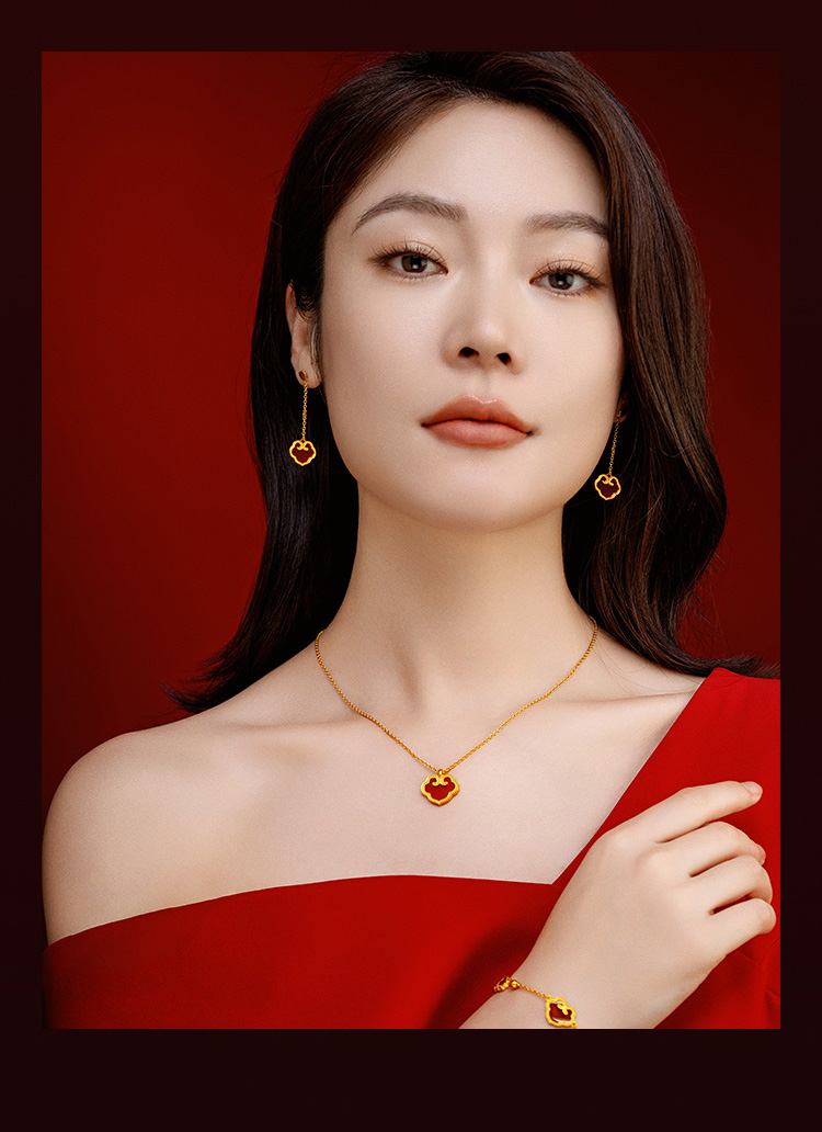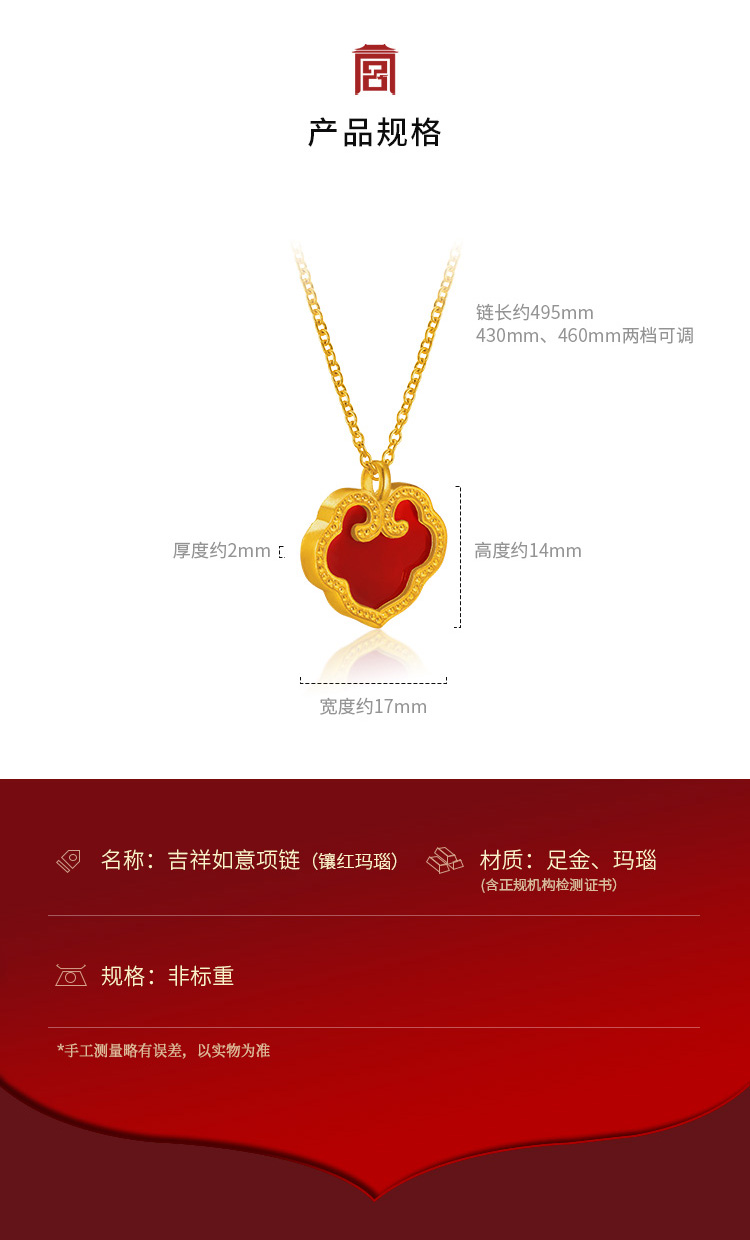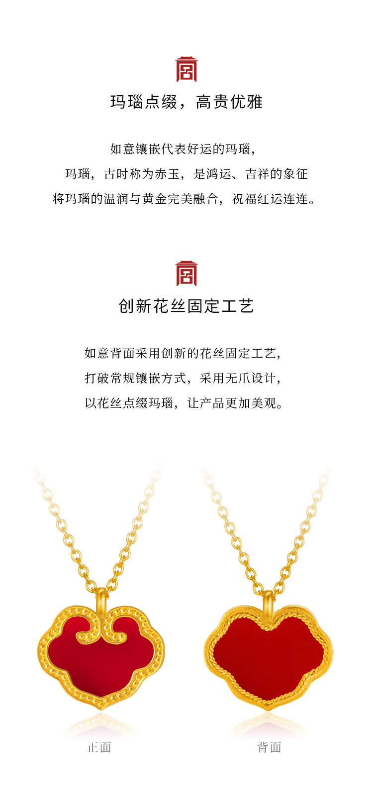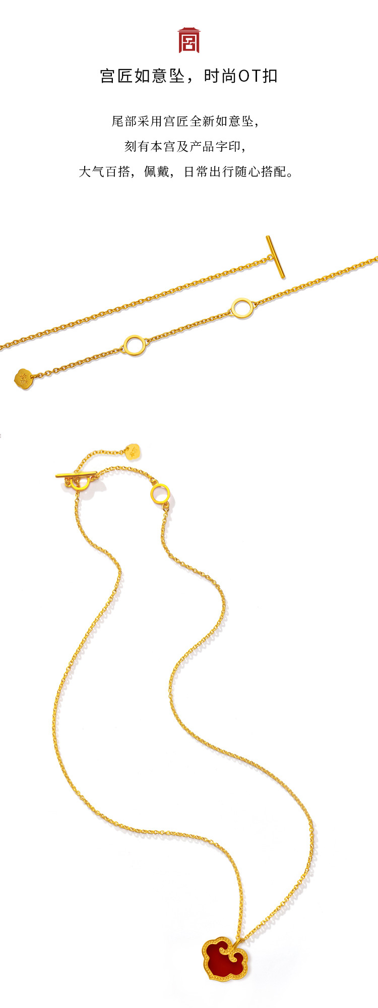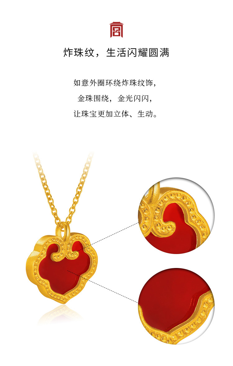 宫匠造办 吉祥如意项链 黄金镶红玛瑙