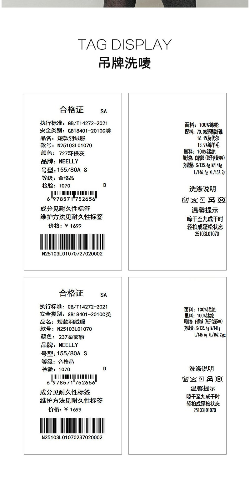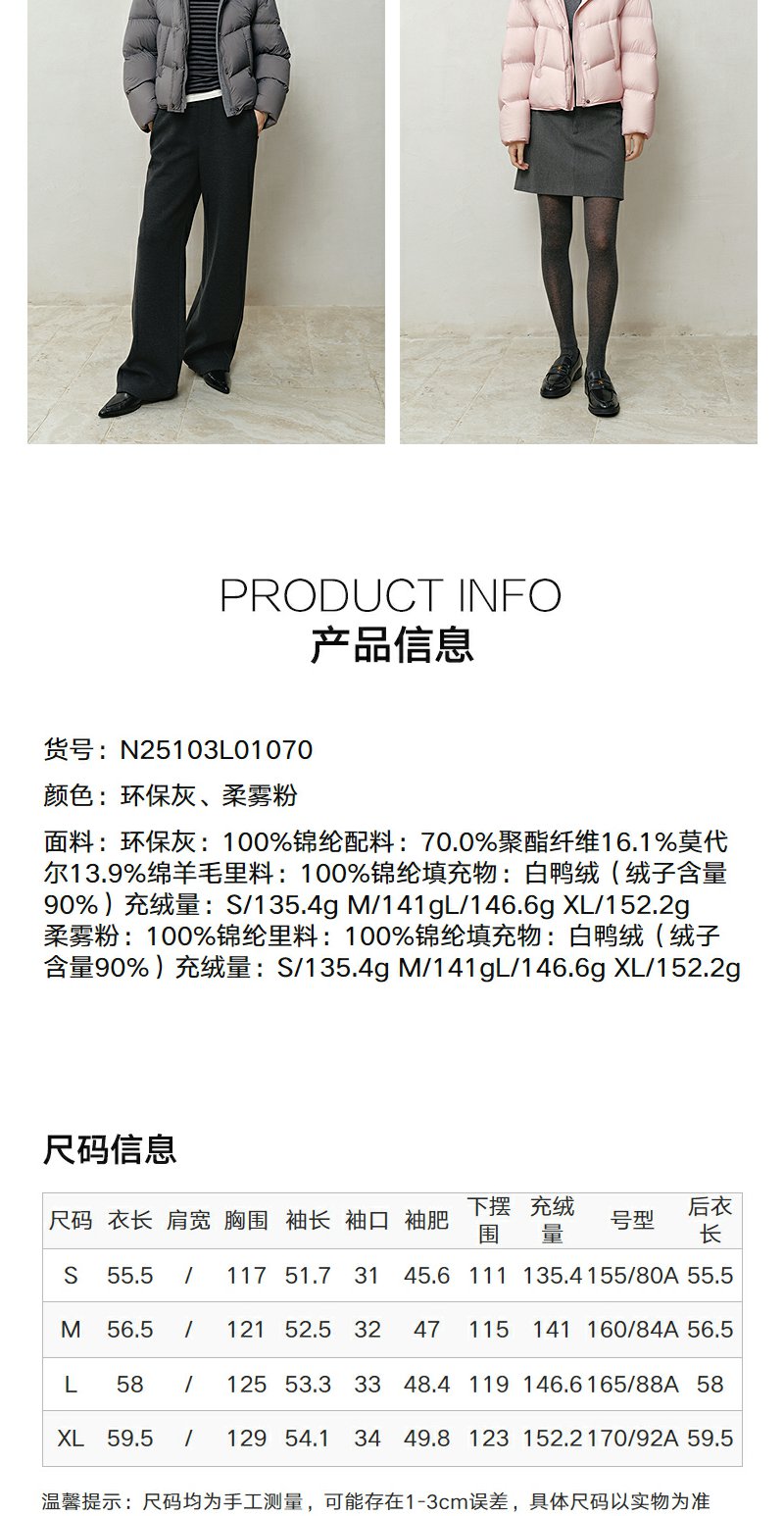 NEELLY纳俪商场同款冬新款云朵龟背简约短款羽绒服女舒适宽松外套N25103L01070