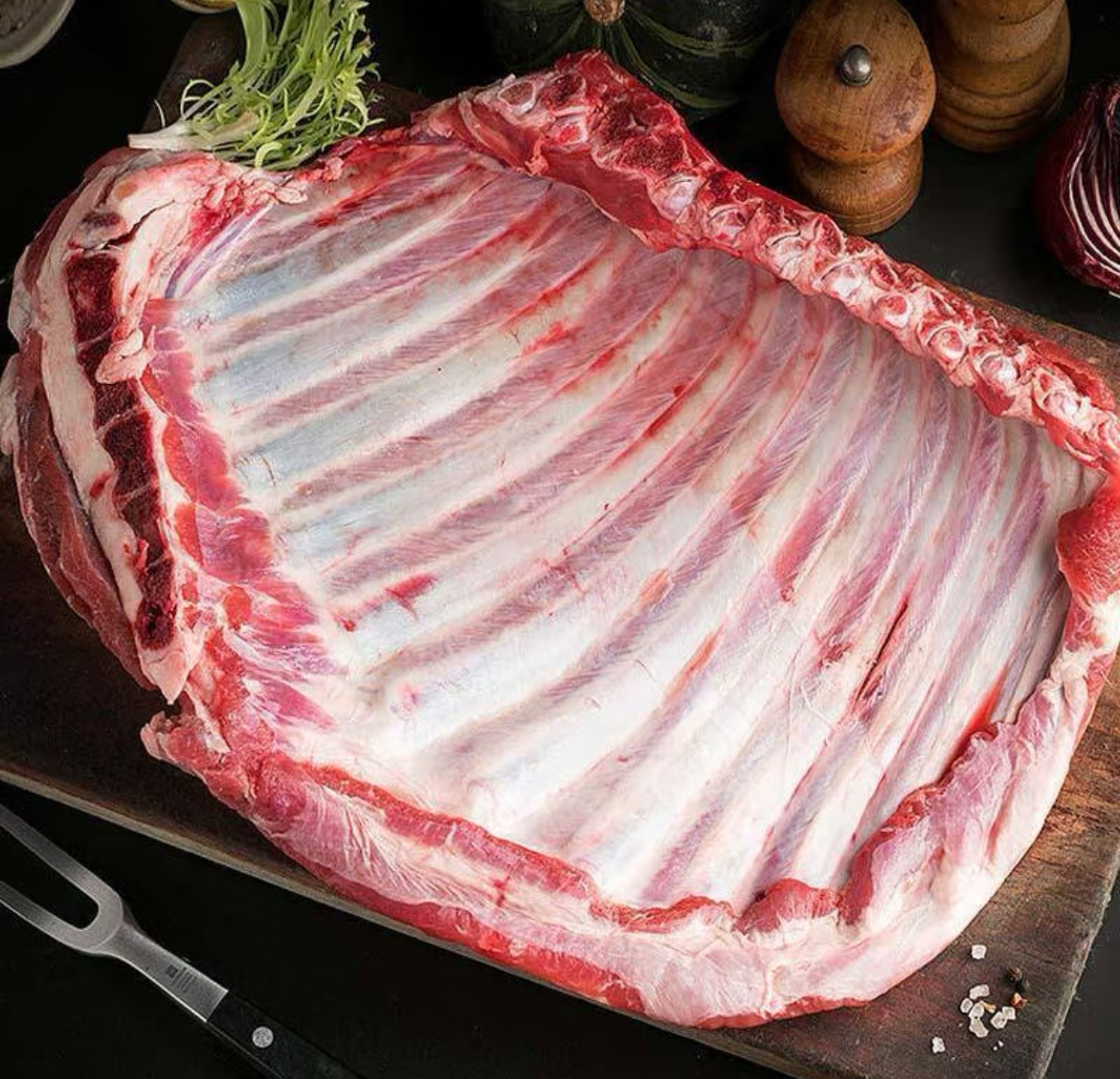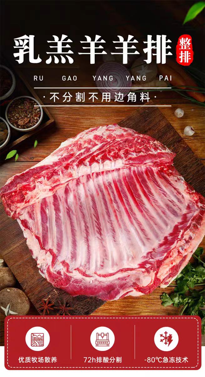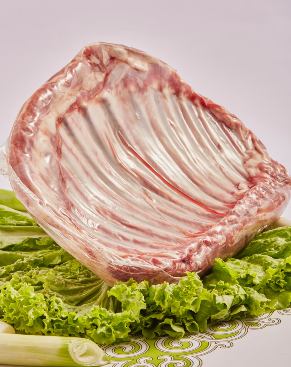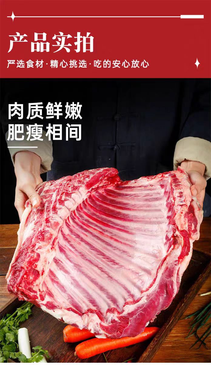 精选整扇,骨肉相连,脂肪分布均匀且膻味极淡,入口有淡淡的奶香;