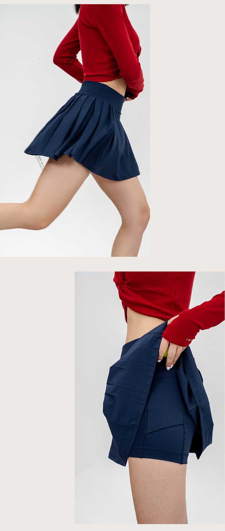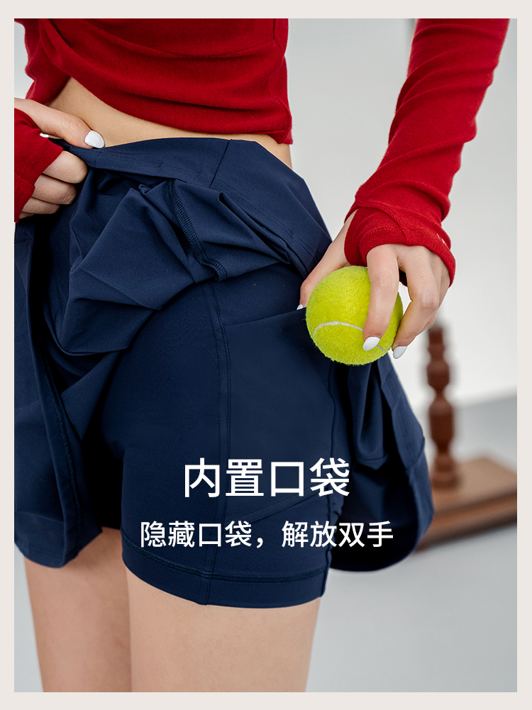 L RECNAVA 高腰加宽腰头 侧边褶皱裙摆网球裙 凉感50D加密四面弹面料 带打底裤 有口袋