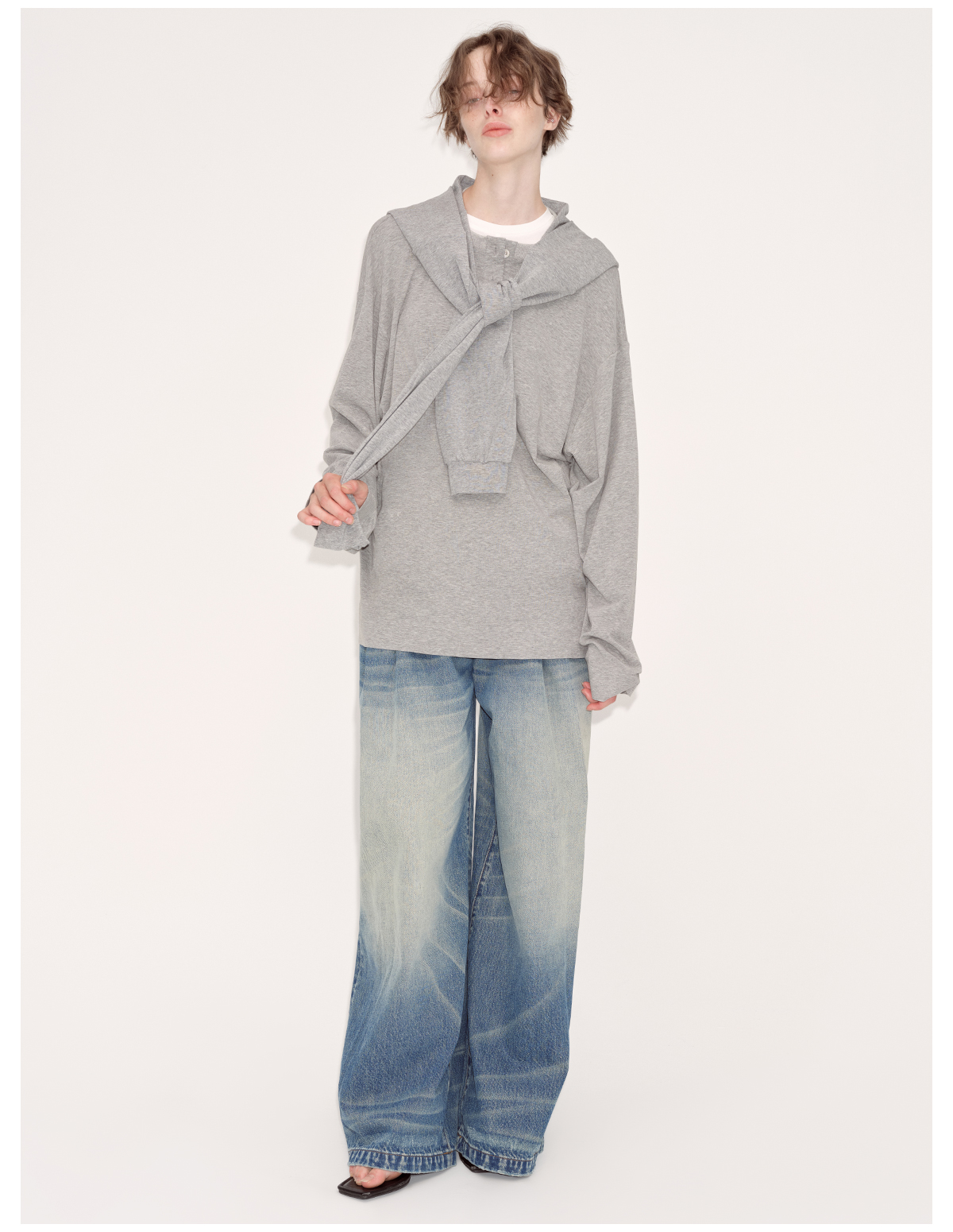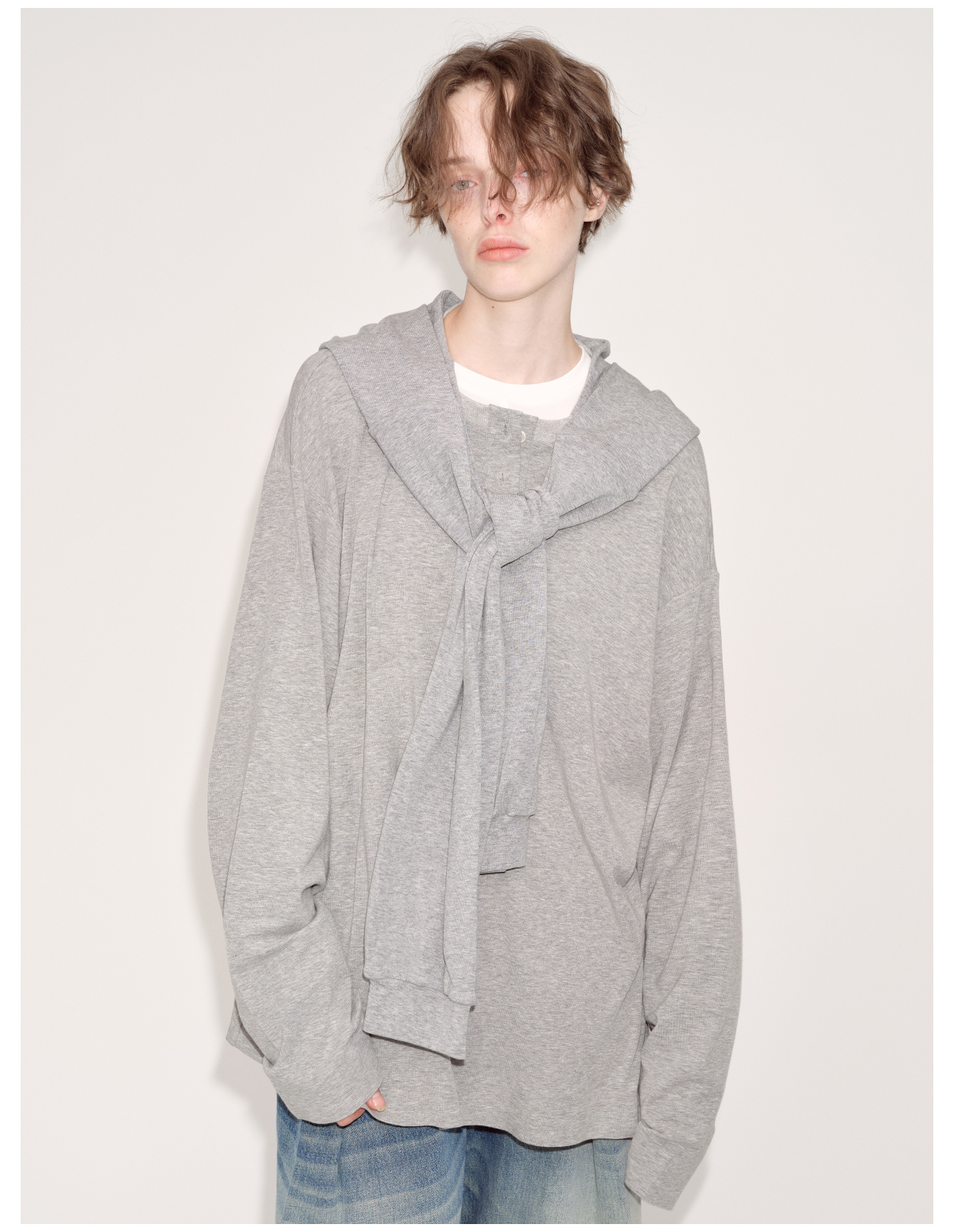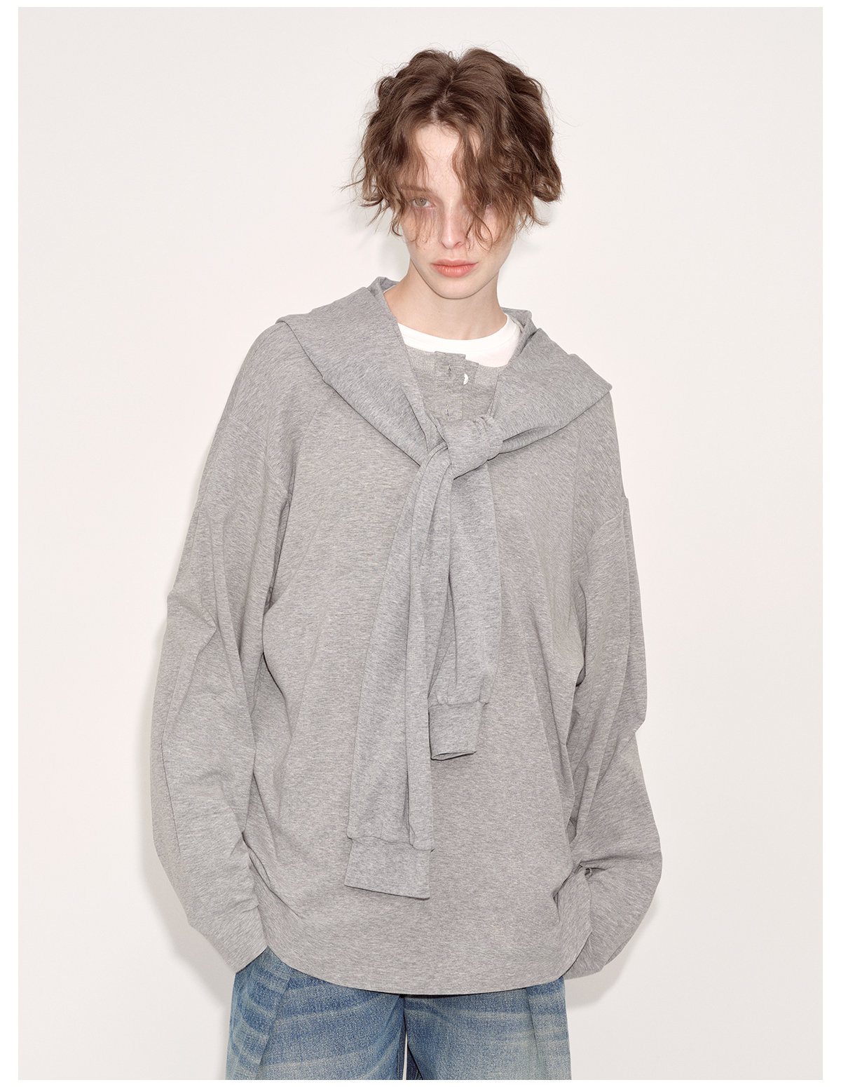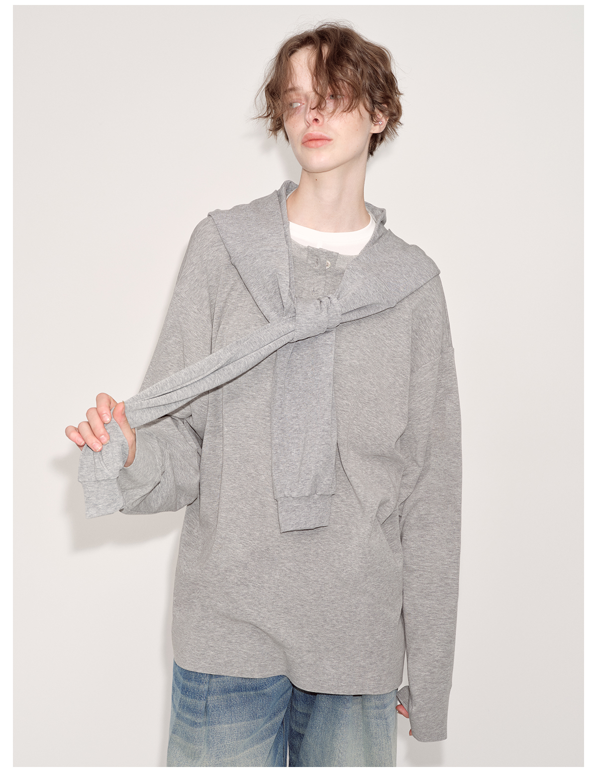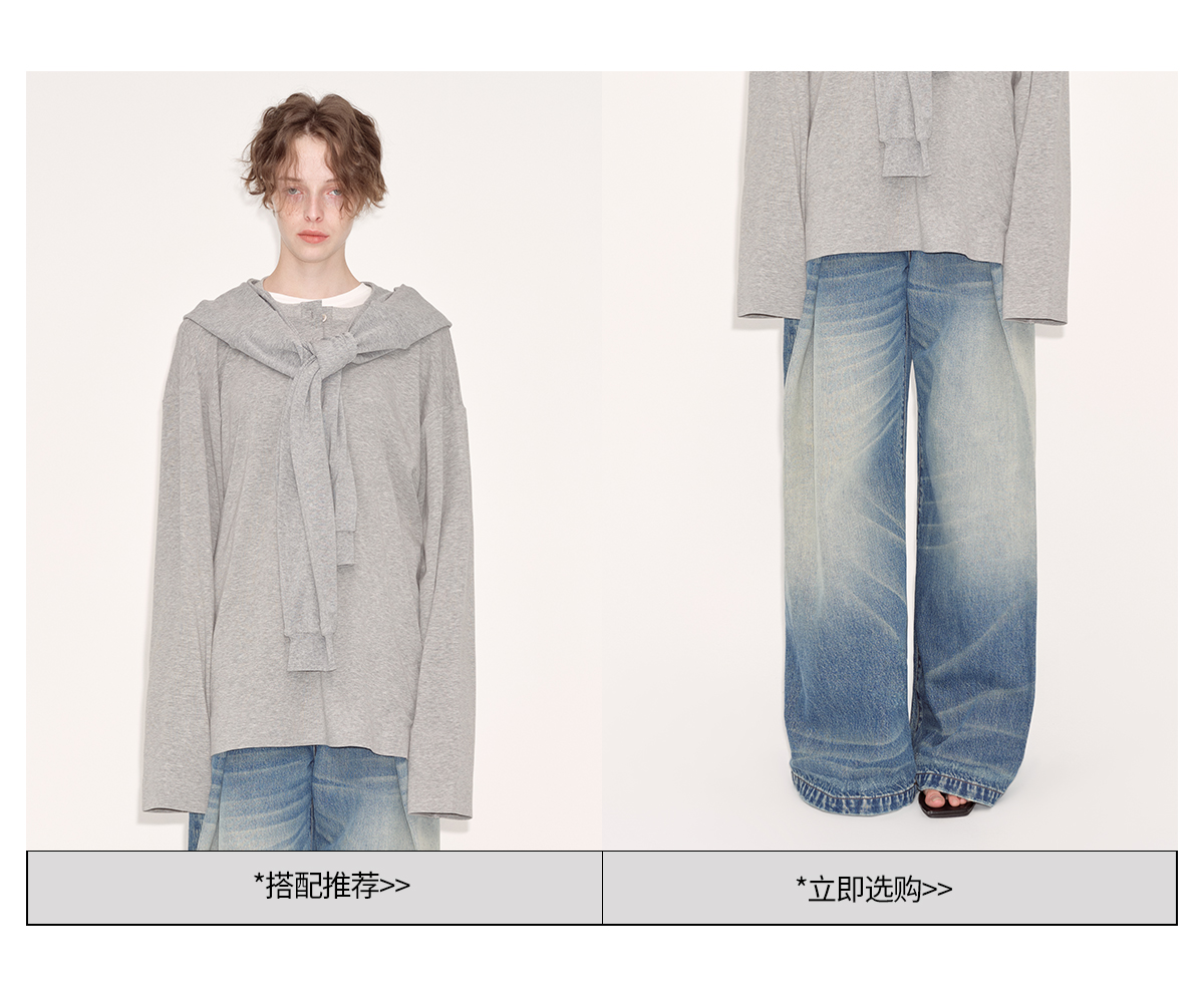 出逃赤岗西/24AWT102/慵懒风灰色长袖T恤
