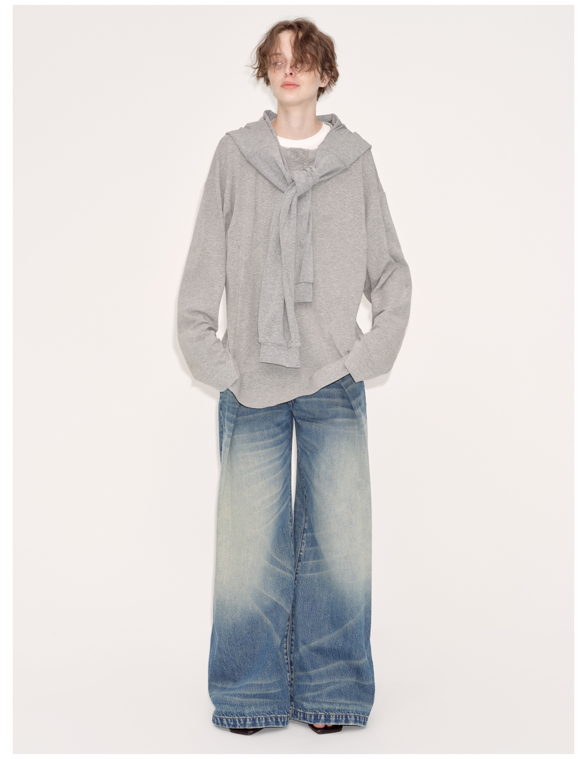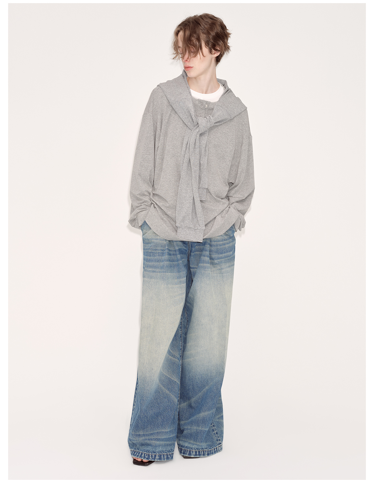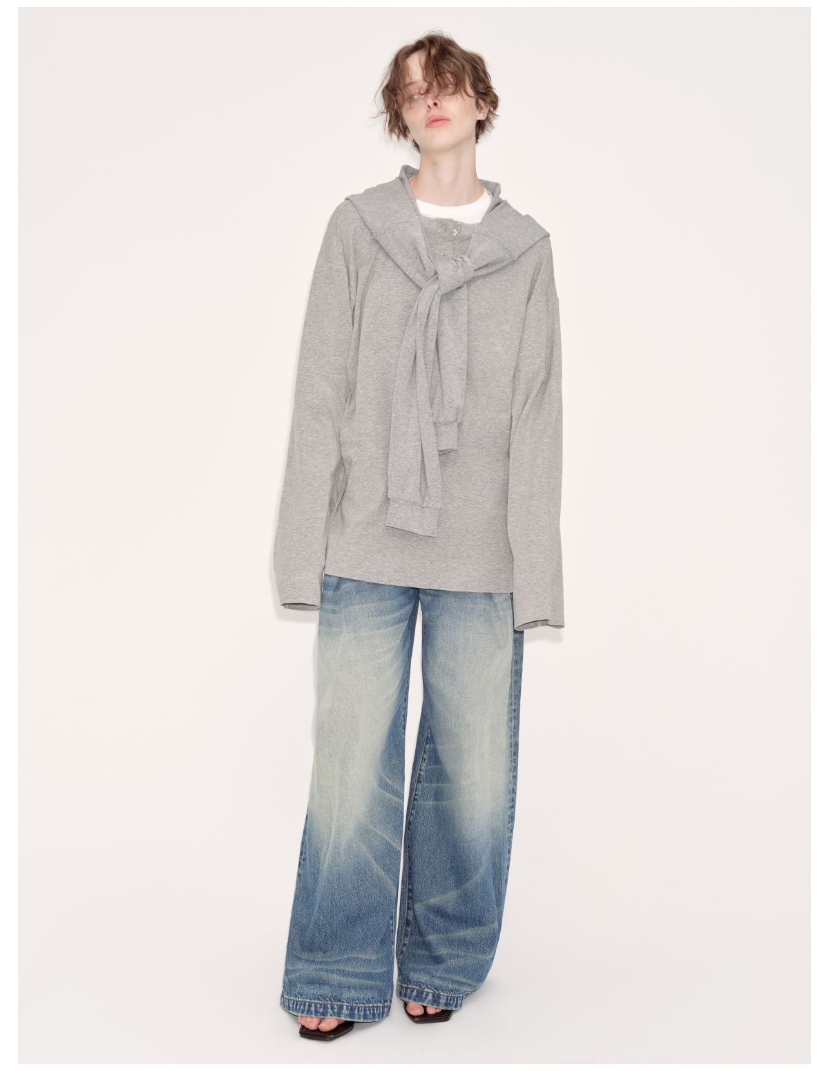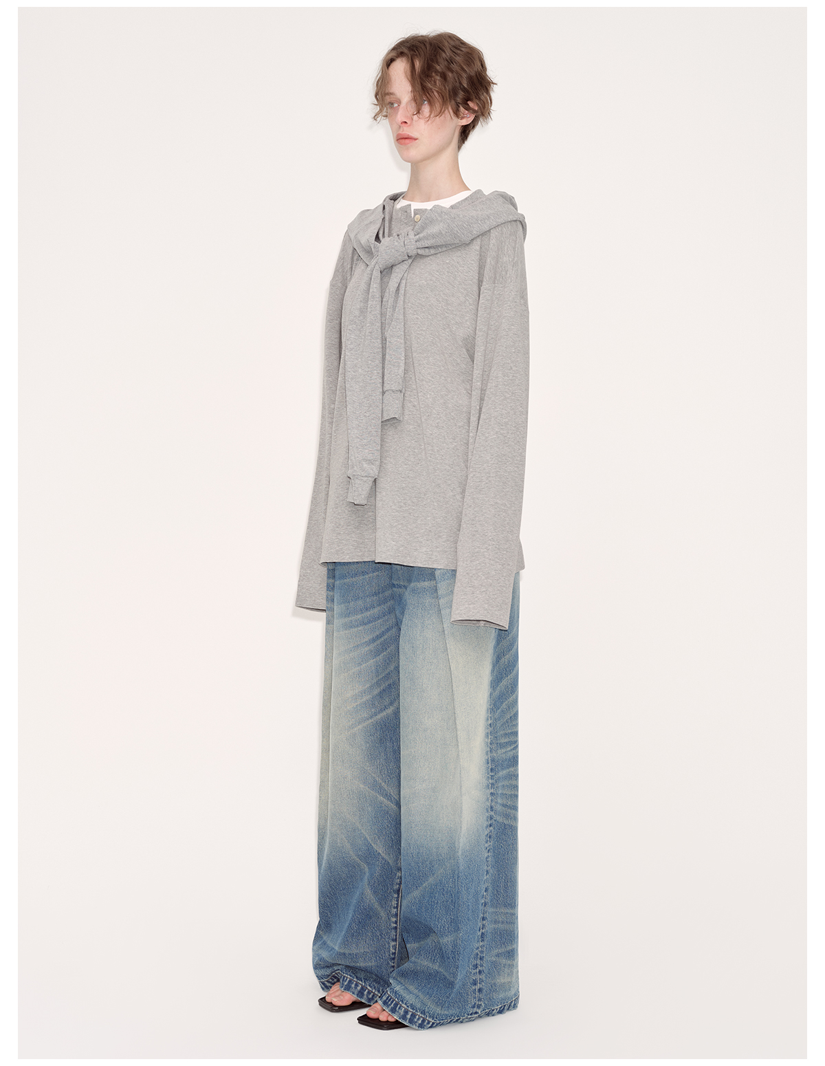 出逃赤岗西/24AWT102/慵懒风灰色长袖T恤