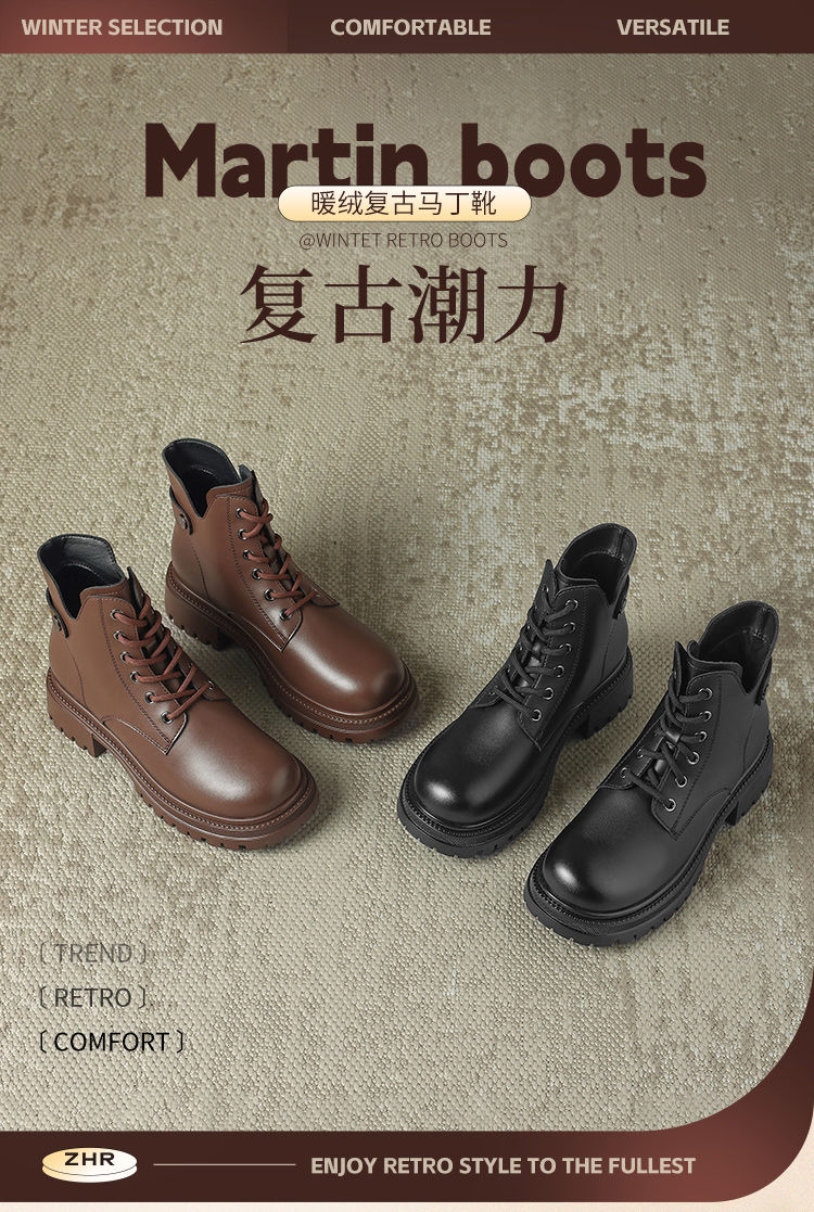 ZHR则则经典多巴胺马丁靴2024新厚底轻便法式小短靴简约时装女靴