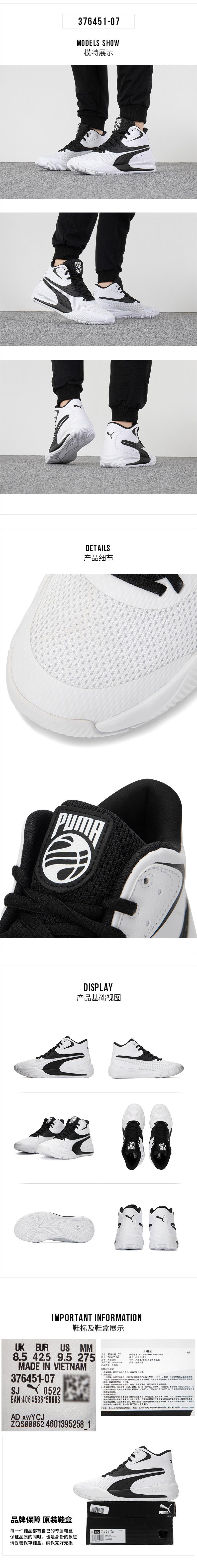 彪马(PUMA)官方旗舰男鞋篮球鞋 2022秋季新款运动鞋时尚休闲鞋耐磨透气中高帮缓震场上实战球鞋2 376451-07