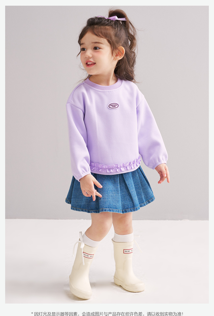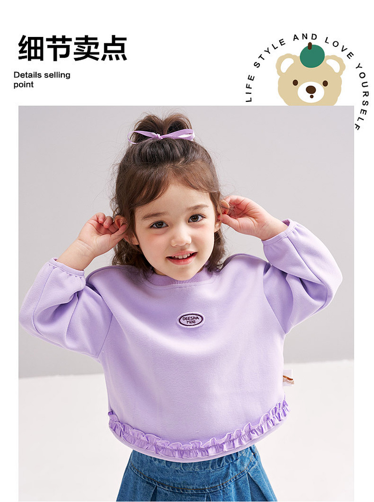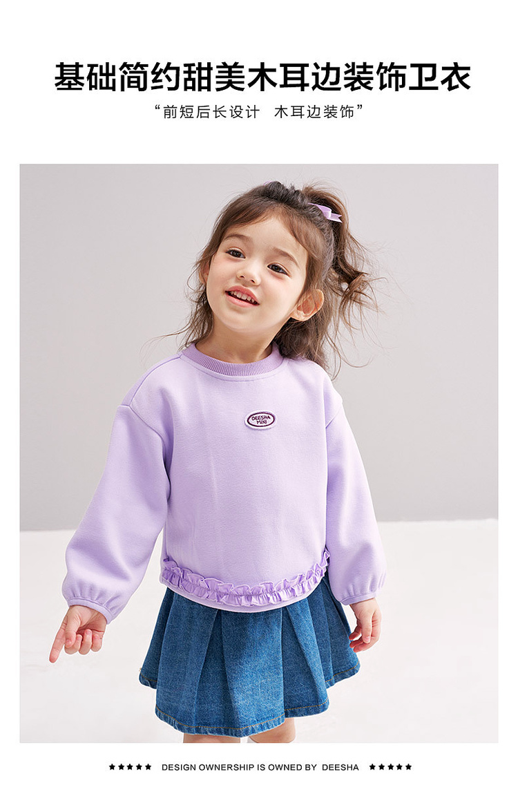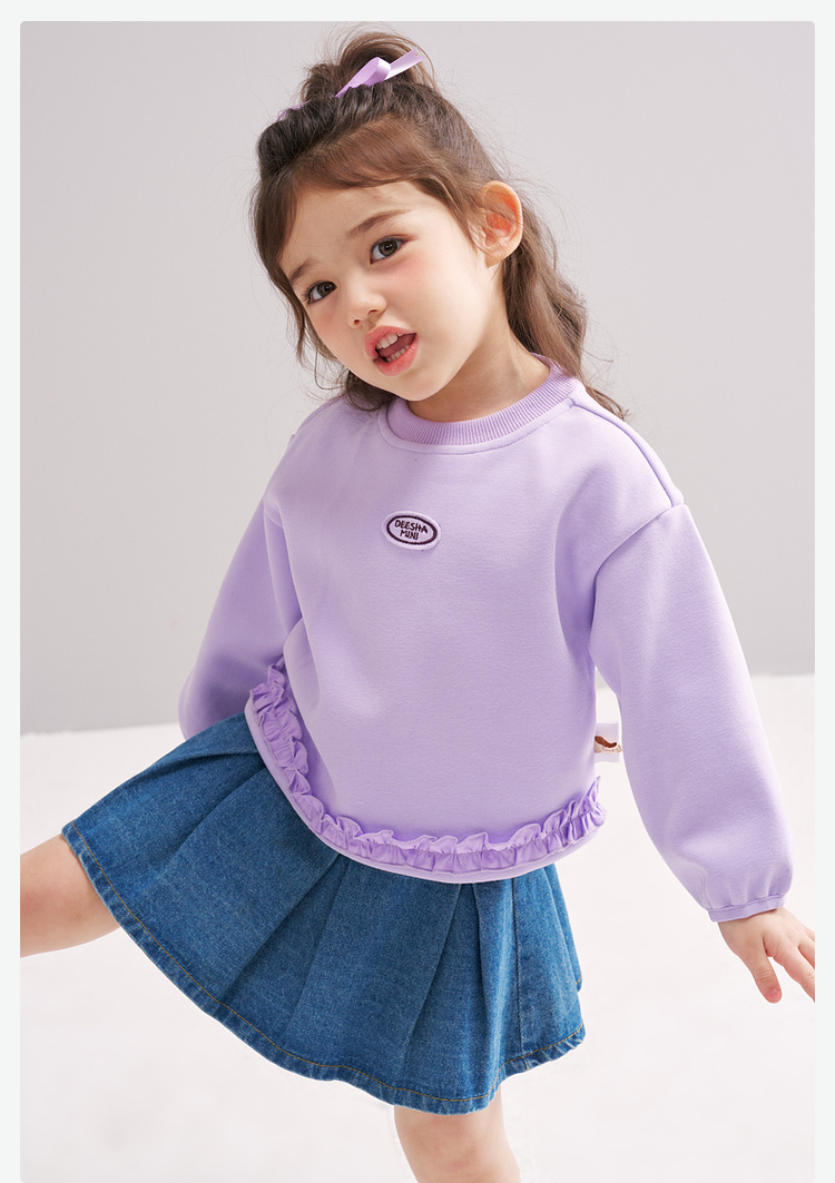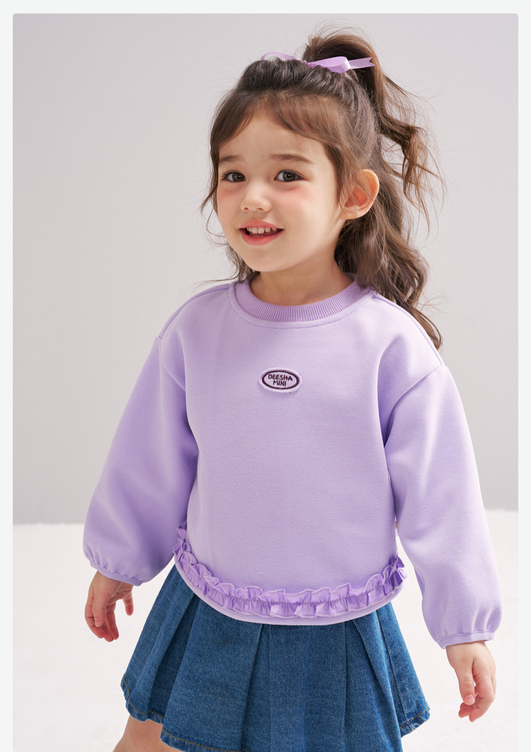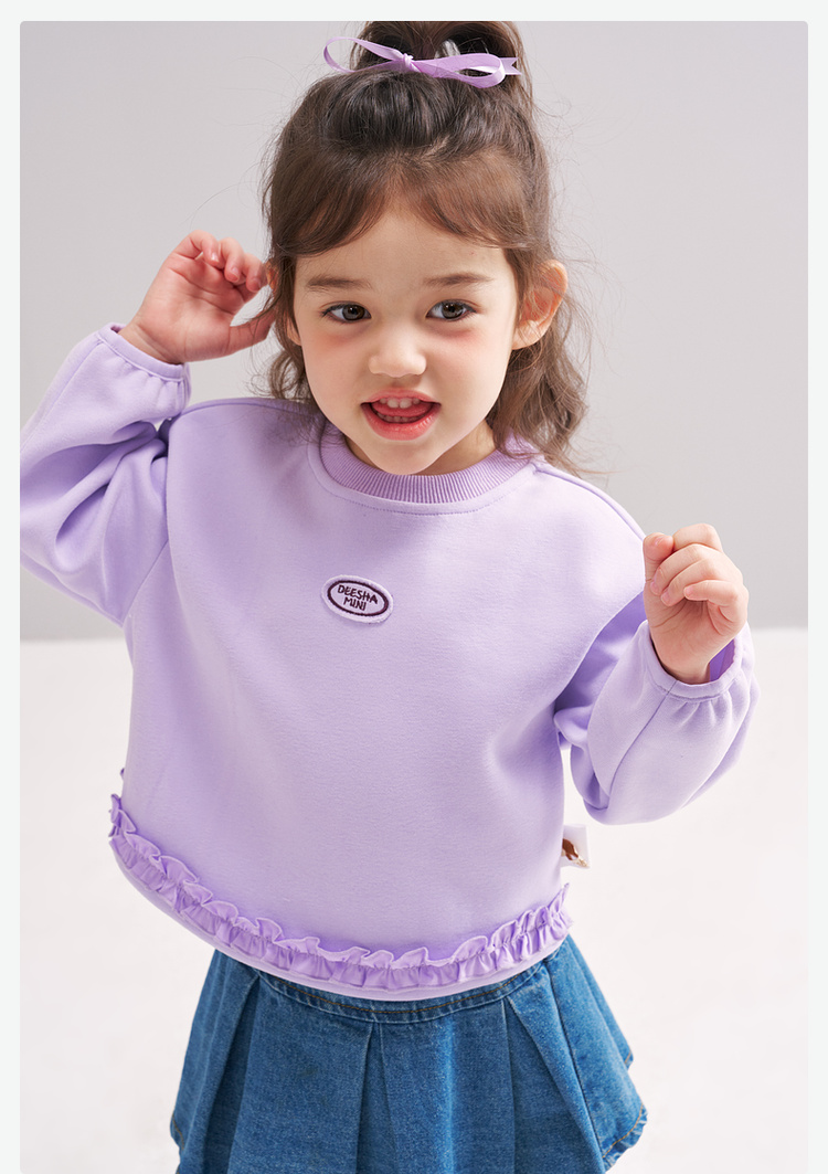 笛莎Deesha 2026春季女童基础简约甜美木耳边装饰卫衣