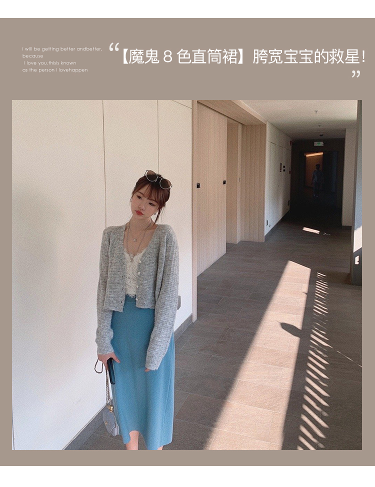 【金蘑菇菇 魔鬼直筒裙 灰色XS/S码 断码】胯宽宝宝的救星!初春温柔半身裙女