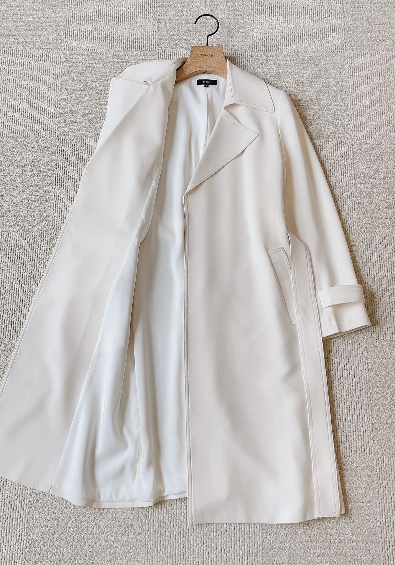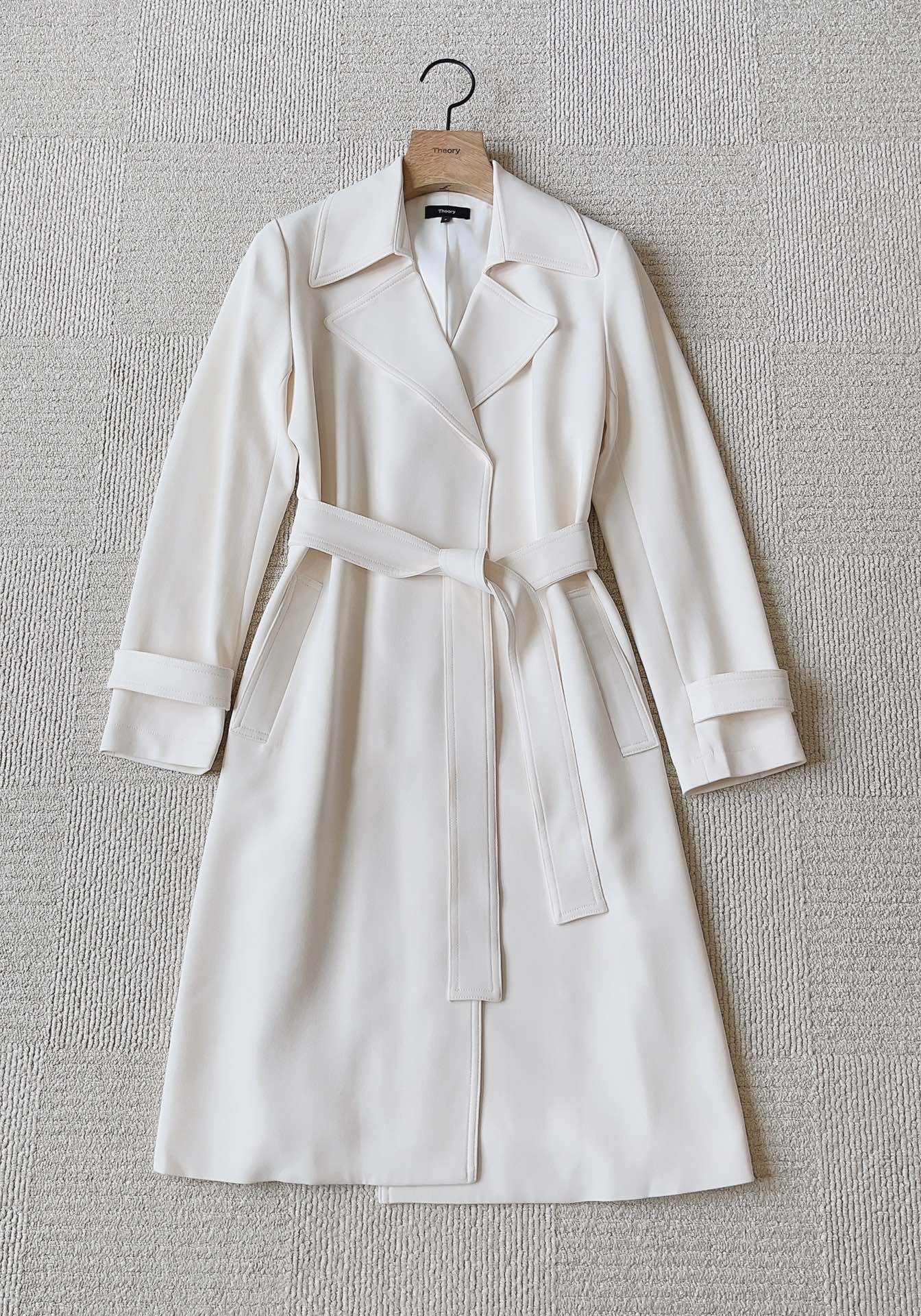 实拍看来。这是一件给你真丝体感,但是又能舒爽结实的纯纯的三醋酸风衣。估摸着目前能出这个材质的,只有TH这一家了。版型是bbr的trench版型,不过面料那是实实在在优越于BBR,亲肤,舒爽,垂坠,透气,飘逸。整体宽松无束缚,春夏秋三季可以穿,自然垂坠大方。