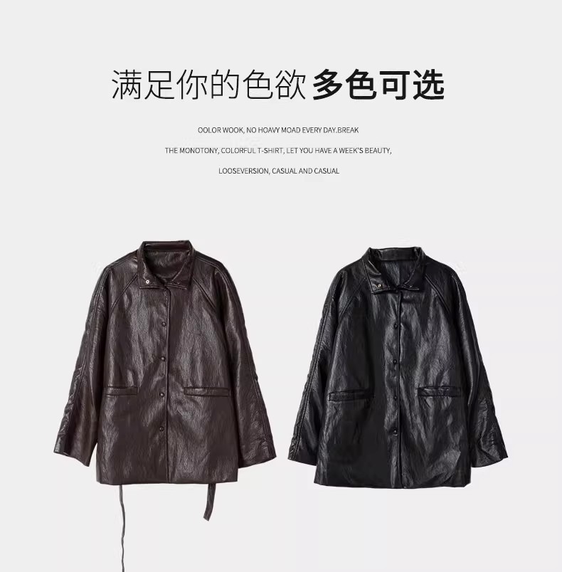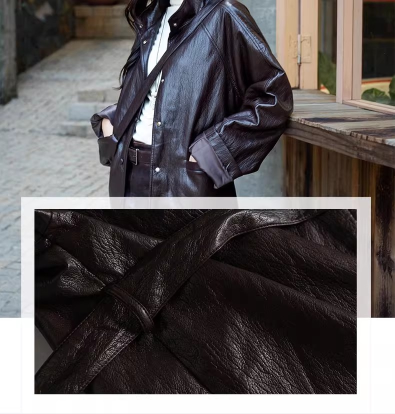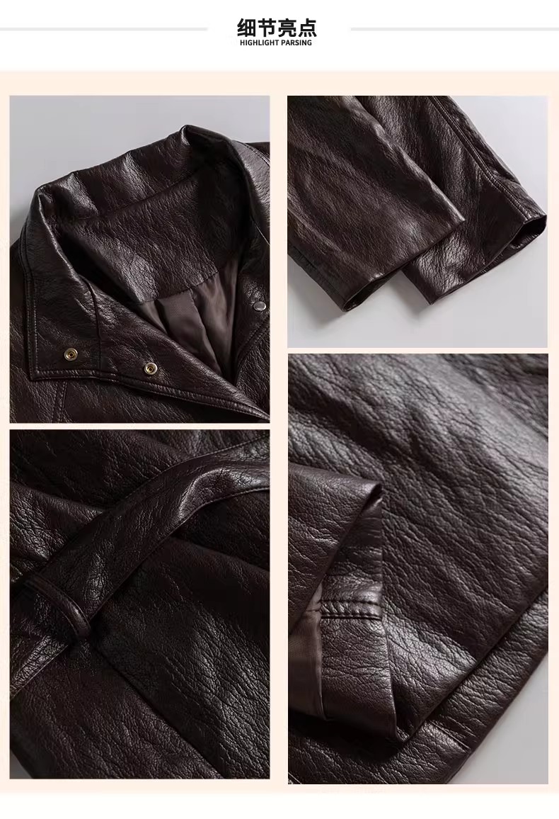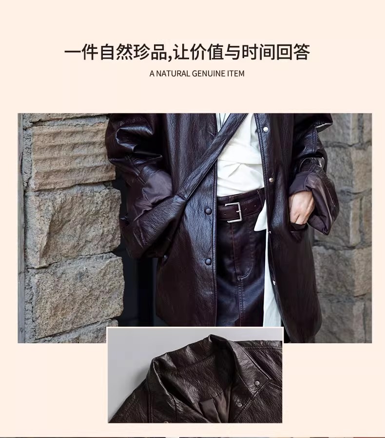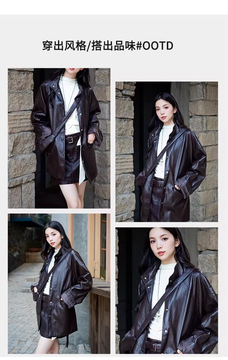 【门店同款】ENJOY秋季“浮光织影”配牛角包中长款皮衣 164250321