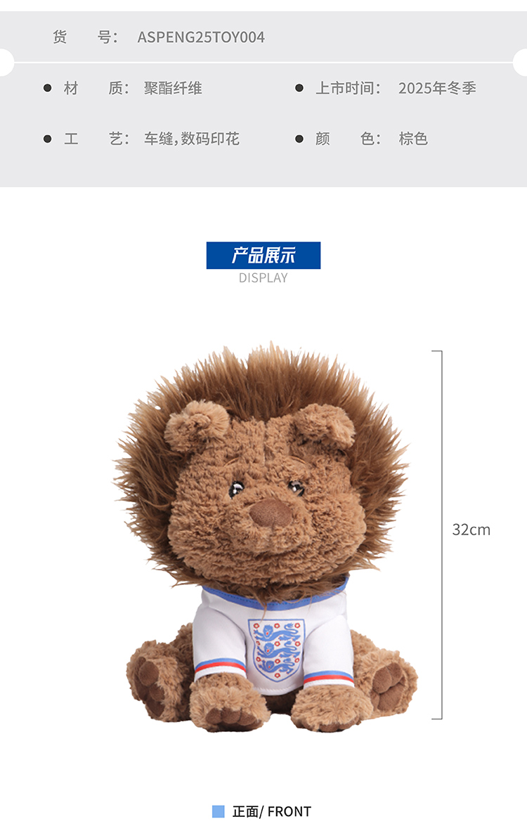 【官方正版】英格兰国家队 | 雄狮毛绒玩偶可爱软萌吉祥物周边