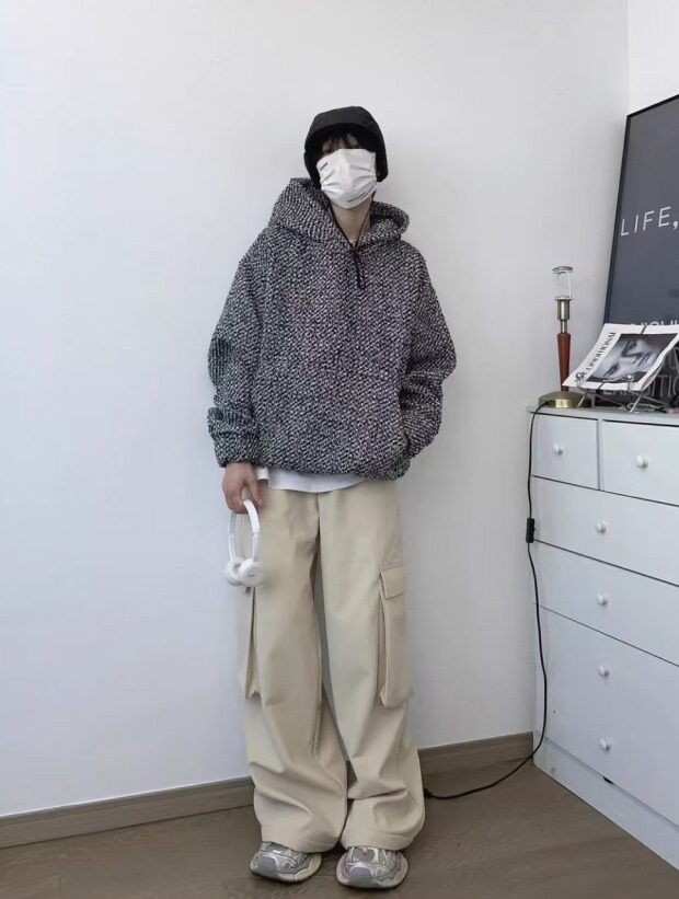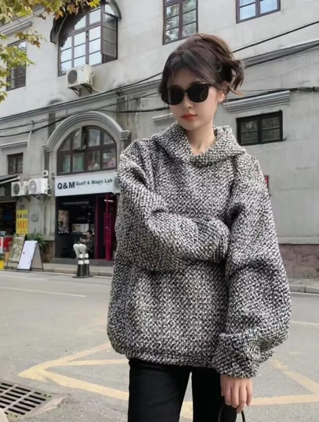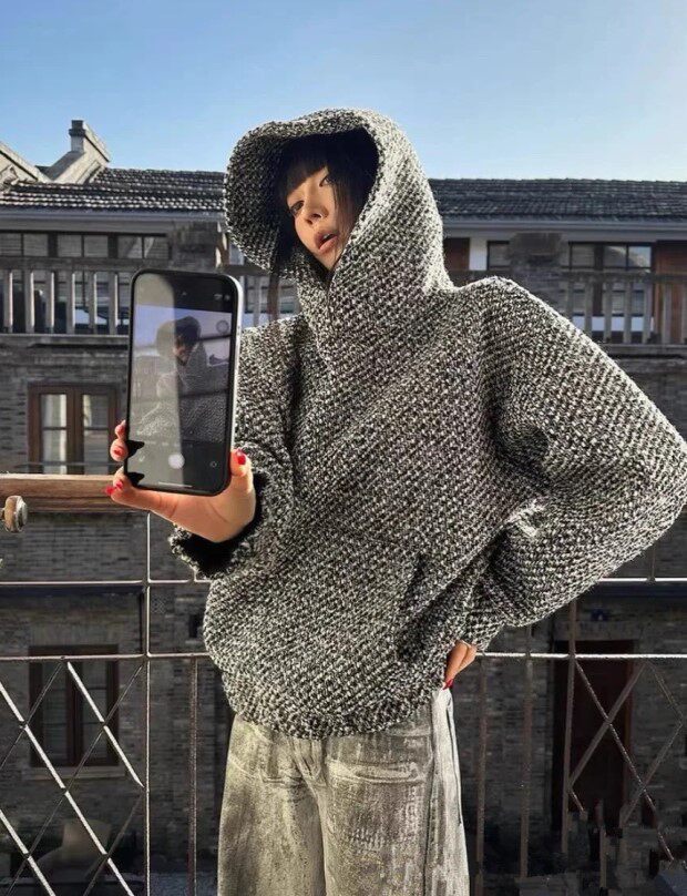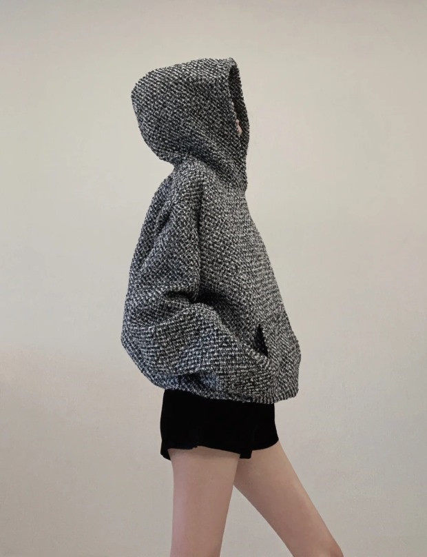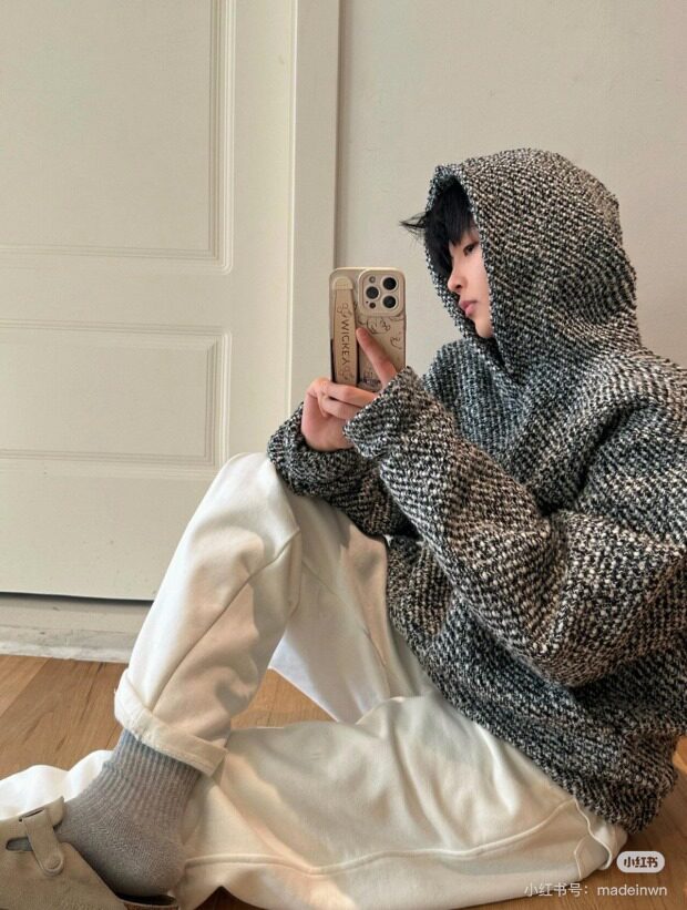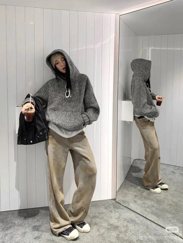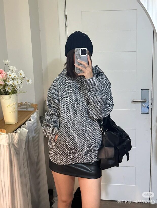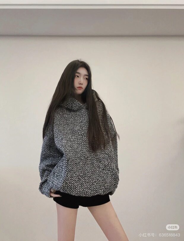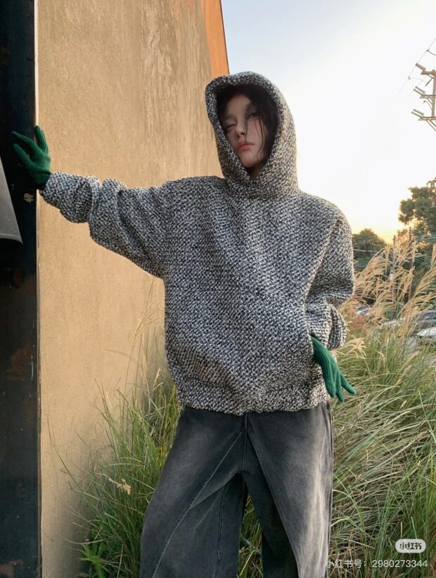 所有这种有廓感的卫衣帽衫 想保暖 就必须里面穿打底衫 哈~