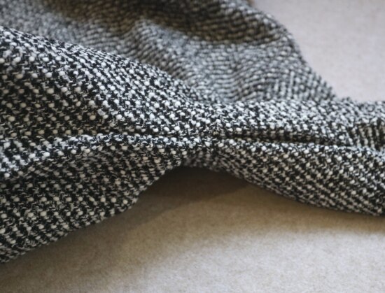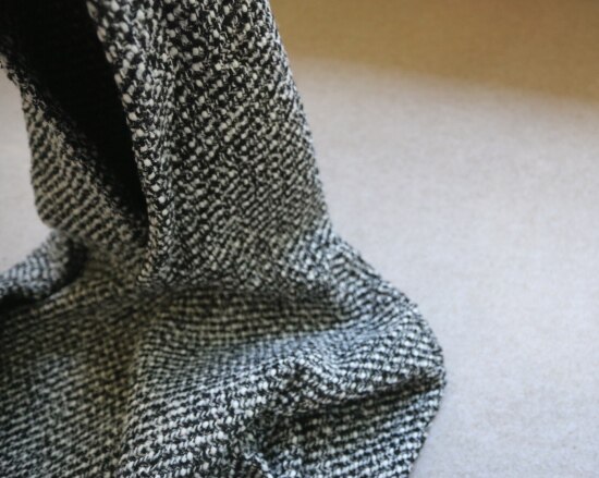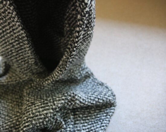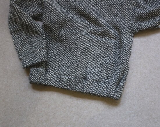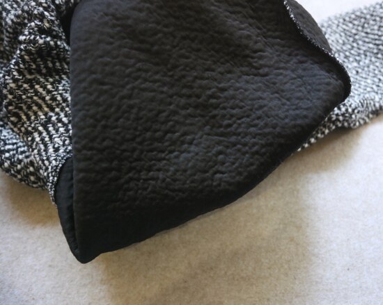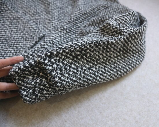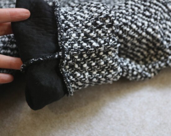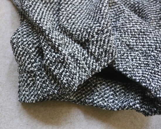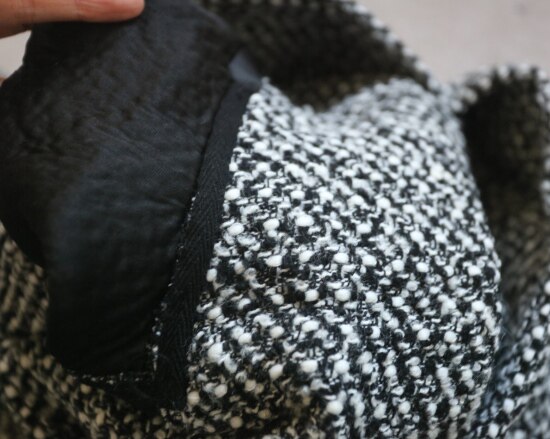 表层 是编织出来的粗花呢 属于起花的织物 很容易勾丝剐线
