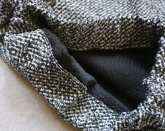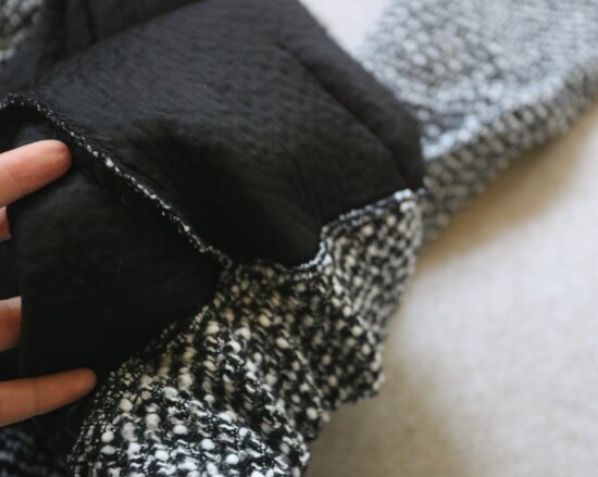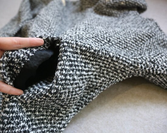 整体面料 硬挺厚实 无弹 加之 完全不贴身的小廓形 空气流动 保暖性稍差