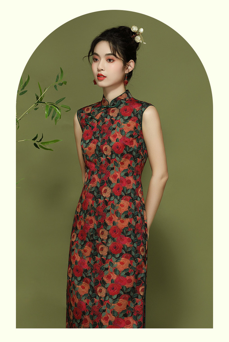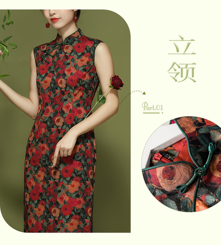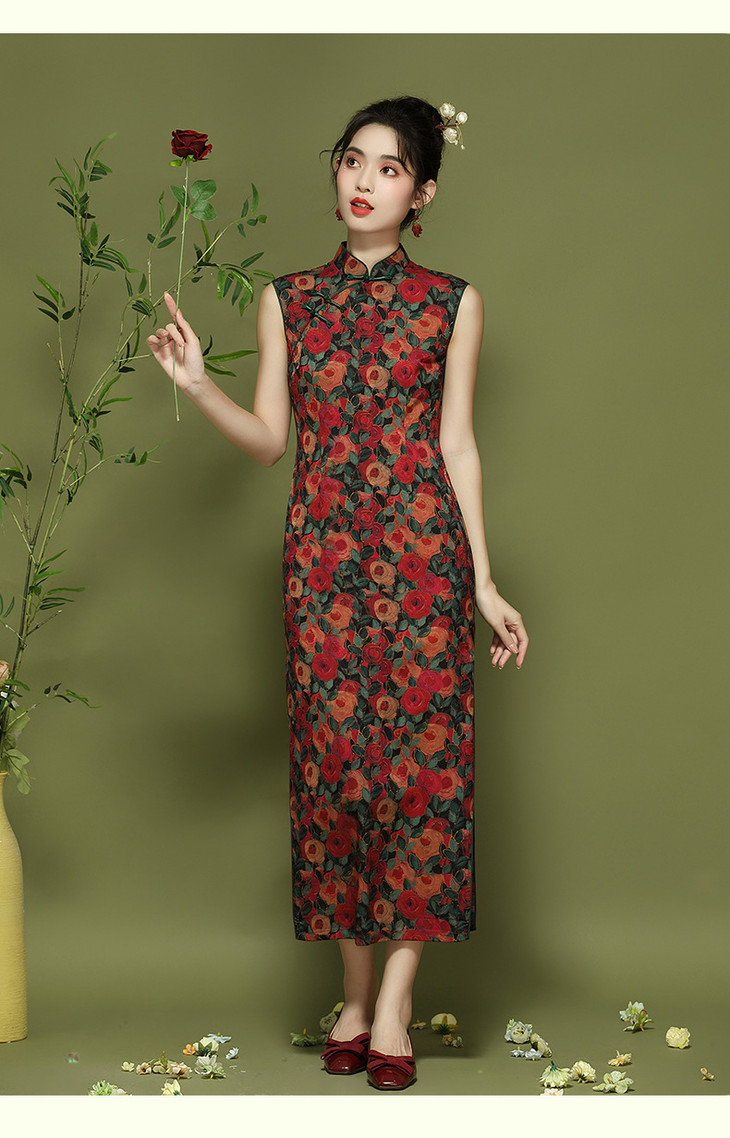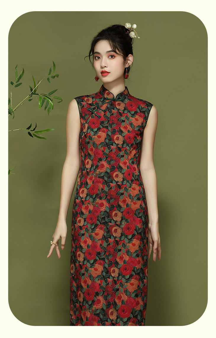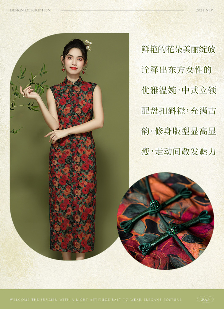 改良年轻复古玫瑰花新中式旗袍连衣裙OY24109