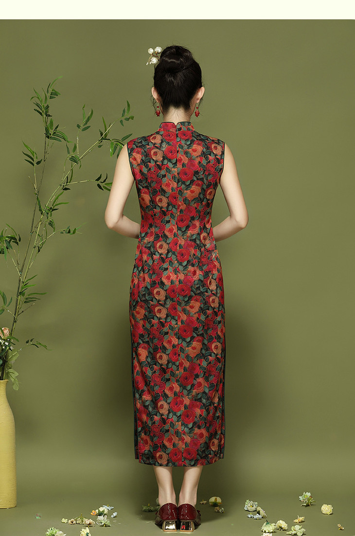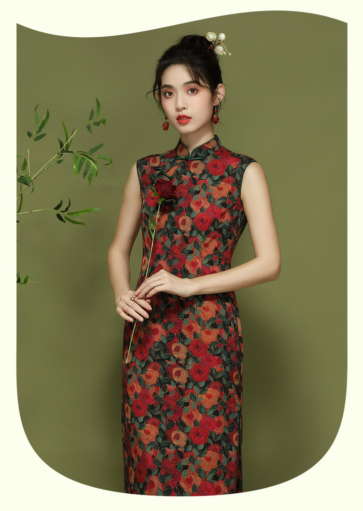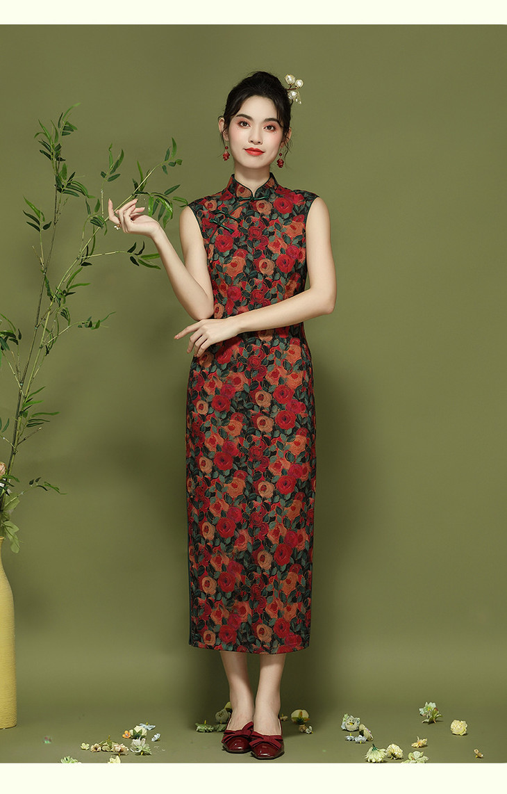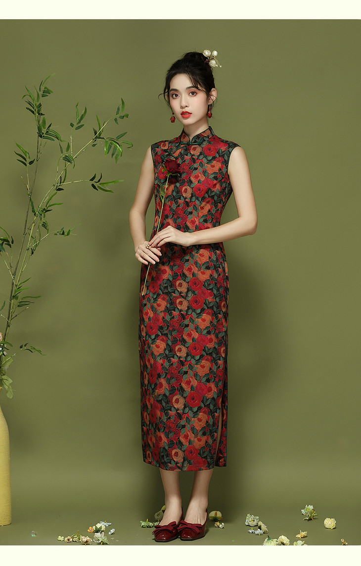 改良年轻复古玫瑰花新中式旗袍连衣裙OY24109