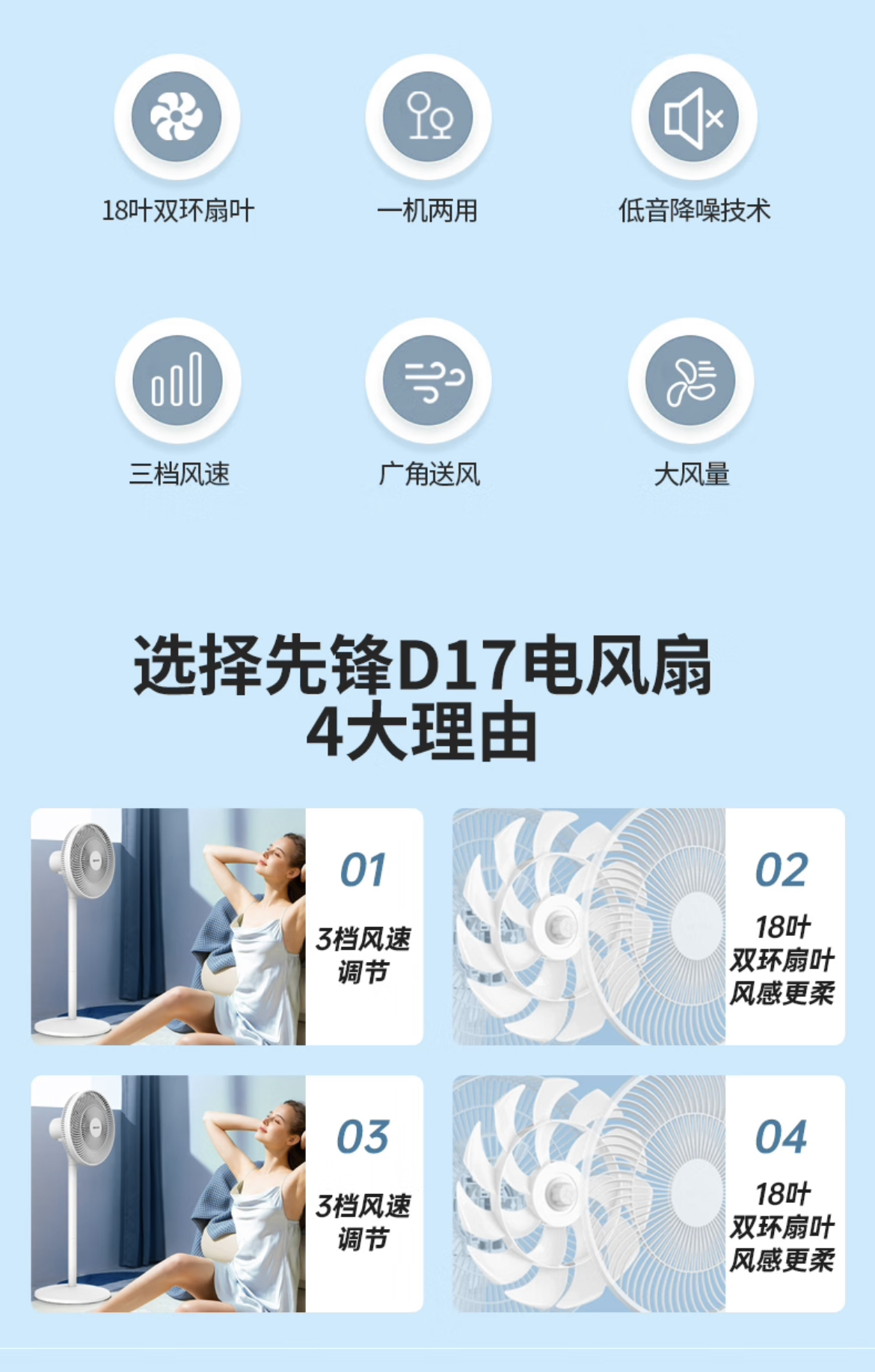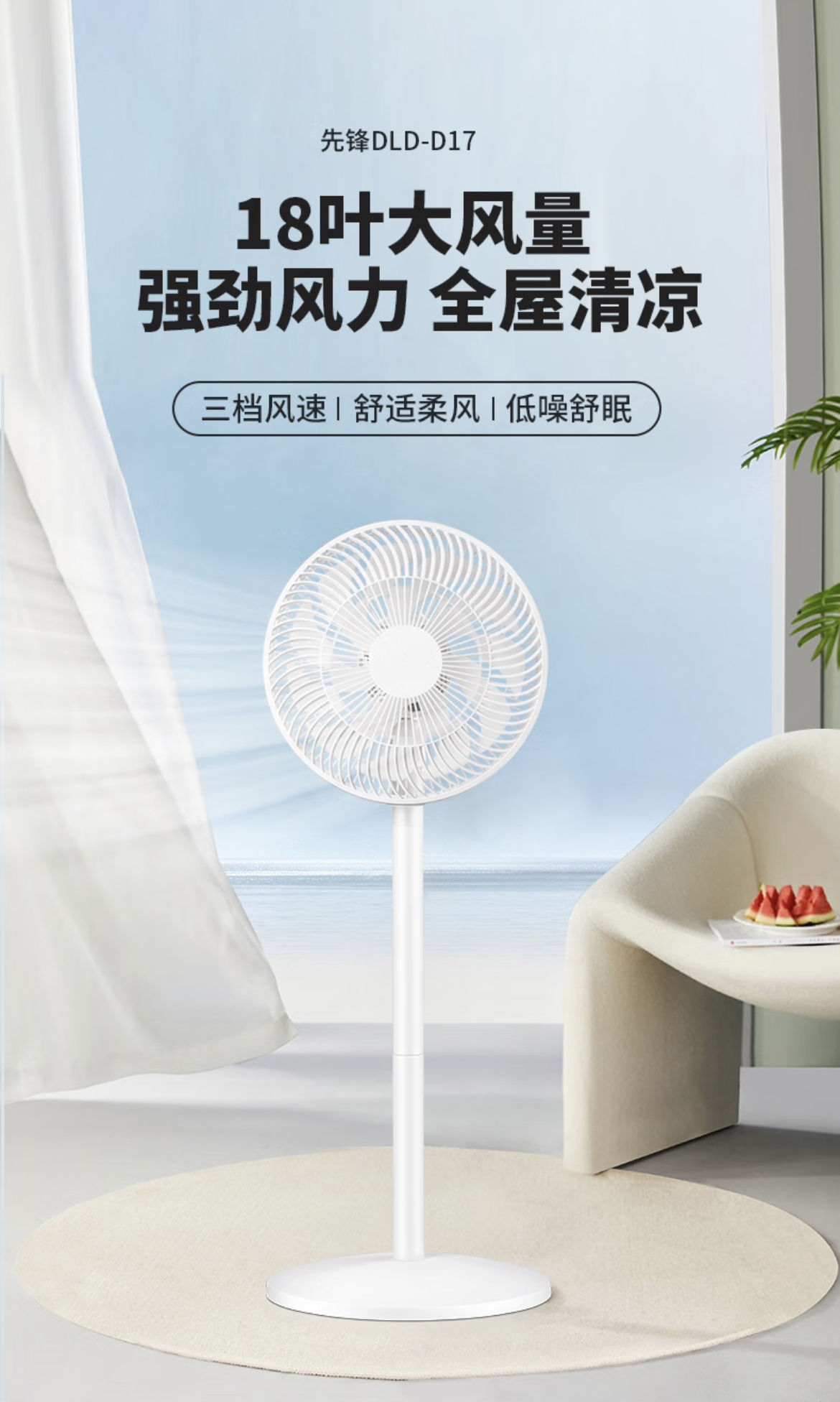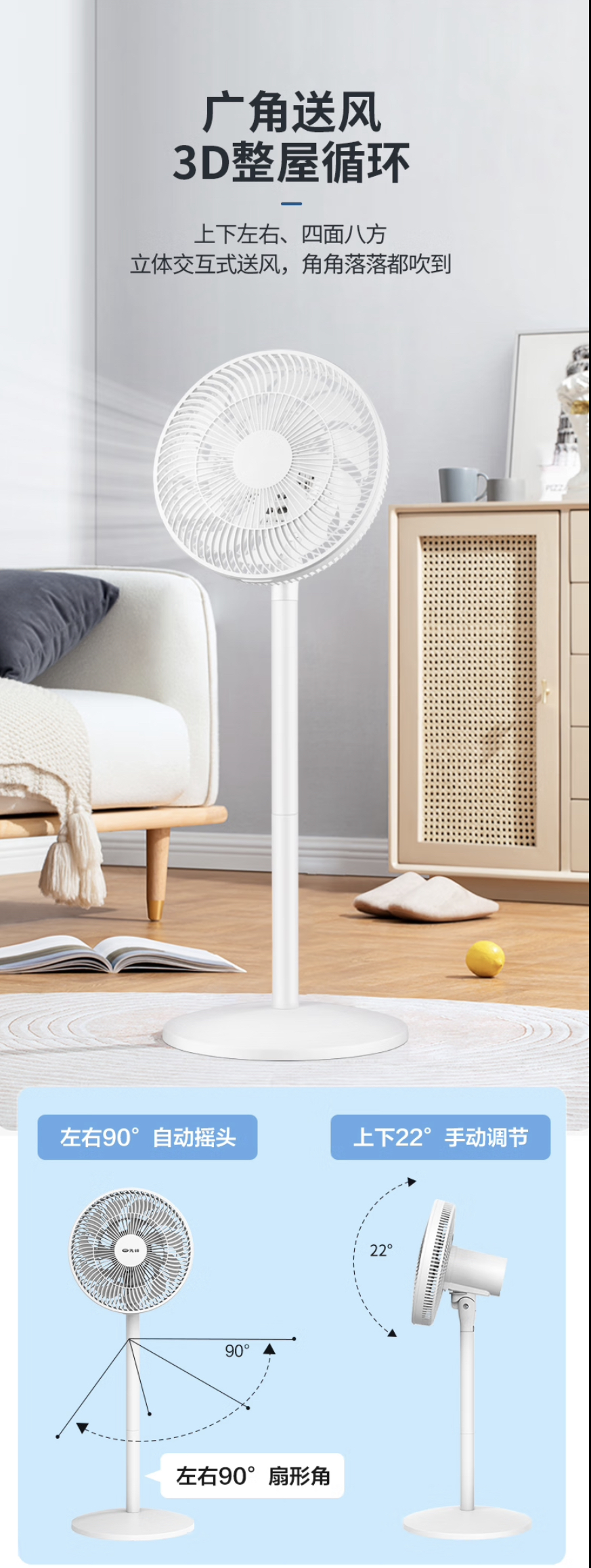 先锋(Singfun)追风系列家用电风扇落地扇流通空气循环扇台地两用扇小米白电风扇落地扇DLD-D17