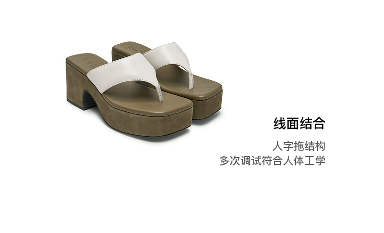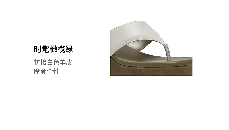 lost in echo2025春夏新款时尚拼色真皮粗跟增高夹脚人字拖凉拖鞋