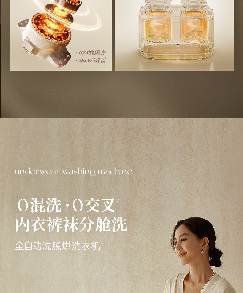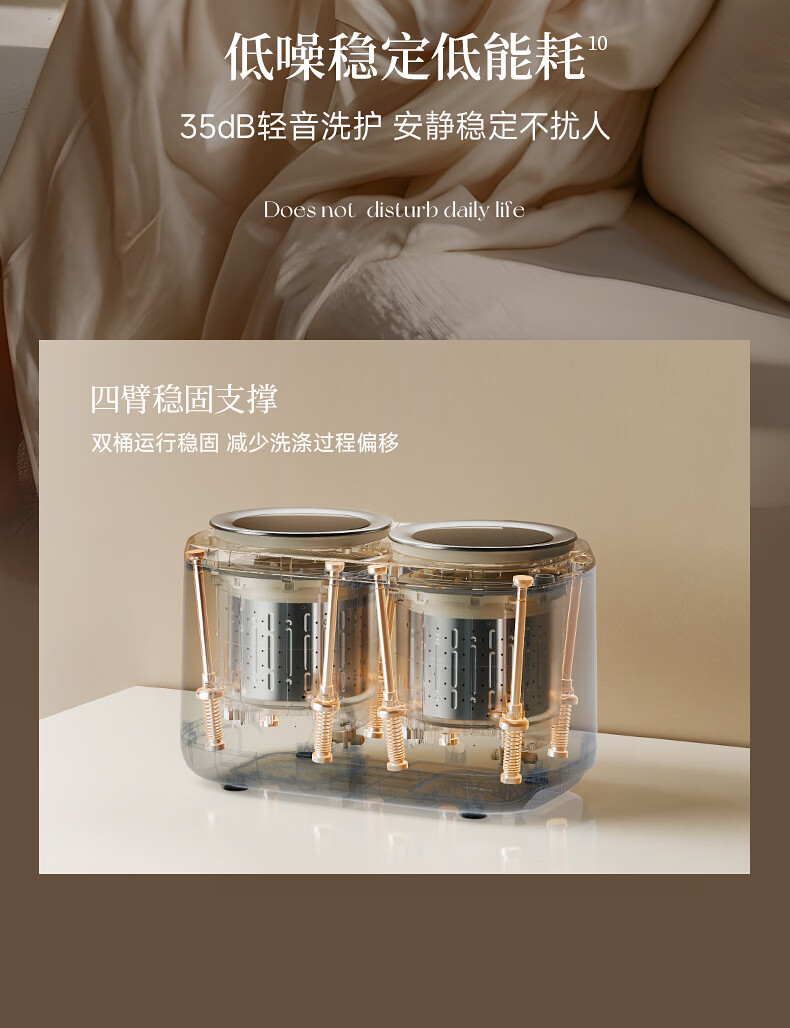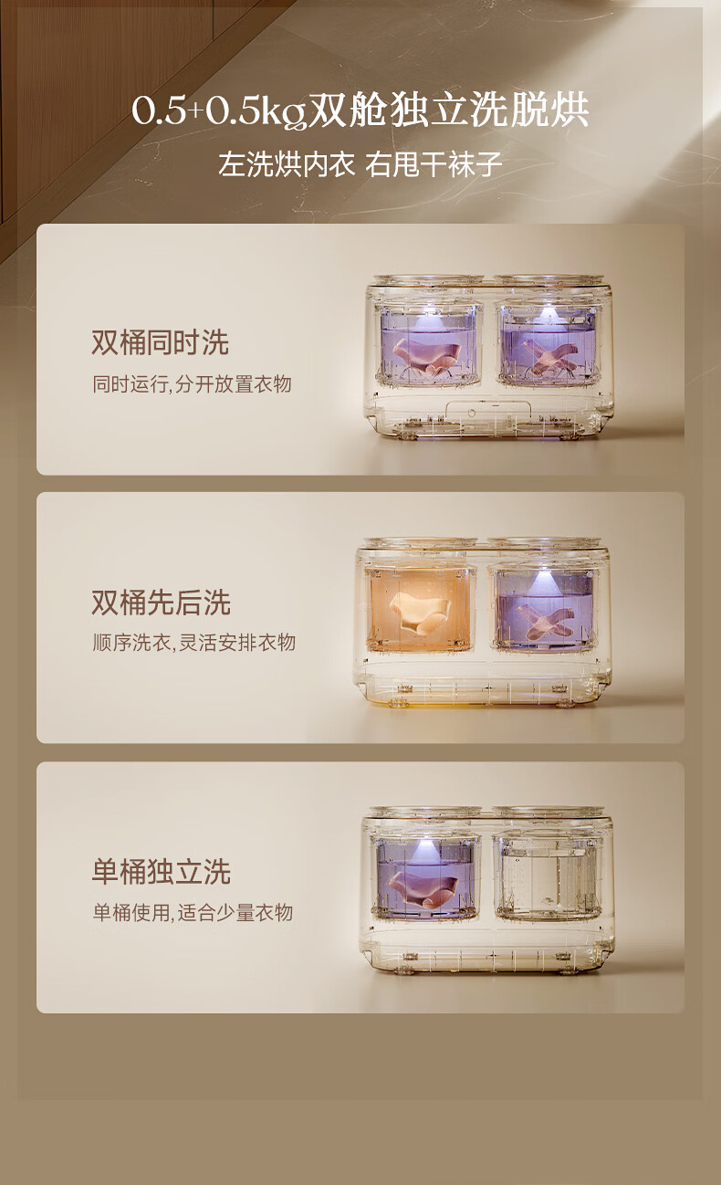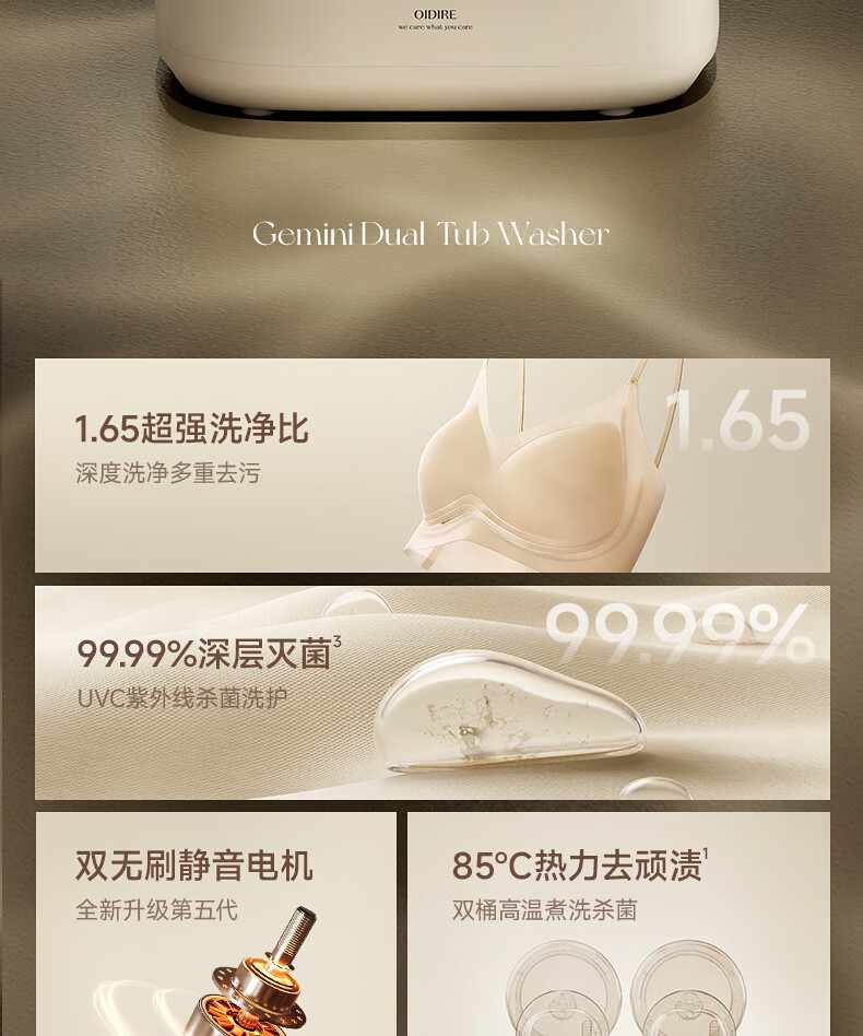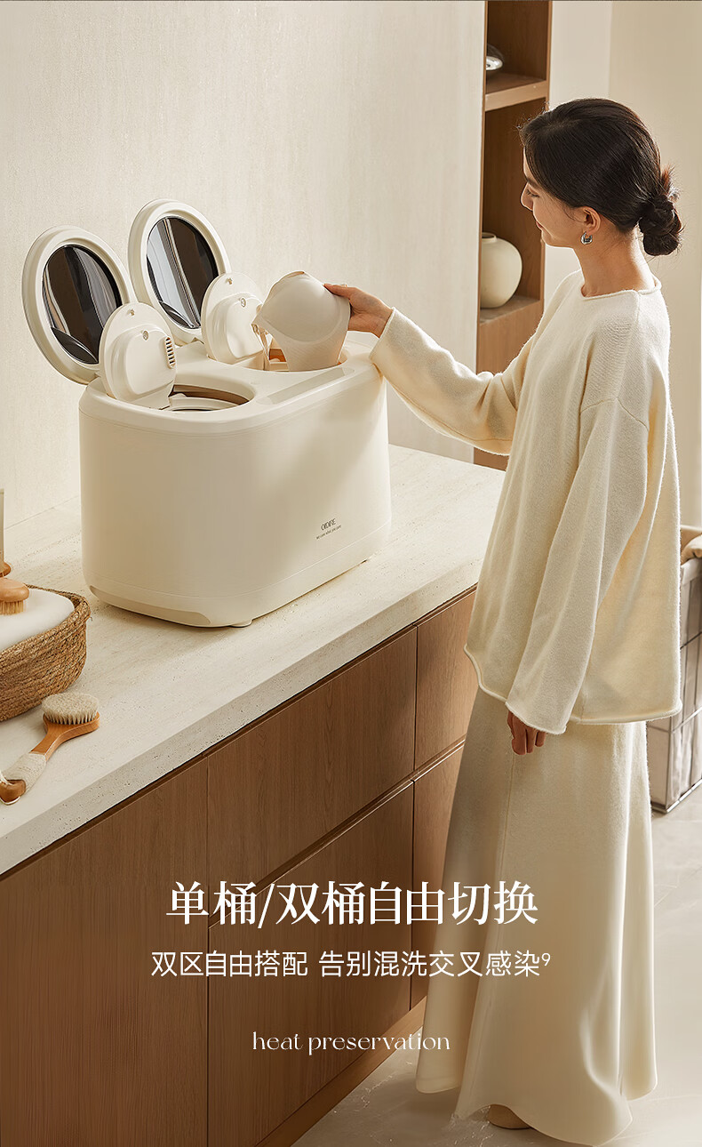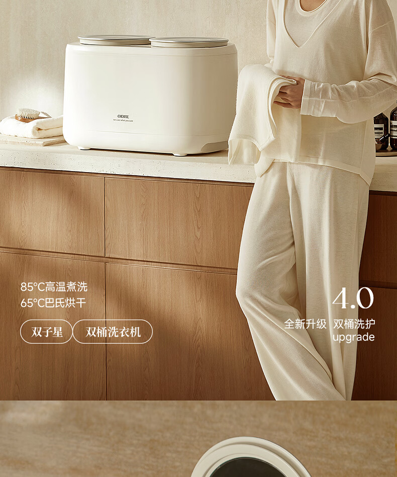 OIDIRE【双子星】双桶内衣洗衣机 双仓内裤洗衣机洗袜子专用洗衣机双舱迷你洗衣机洗脱烘全自动 ODI-XYJ22 无刷电机-高温煮洗烘-洗衣机