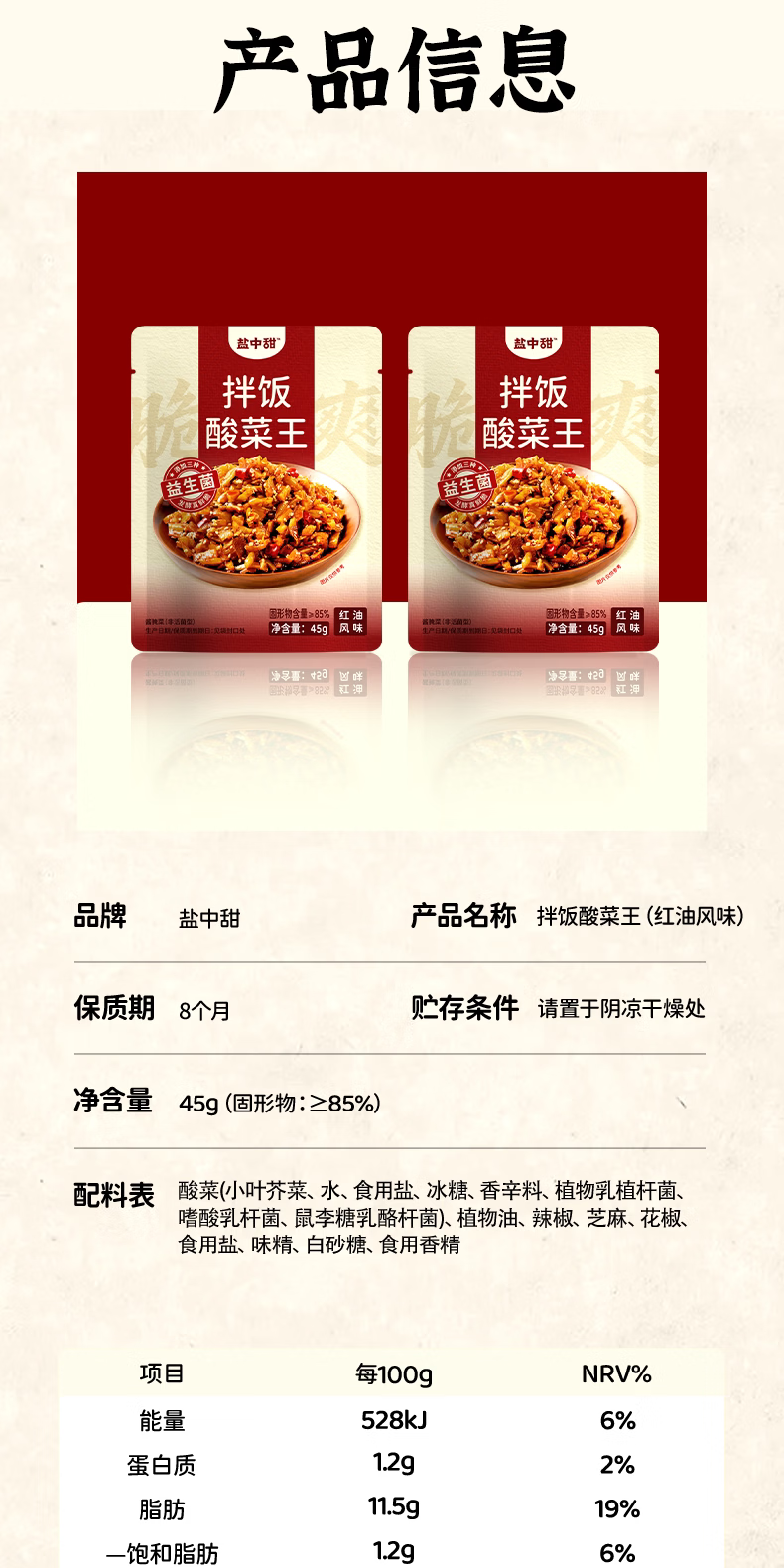 盐中甜拌饭酸菜王红油风味45g