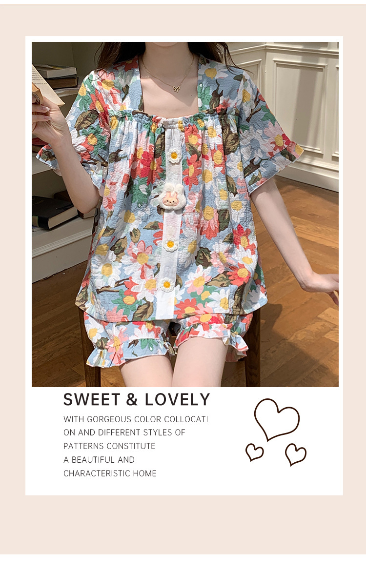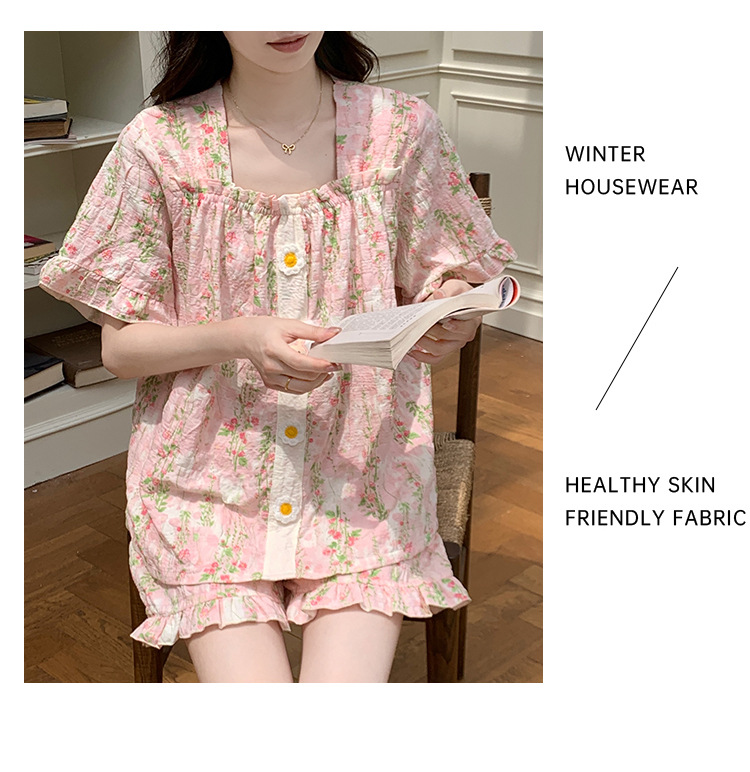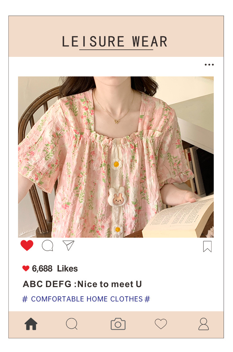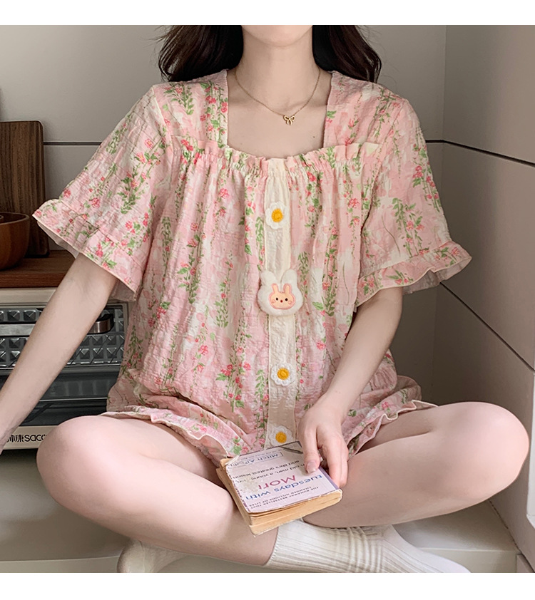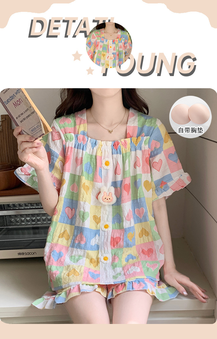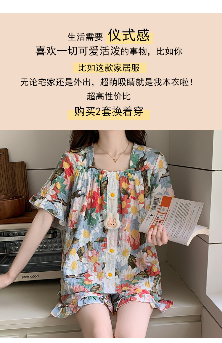 【自带胸垫】公主风睡衣女夏季薄款带胸甜美碎花短袖短裤宽松可外穿家居服套装。rh