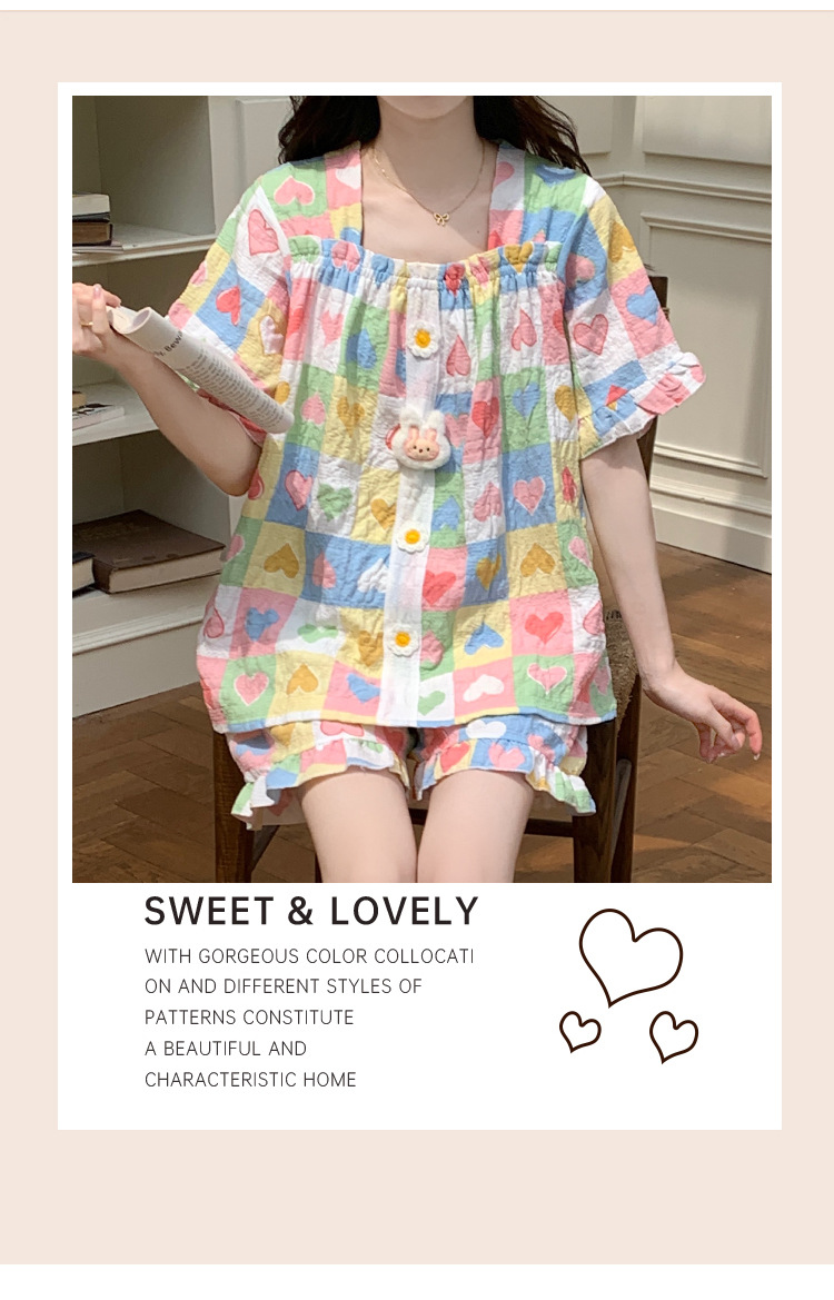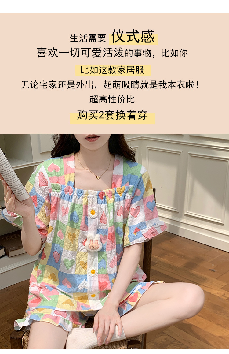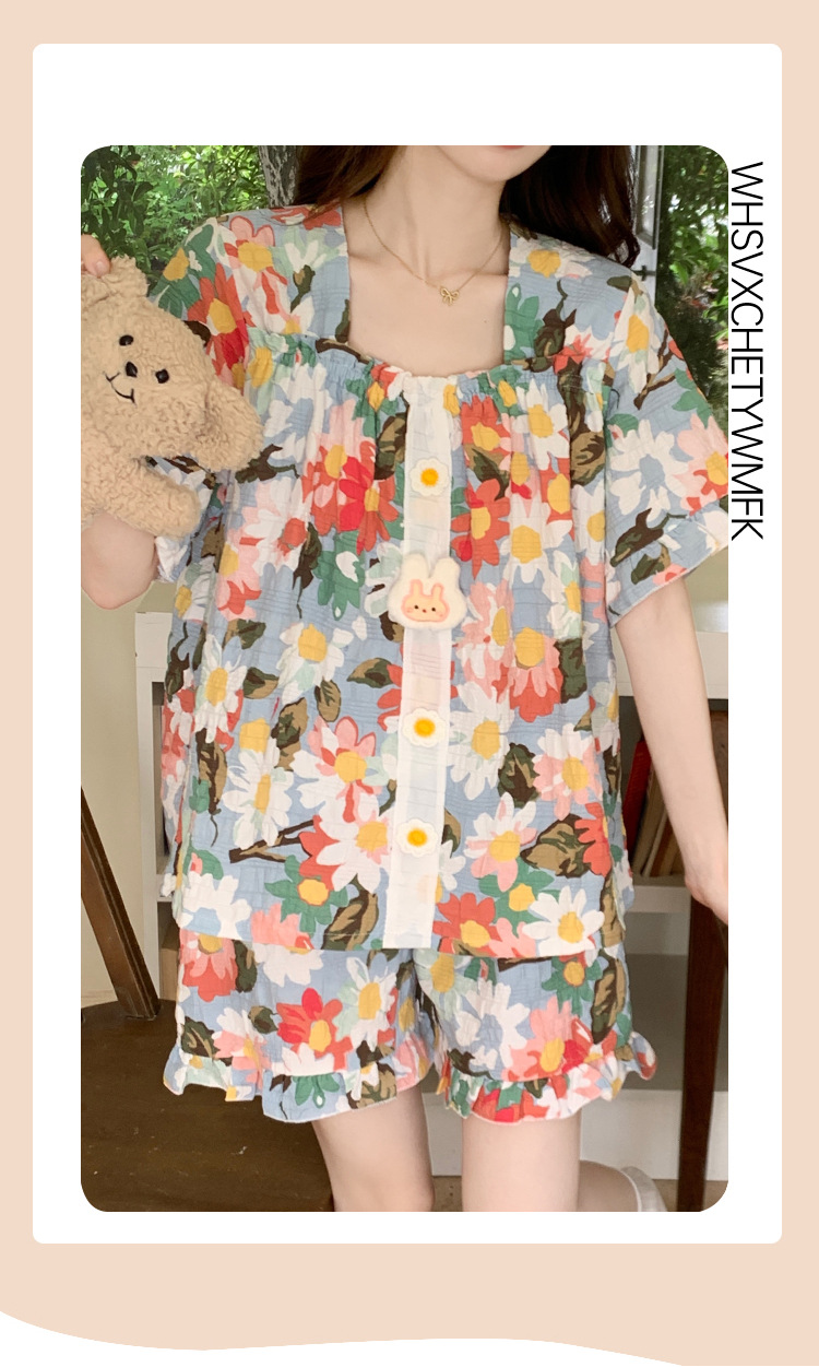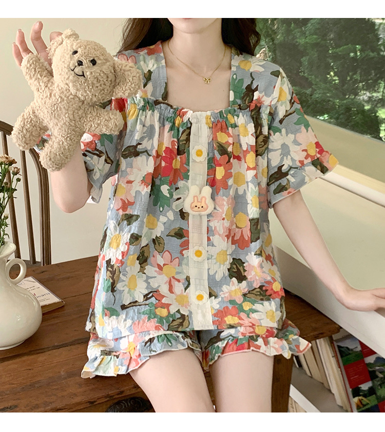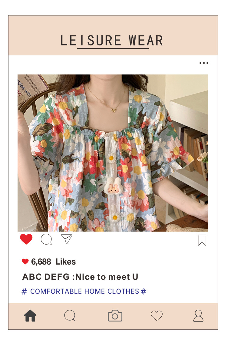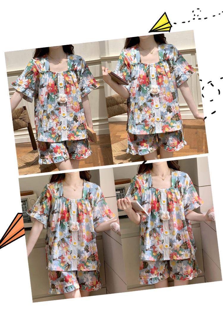 【自带胸垫】公主风睡衣女夏季薄款带胸甜美碎花短袖短裤宽松可外穿家居服套装。rh