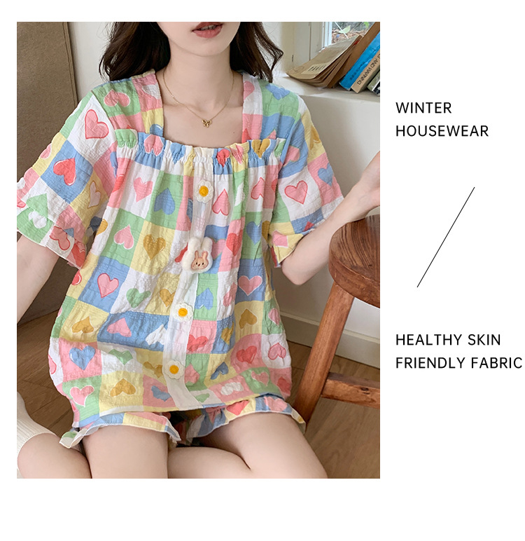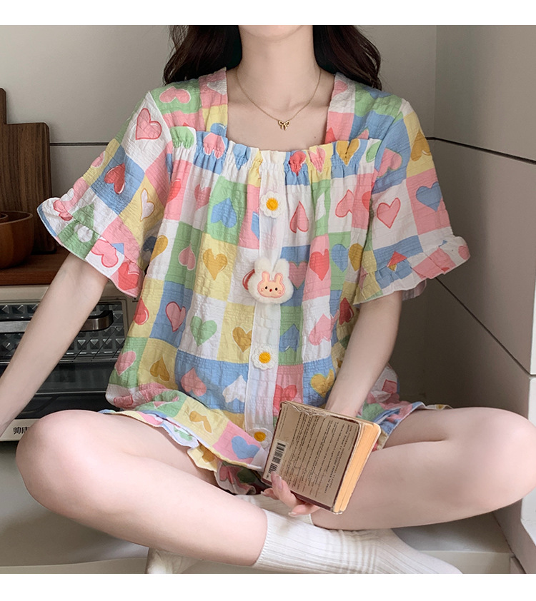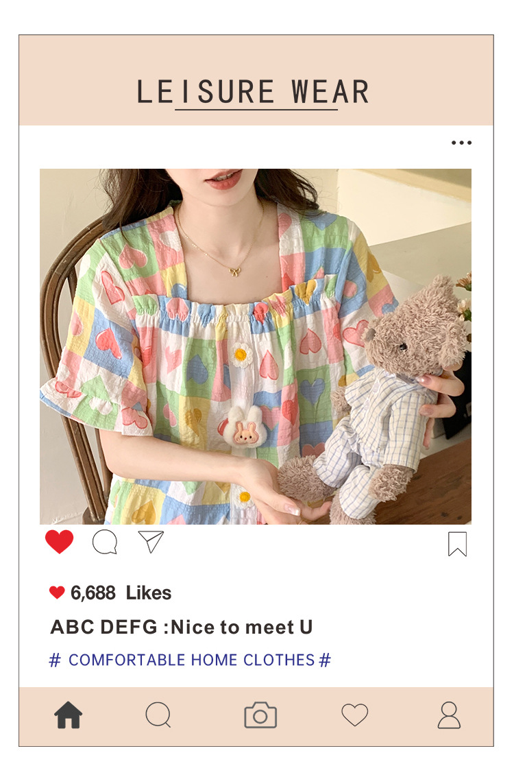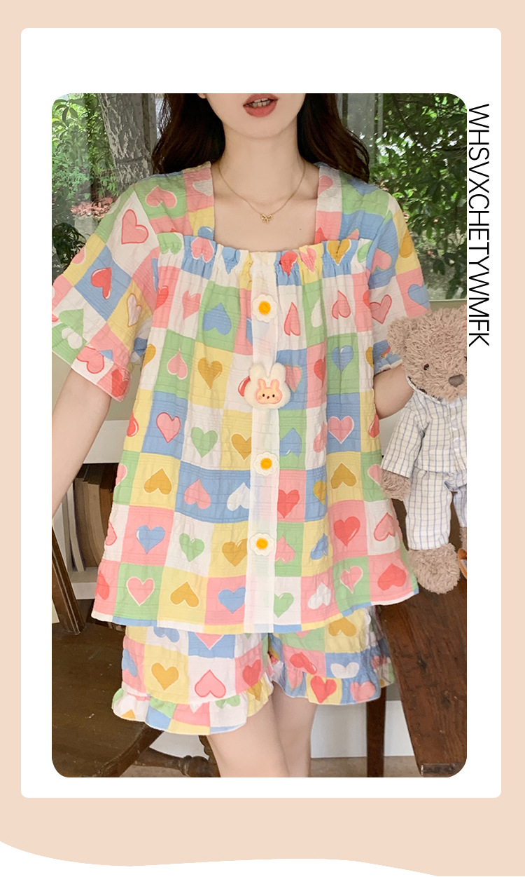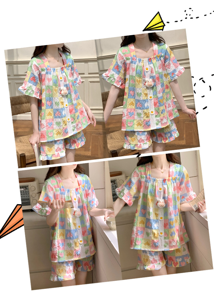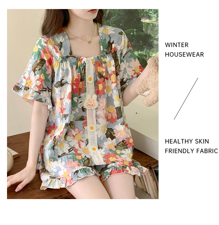 【自带胸垫】公主风睡衣女夏季薄款带胸甜美碎花短袖短裤宽松可外穿家居服套装。rh