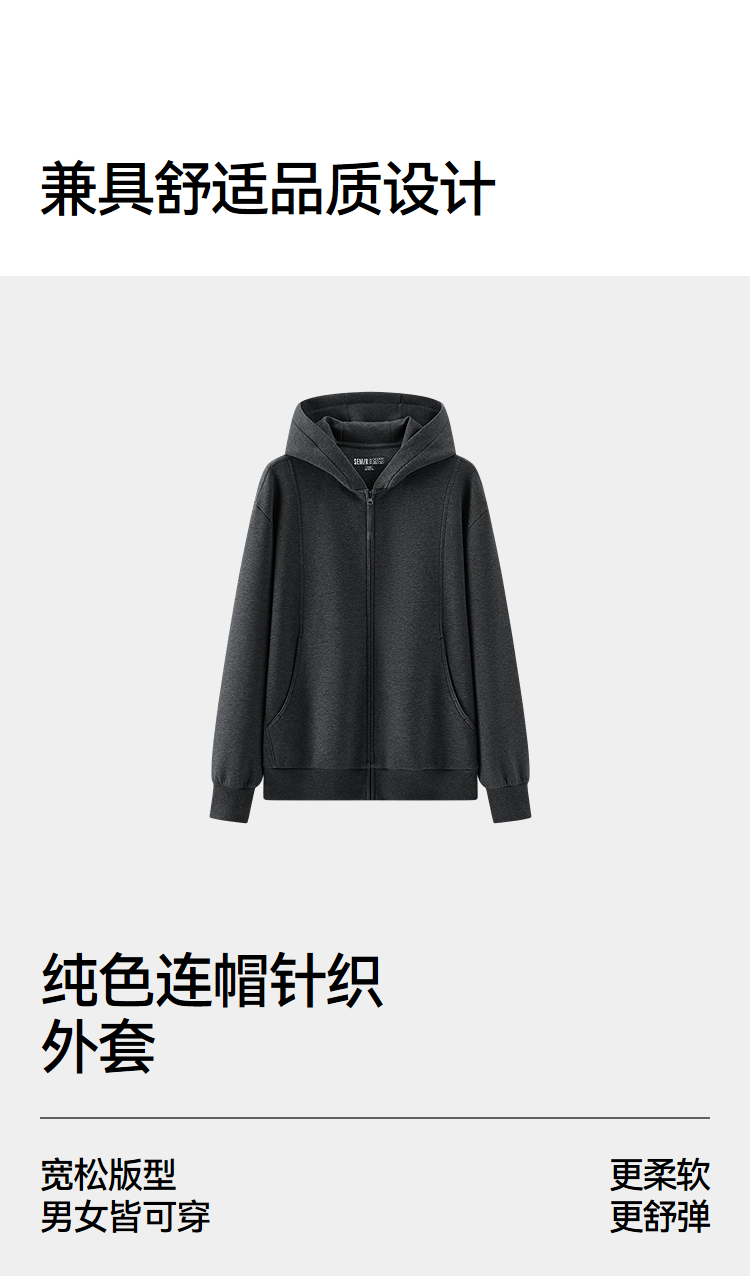 森柔|商场同款森马夹克男春季连帽针织开衫2026新款纯色情侣外套