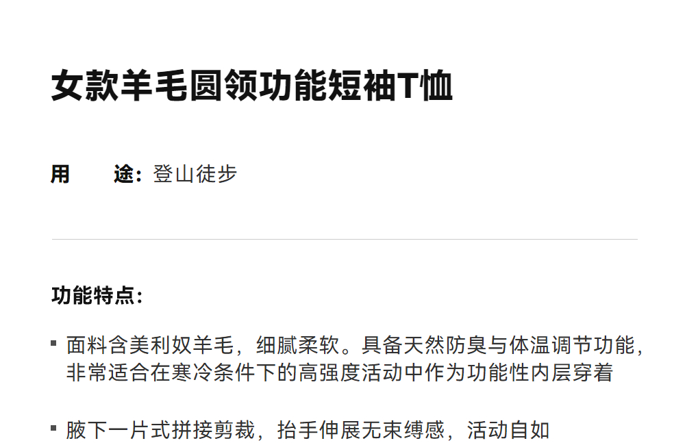 KAILAS凯乐石 女款H1羊毛圆领功能中袖T恤 KG2437215【Z】