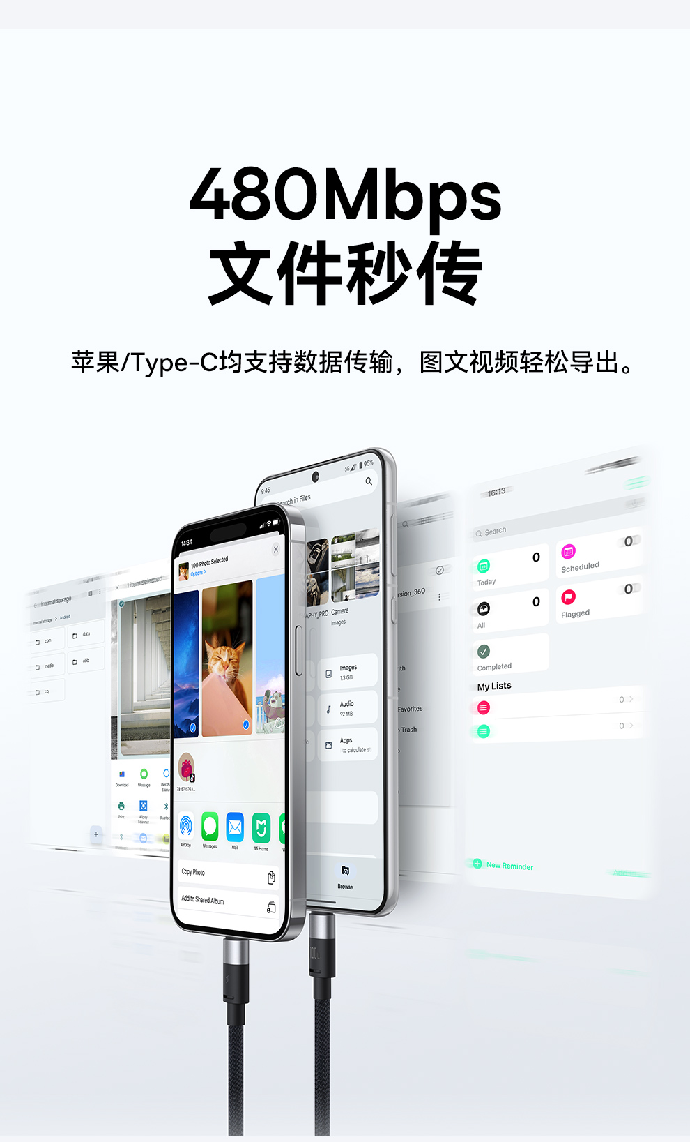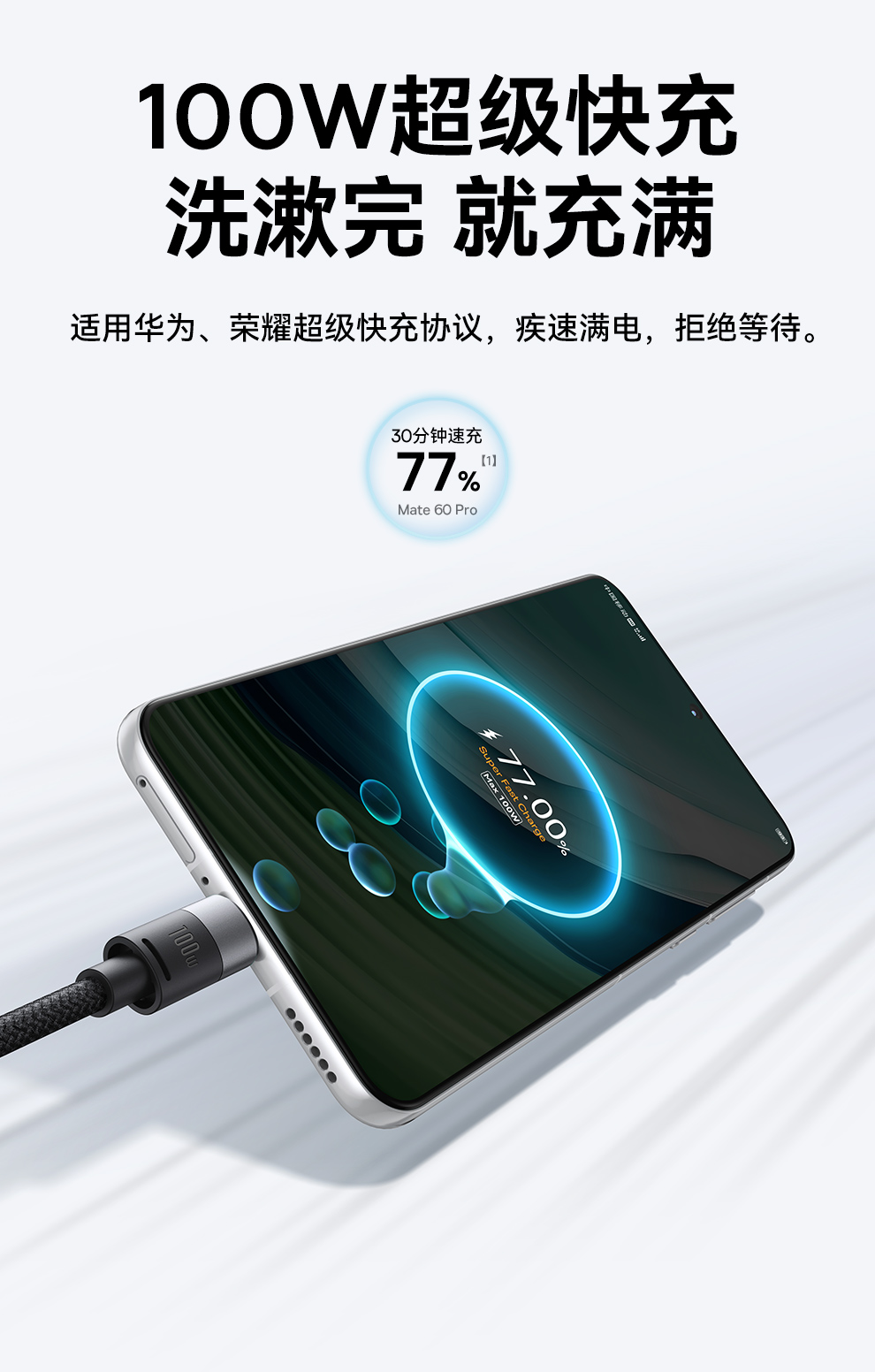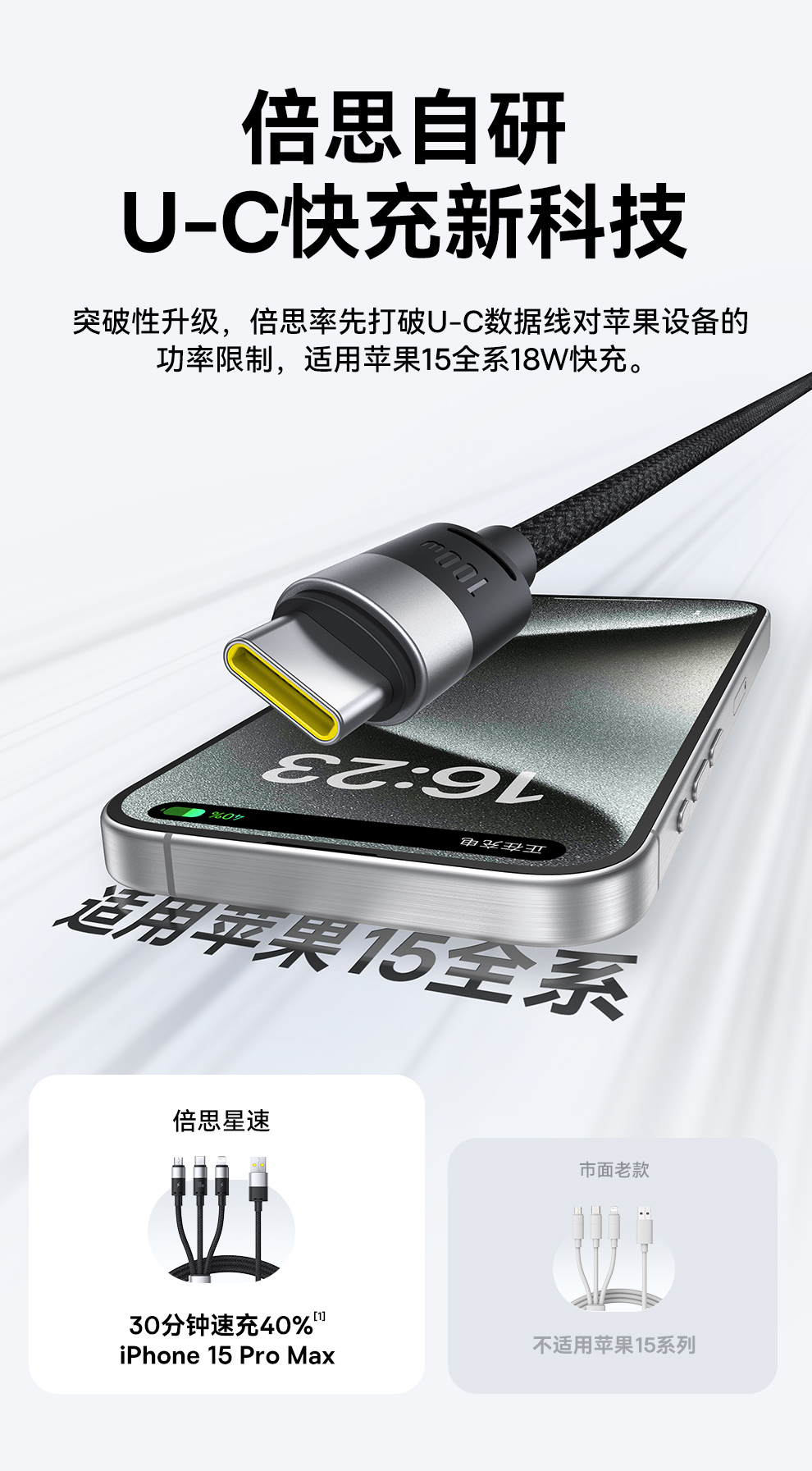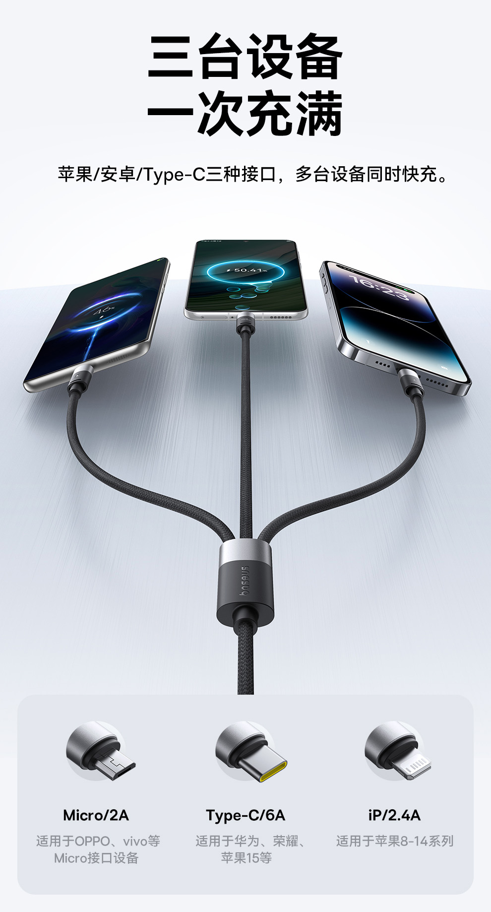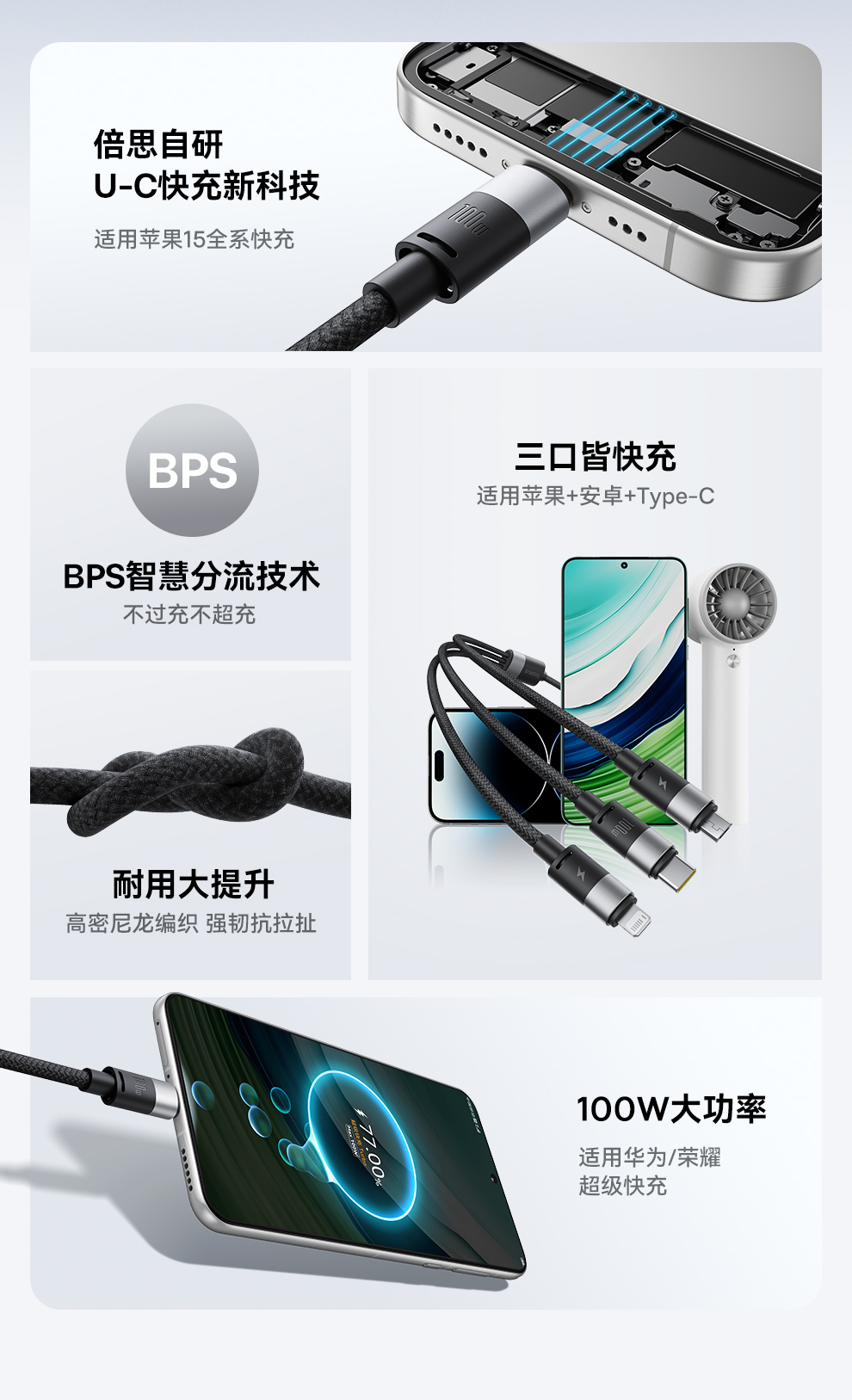 倍思 星速系列 一拖三数据线 USB to M+L+C 100W